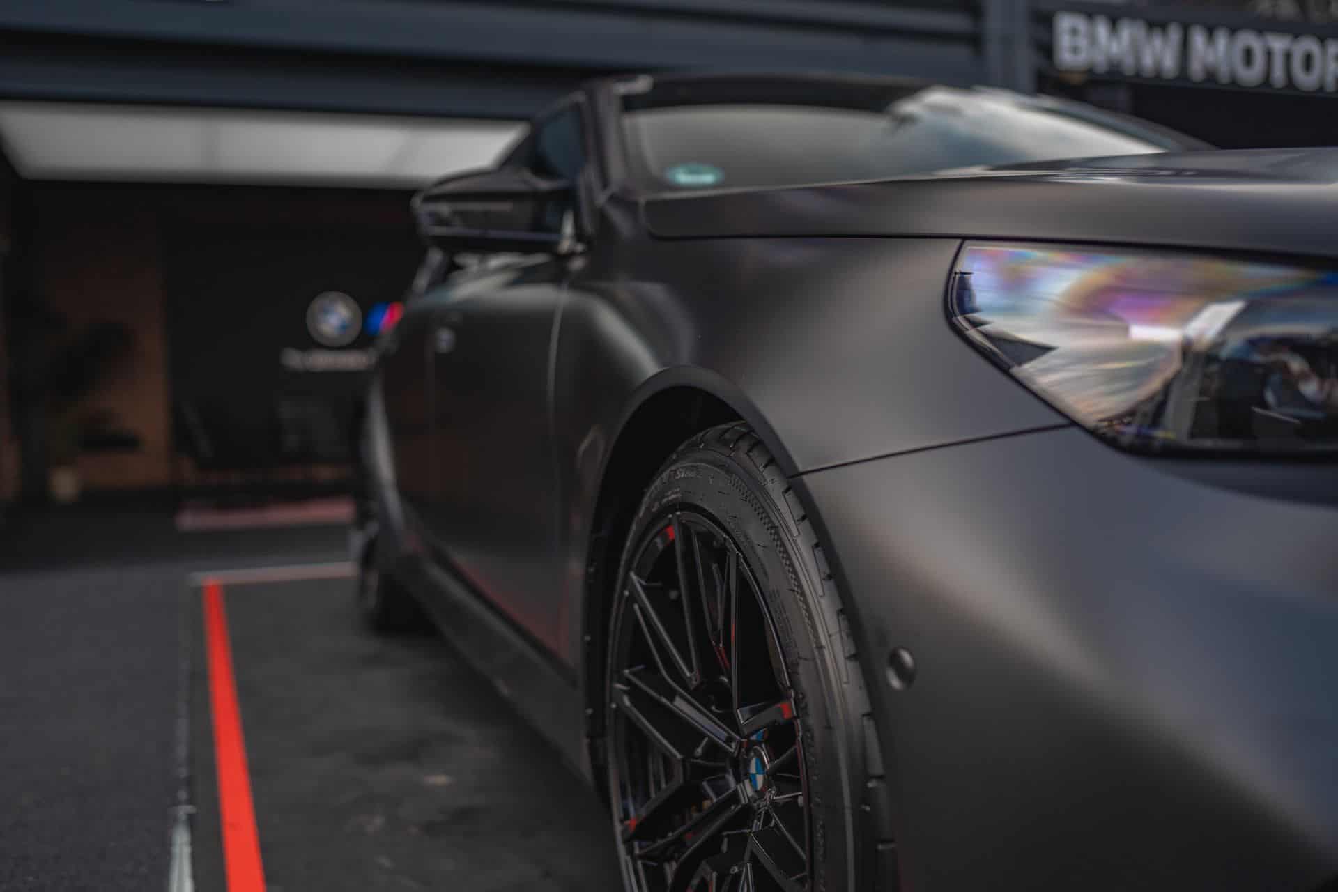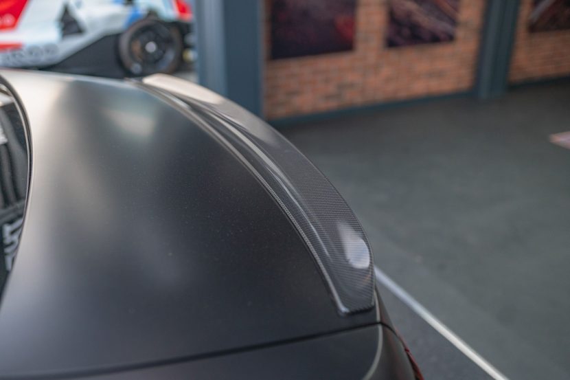 This 2025 BMW M5 was also equipped with the Carbon Fiber package which brings a few visual goodies to the table. Optional carbon bucket seats are not available for the time being. It’s also the first to feature wider tracks than the regular 5 Series, giving it an aggressive and imposing stance. The Frozen Deep Grey M5 model stands out with its matte Individual paint job, complemented by optional carbon roof, side mirror caps, and trunk lid spoiler.