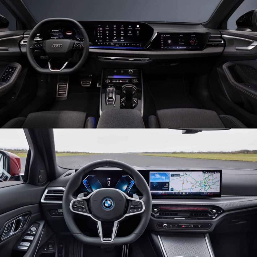 Both cars get similar driver aids, like frontal collision warning and blind spot warning. It’s pretty close here; iDrive has a beautiful and intuitive layout. But, the new Audi MMI seems straightforward and looks pretty, too. Dealer’s choice on this one – we like the familiarity of iDrive but can see why shoppers prioritizing the latest and greatest tech might swing the other way.