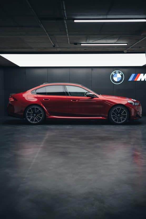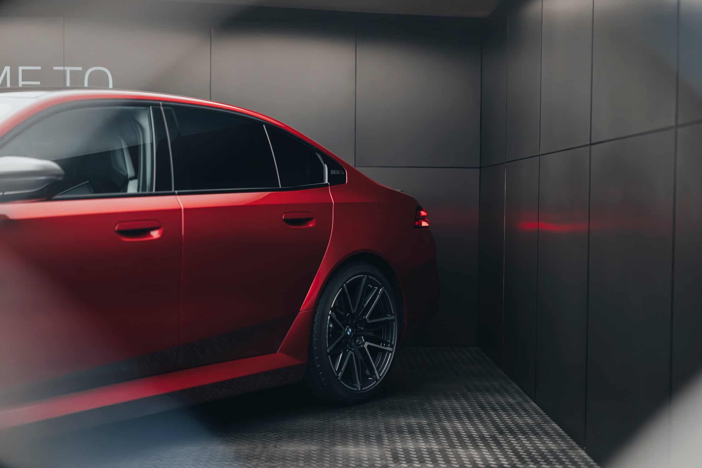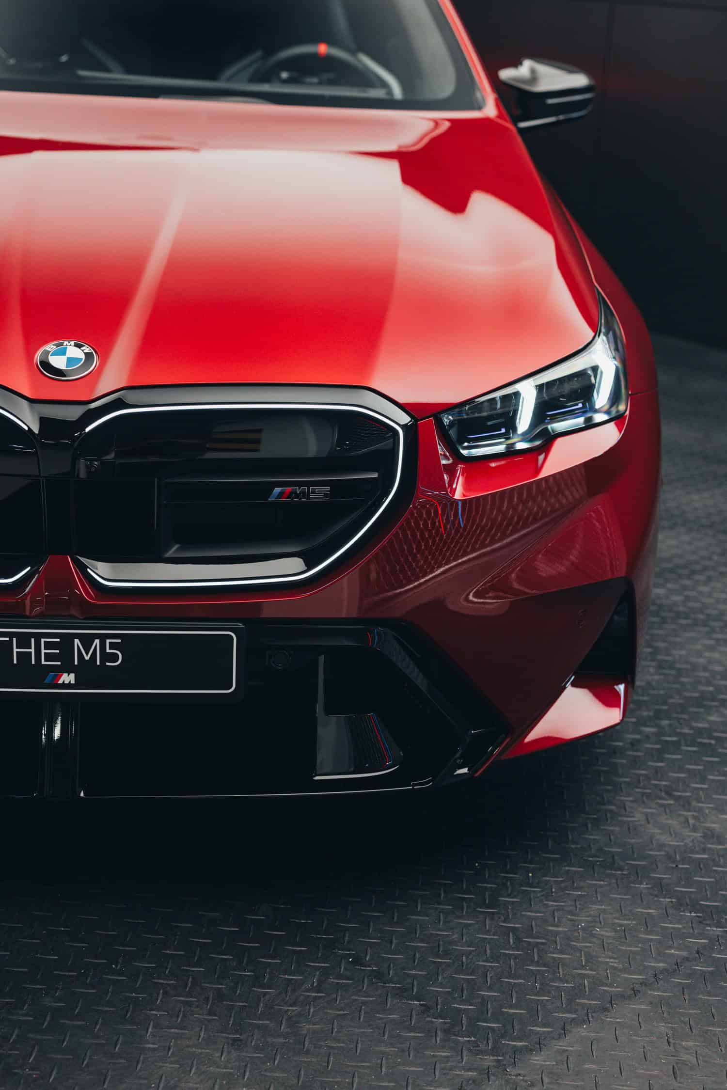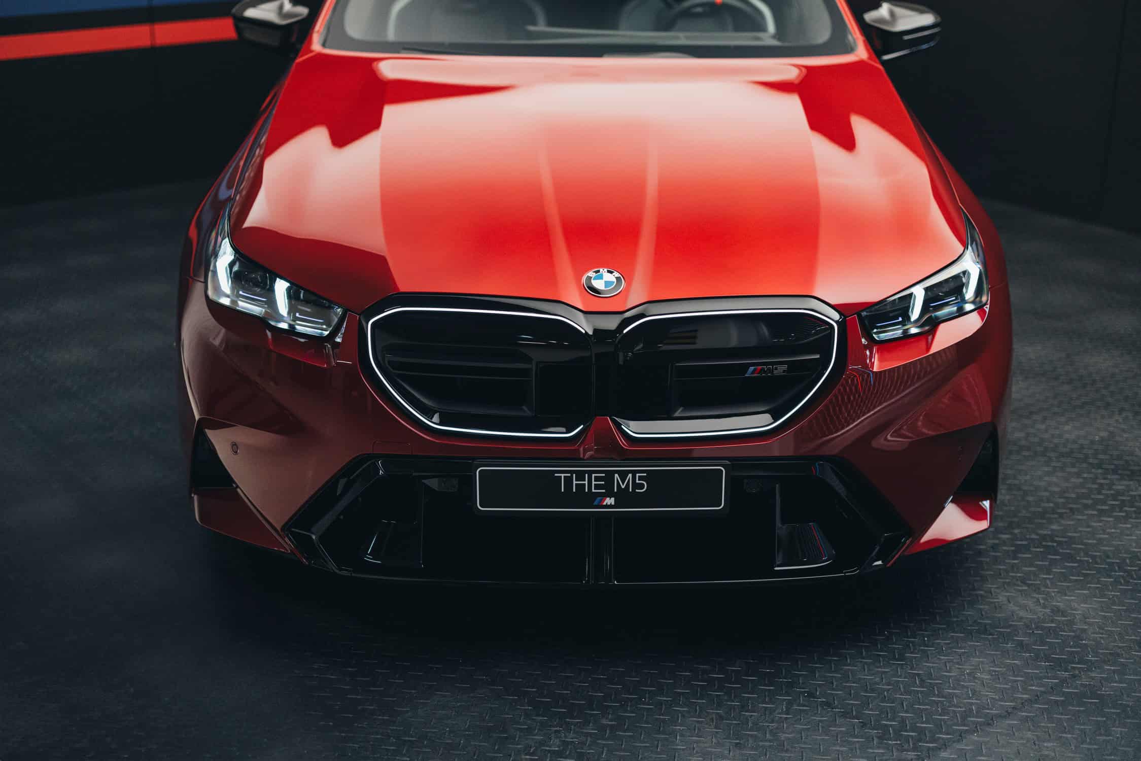 Following its first public appearance at the Goodwood Festival of Speed in the UK, the new M5 has embarked on a world tour. Its first stop is in Poland where the BMW branch is showing off the G90 in Fire Red. It’s an eye-catching color marketed in the United States with a localized name: Vegas Red. This seventh-generation performance sedan gets the carbon fiber goodies available as optional equipment. We’re talking about the roof, side mirror caps, and the trunk lid spoiler.