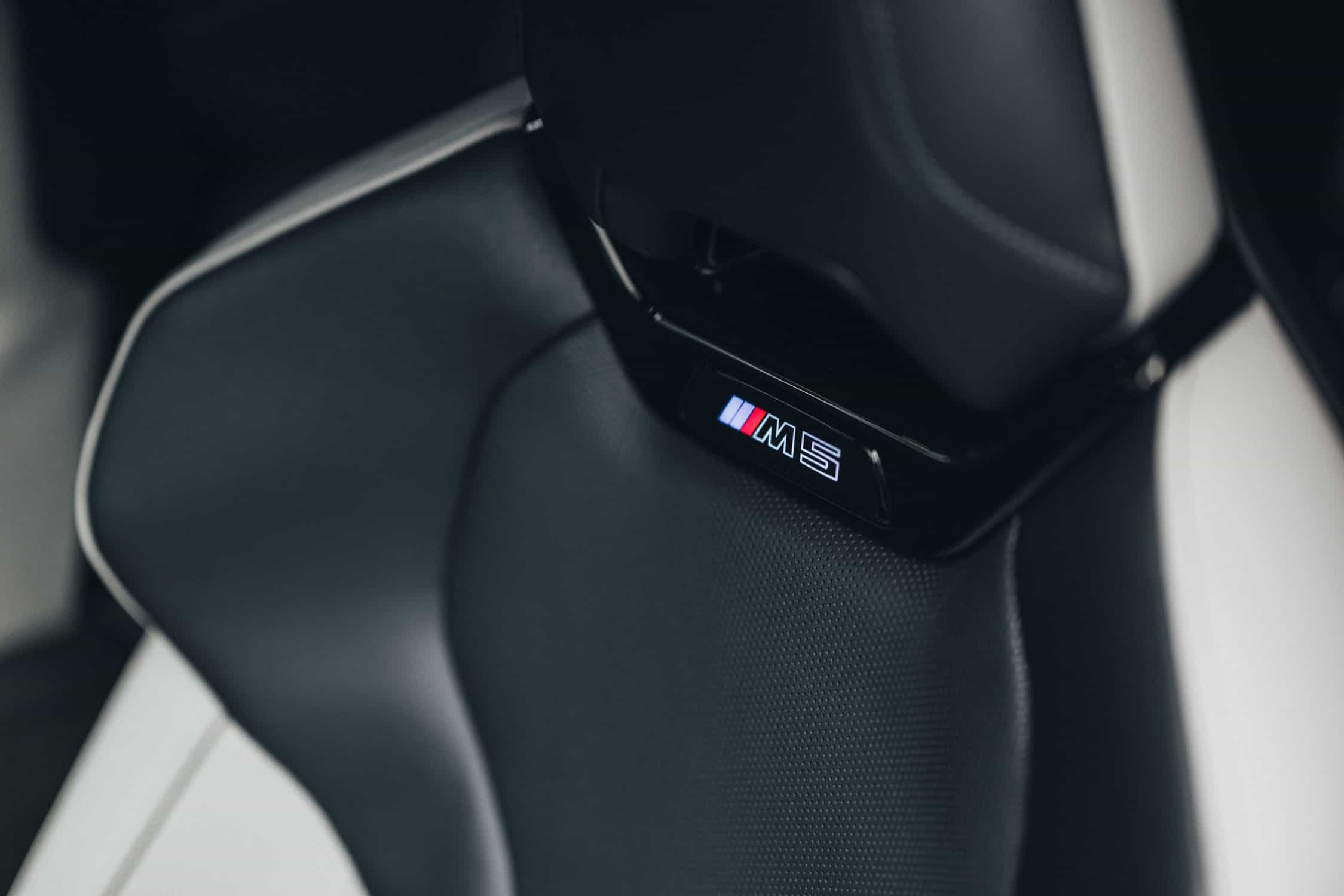 Hopping inside, you won’t find carbon bucket seats like you get by paying extra when ordering the smaller M3. They’re not available now but might be added to the list of options later in the G90’s life cycle. This M5 has Merino leather in a Silverstone/Black combo and carbon fiber on the dashboard. This piece of trim features a high-gloss finish and silver threads, providing greater visual pop.