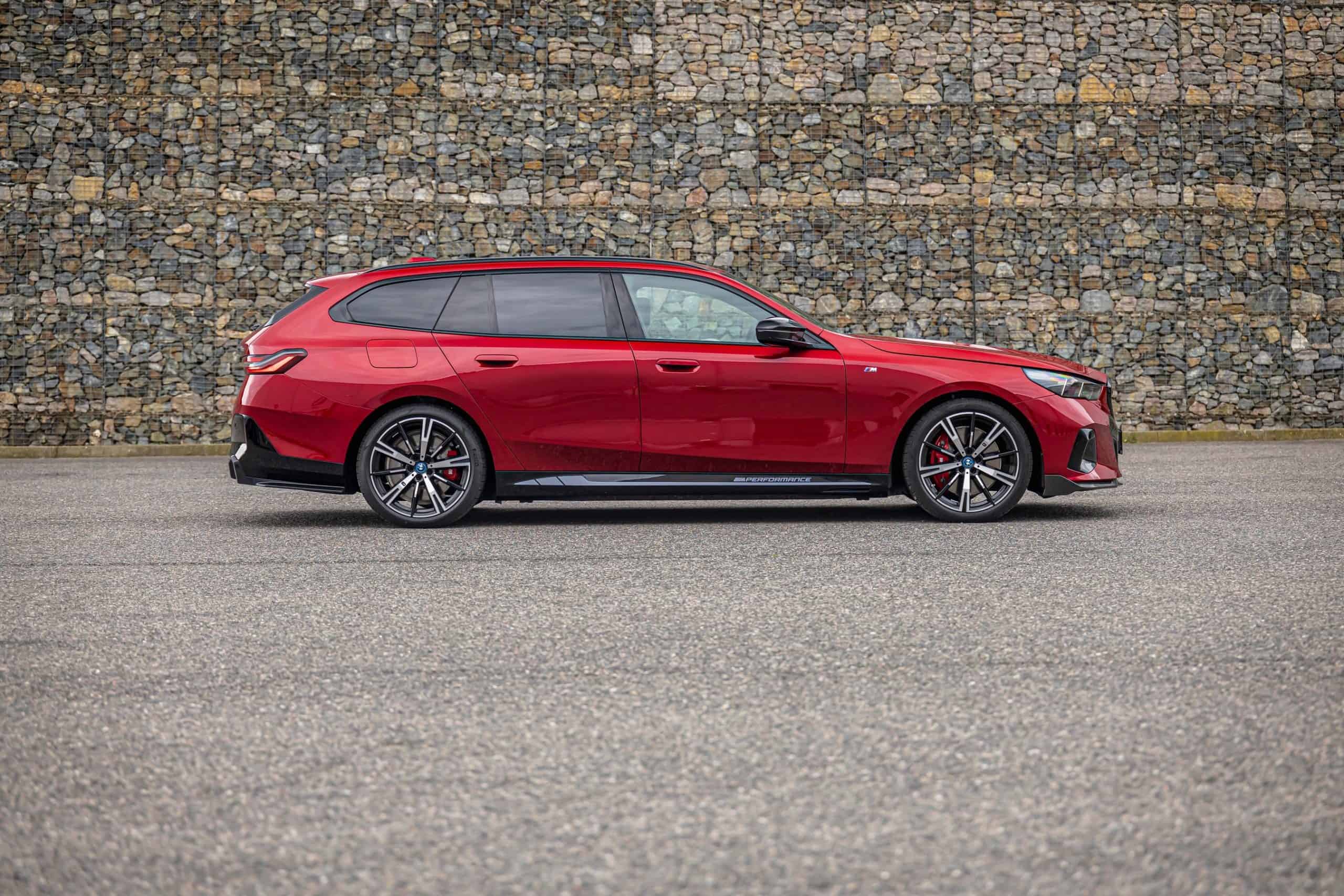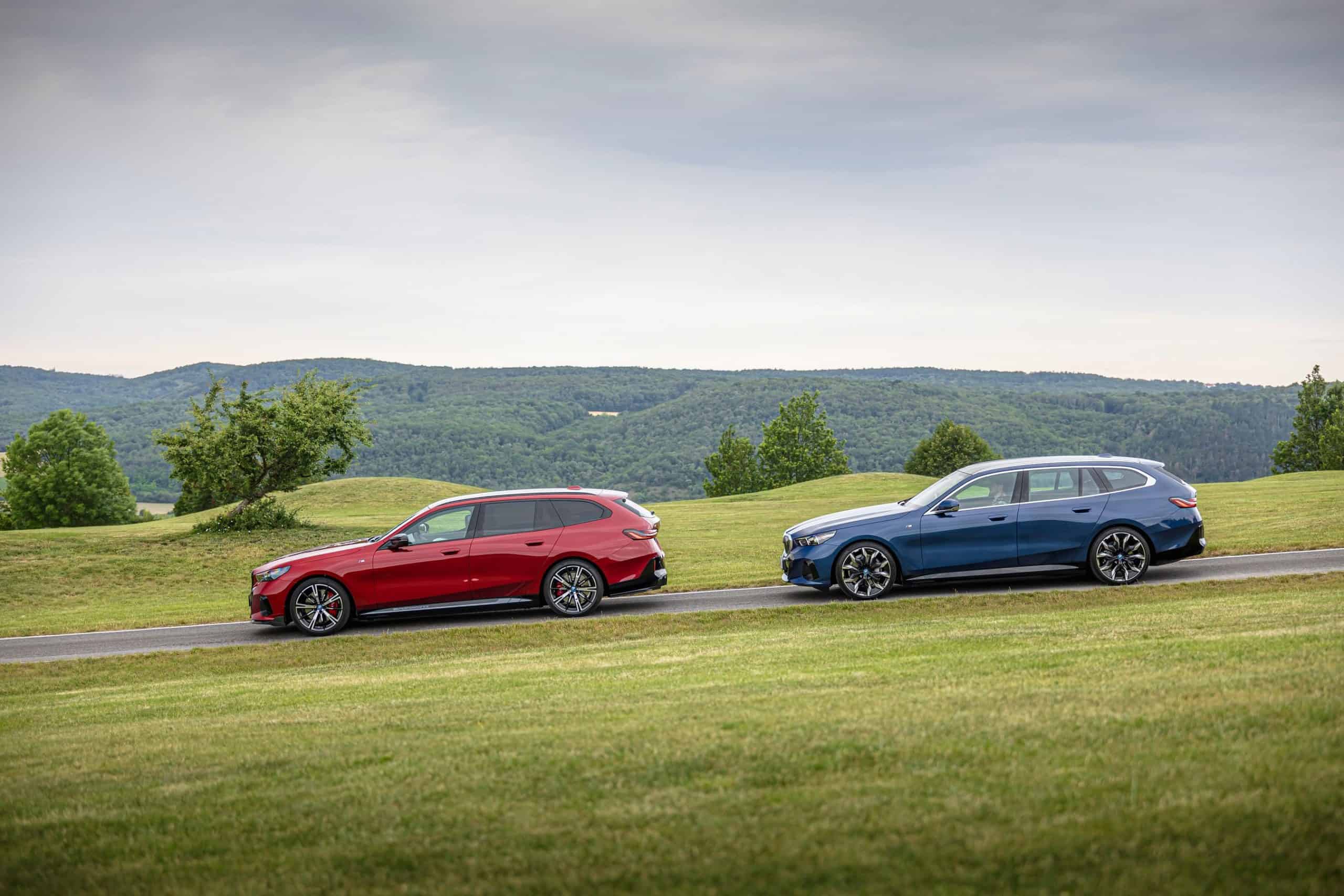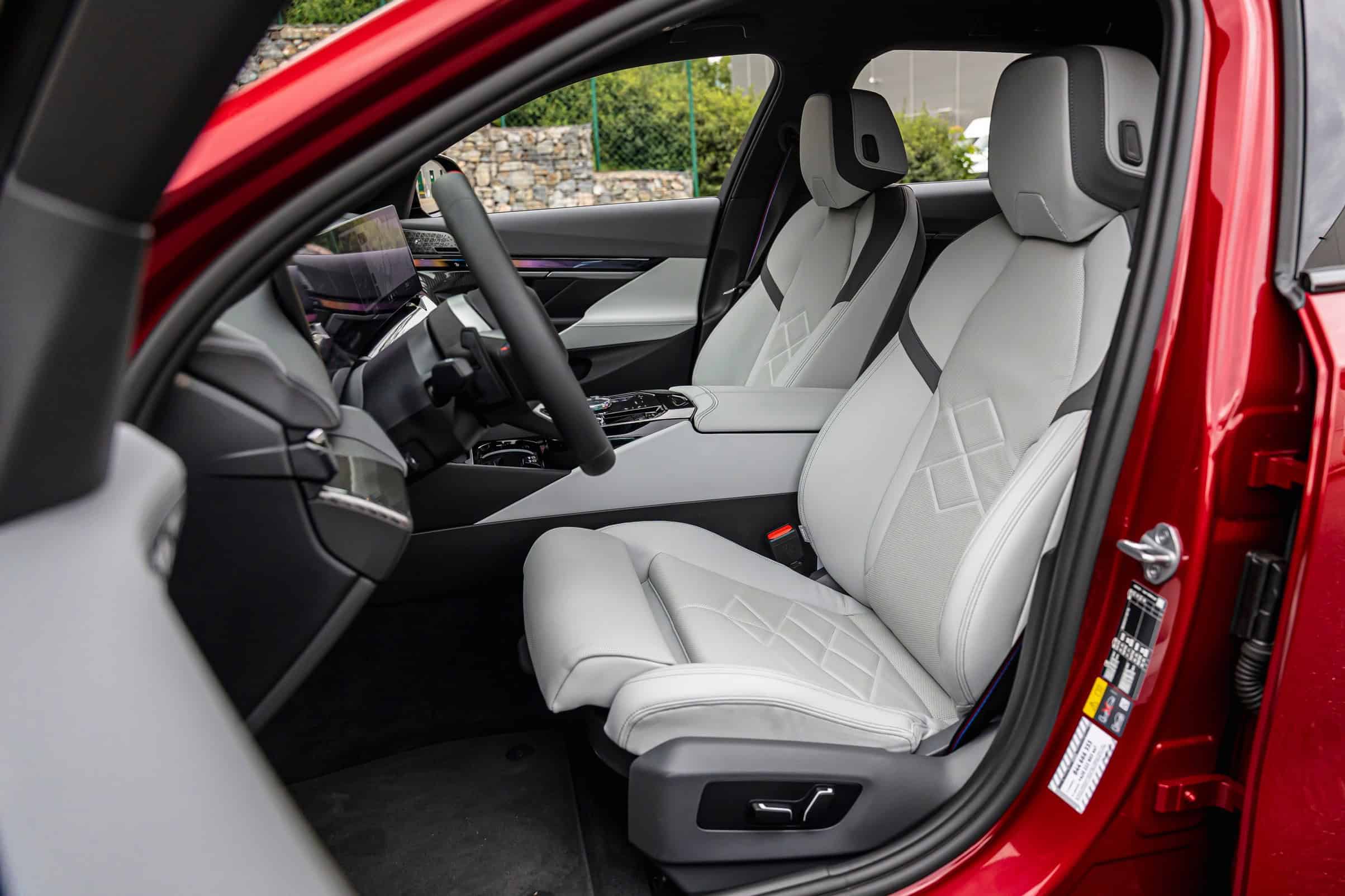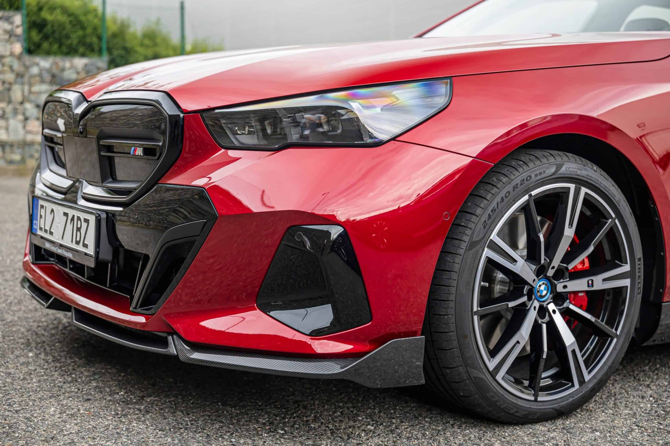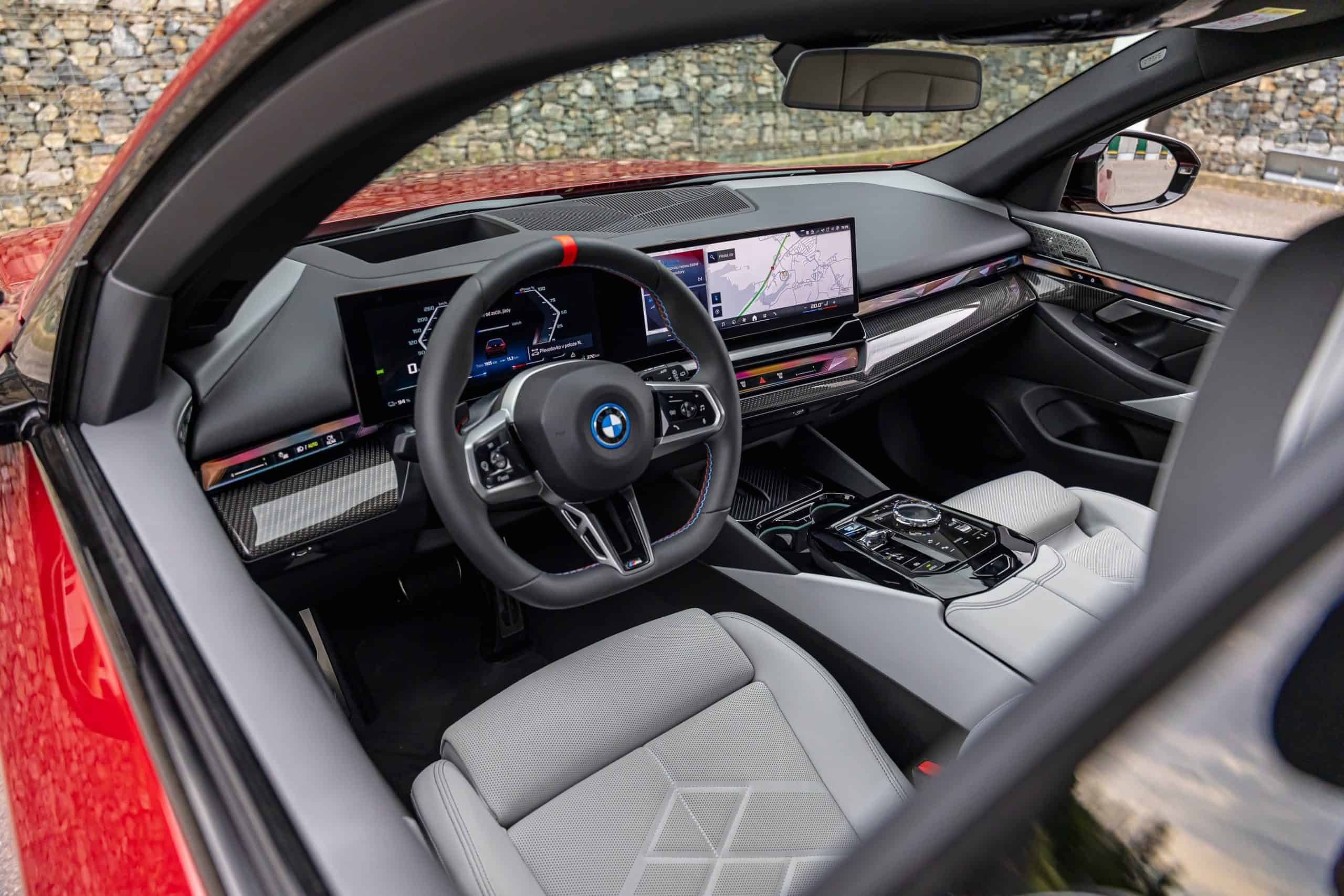 New images from Czechia show the two electric flavors of the G61 together in the countryside. As if the M Performance version wasn’t desirable already, BMW threw in some M Performance Parts. In addition, the i5 M60 painted in Fire Red boasts an Individual interior with Merino leather in Silverstone/Atlas Grey.
