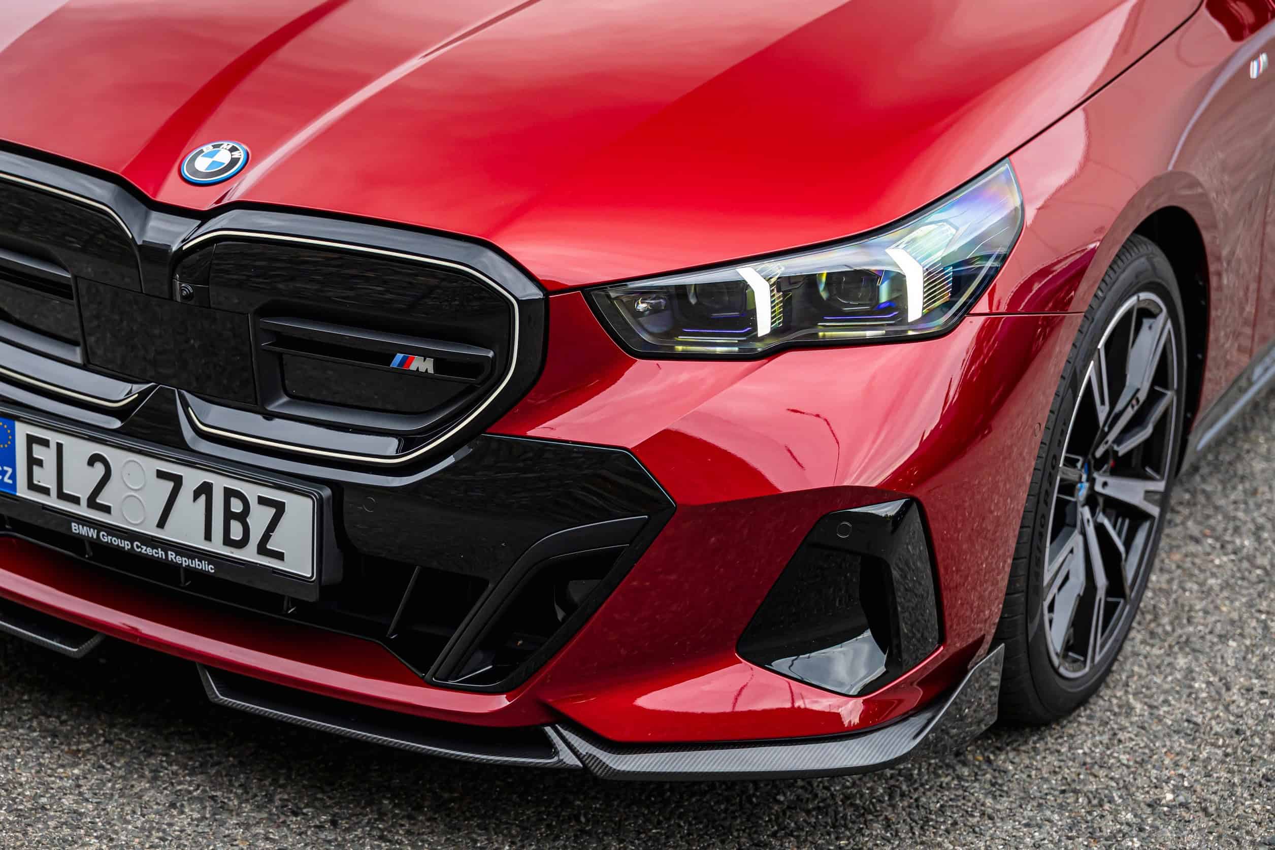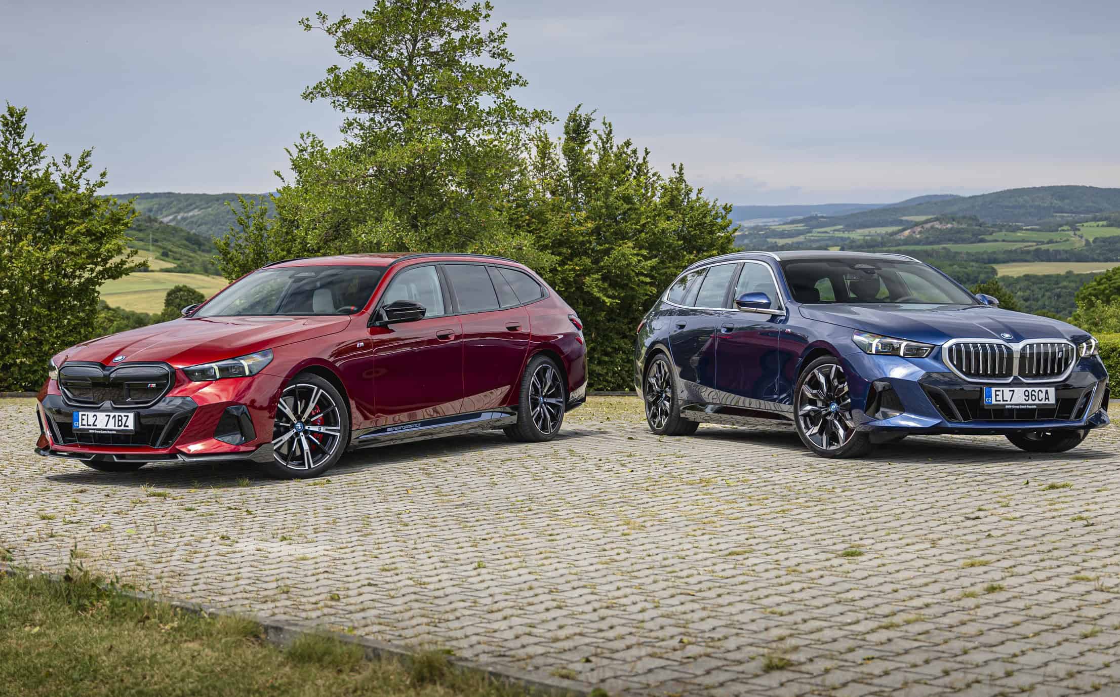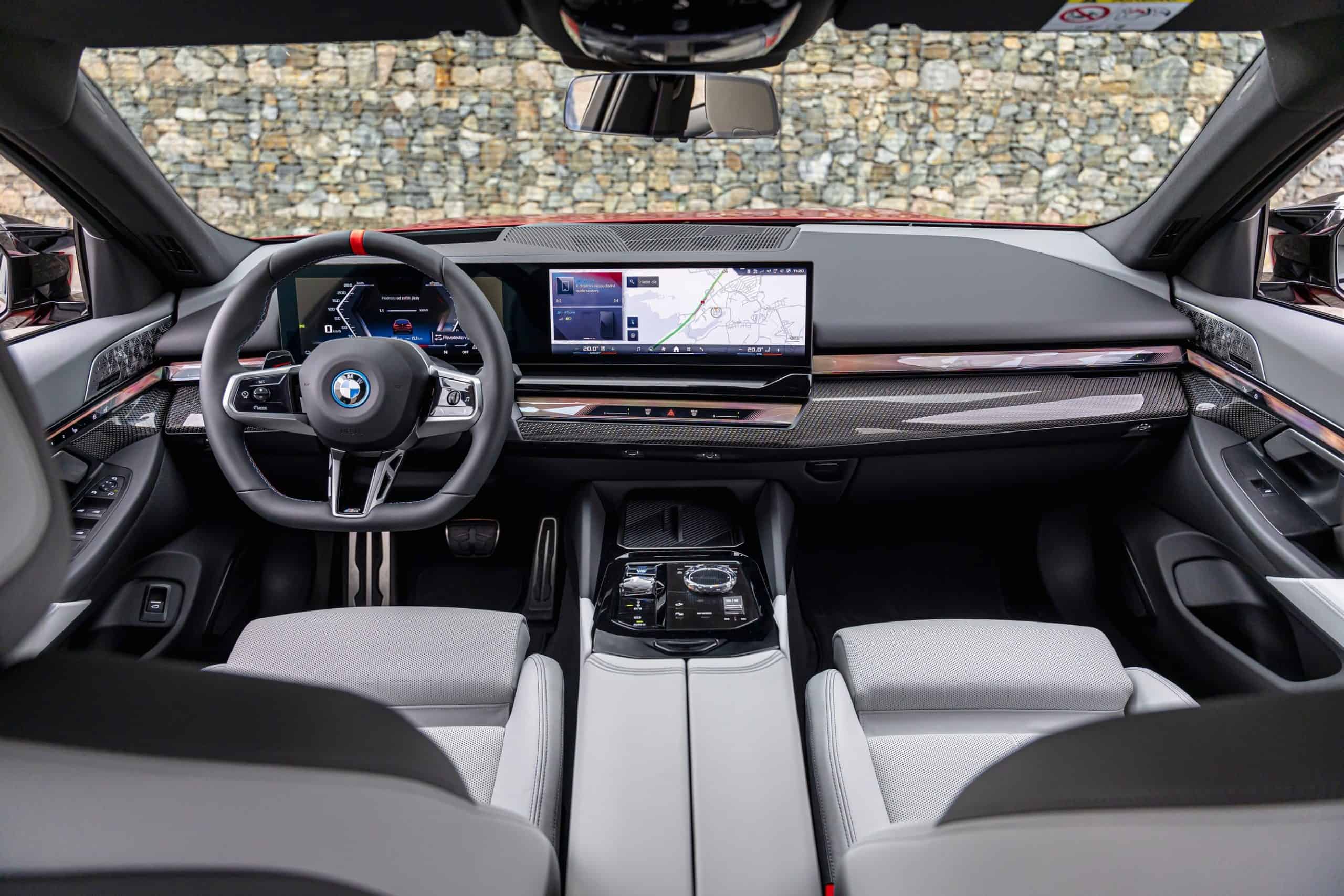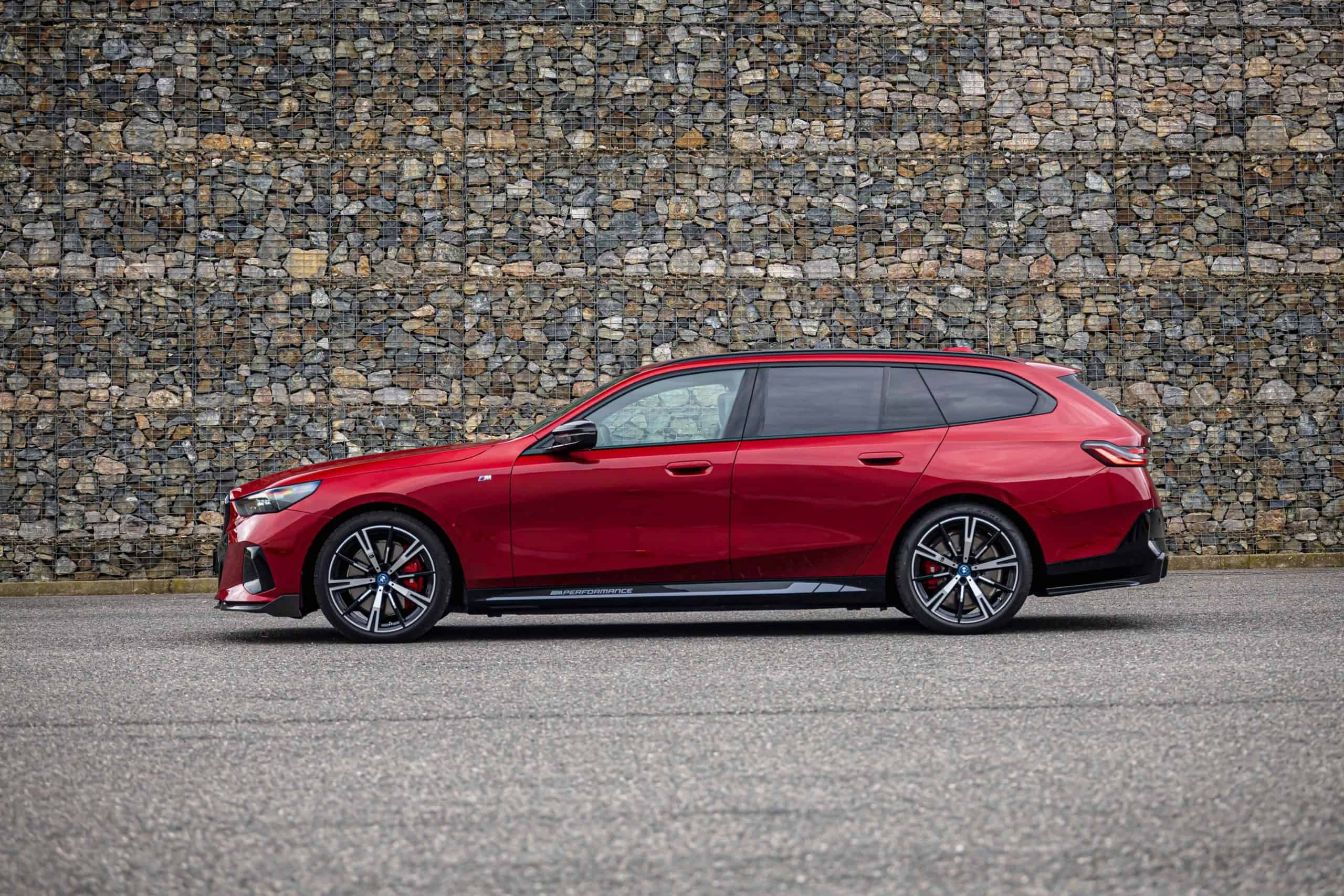 New images from Czechia show the two electric flavors of the G61 together in the countryside. As if the M Performance version wasn’t desirable already, BMW threw in some M Performance Parts. In addition, the i5 M60 painted in Fire Red boasts an Individual interior with Merino leather in Silverstone/Atlas Grey.