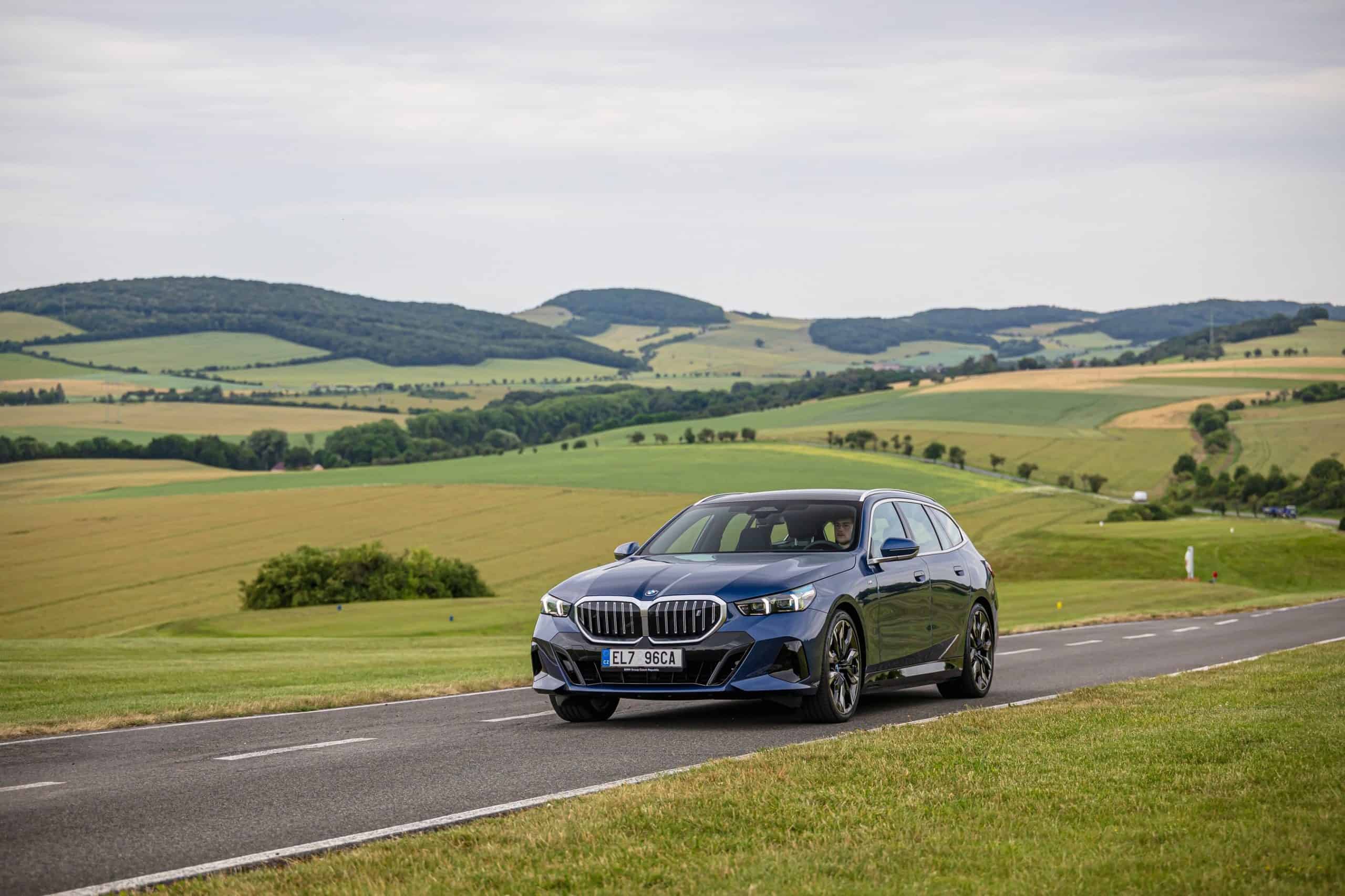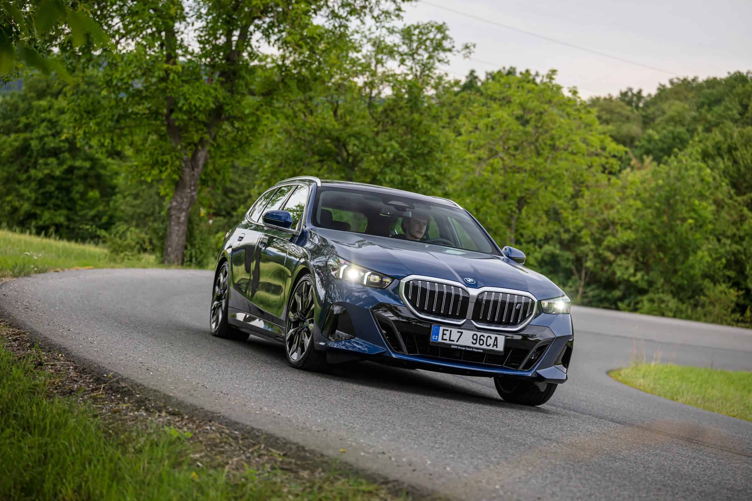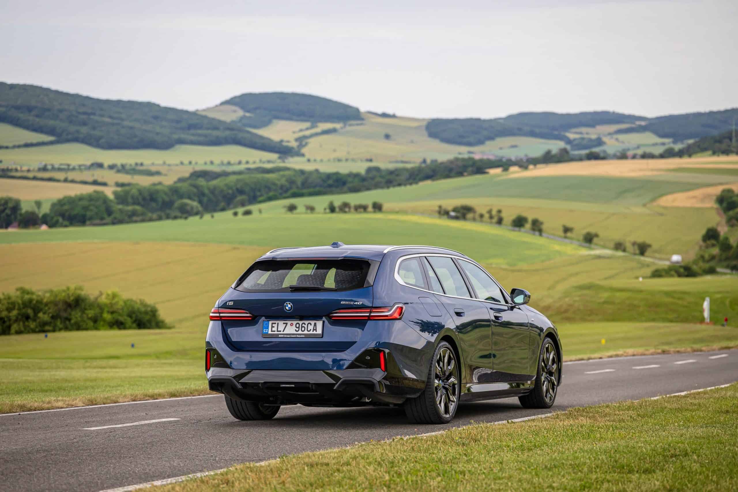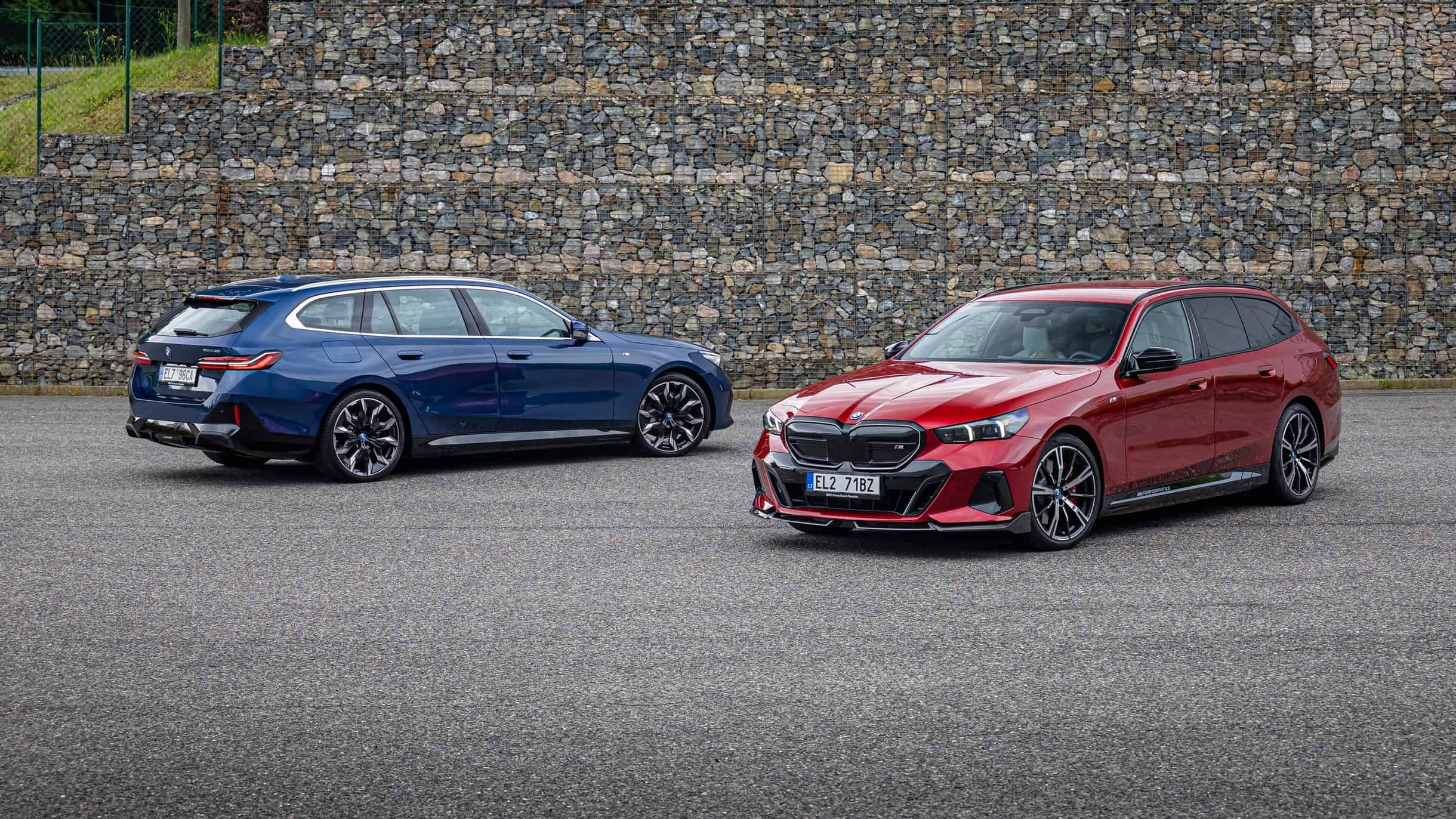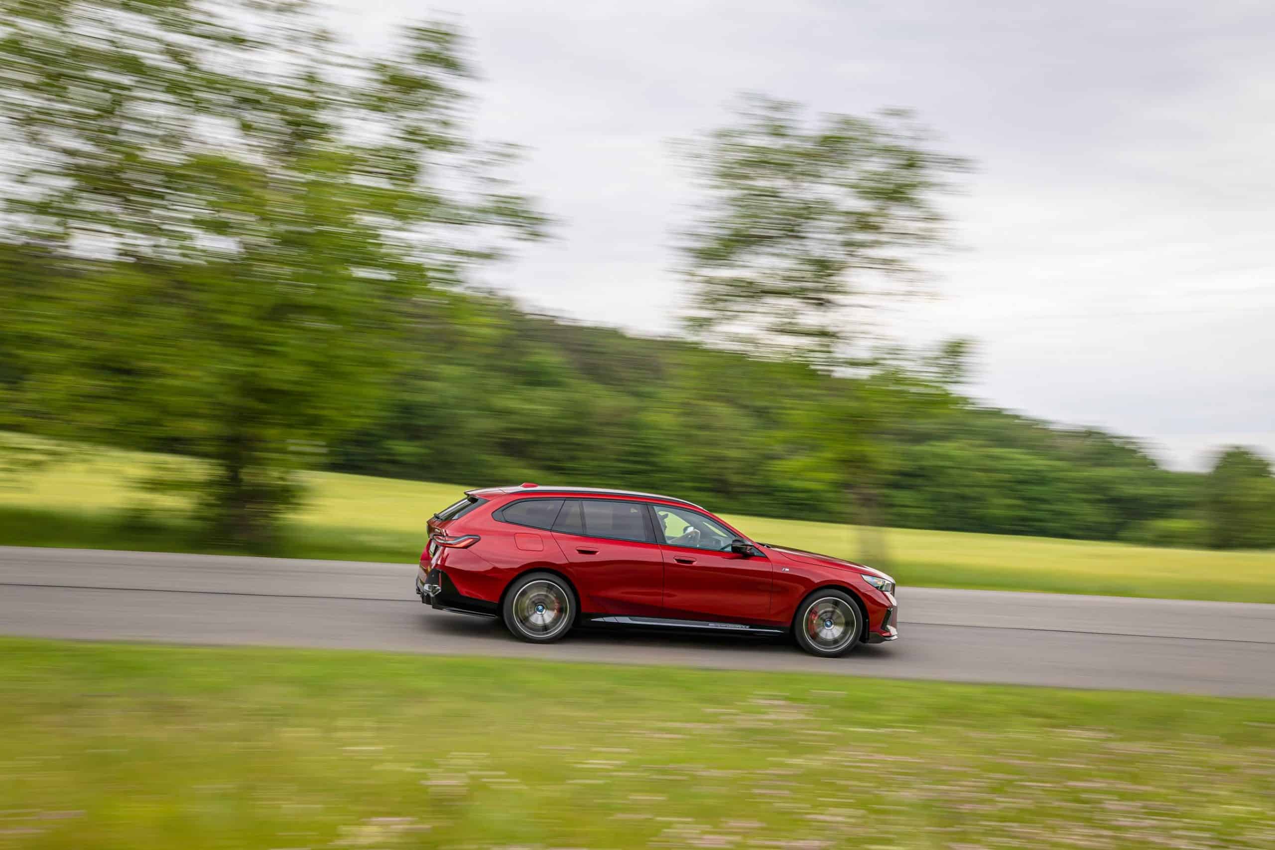 New images from Czechia show the two electric flavors of the G61 together in the countryside. As if the M Performance version wasn’t desirable already, BMW threw in some M Performance Parts. In addition, the i5 M60 painted in Fire Red boasts an Individual interior with Merino leather in Silverstone/Atlas Grey.