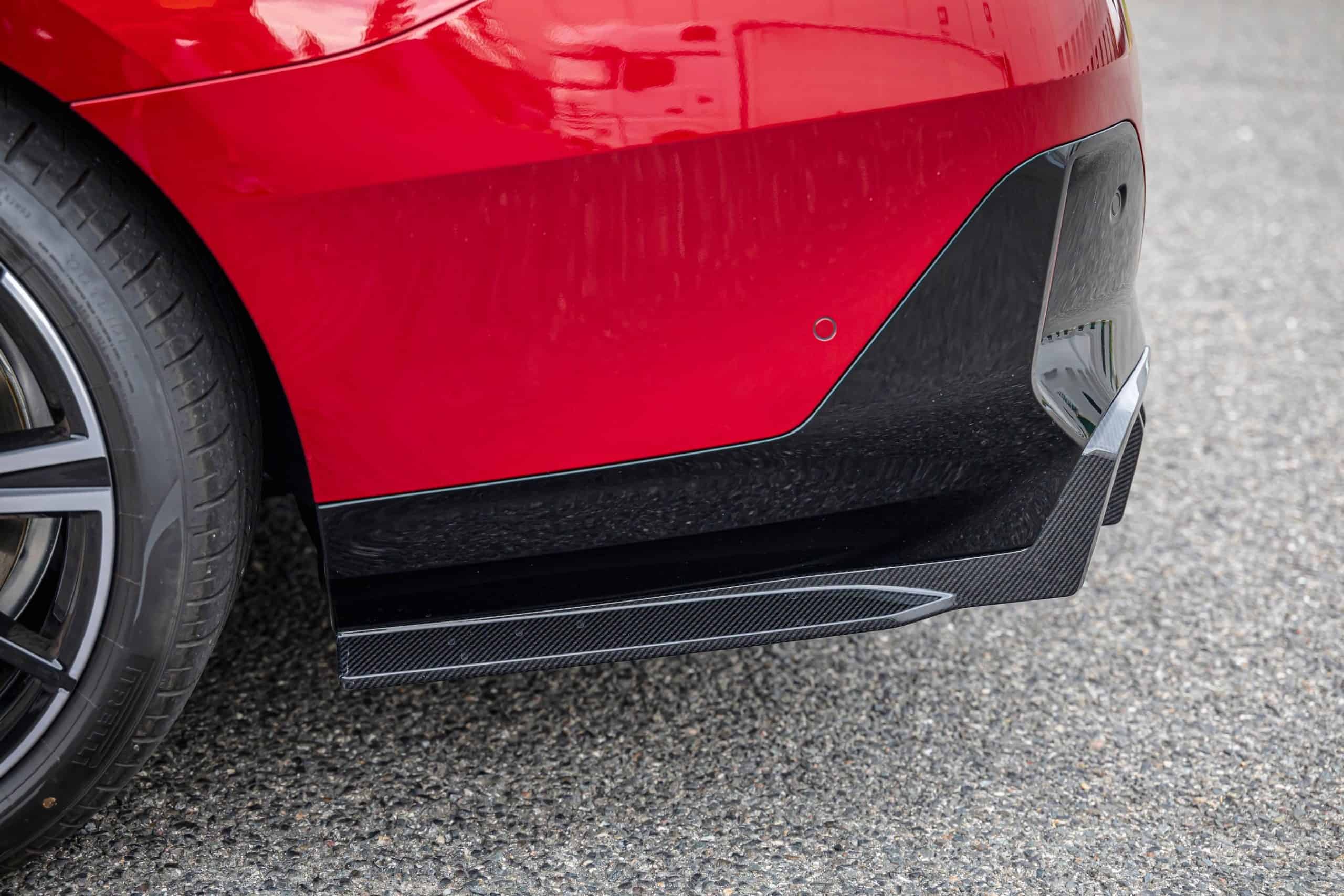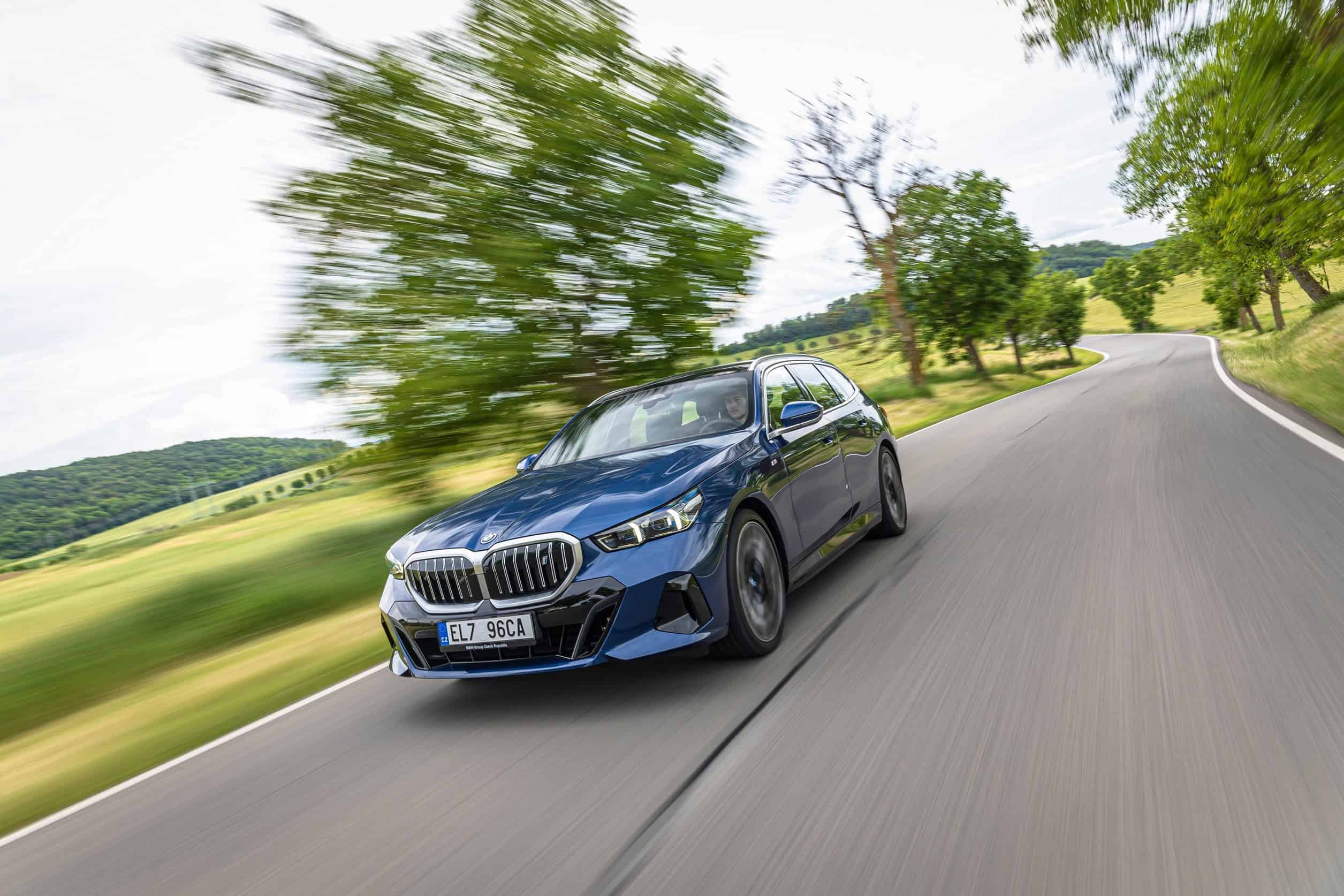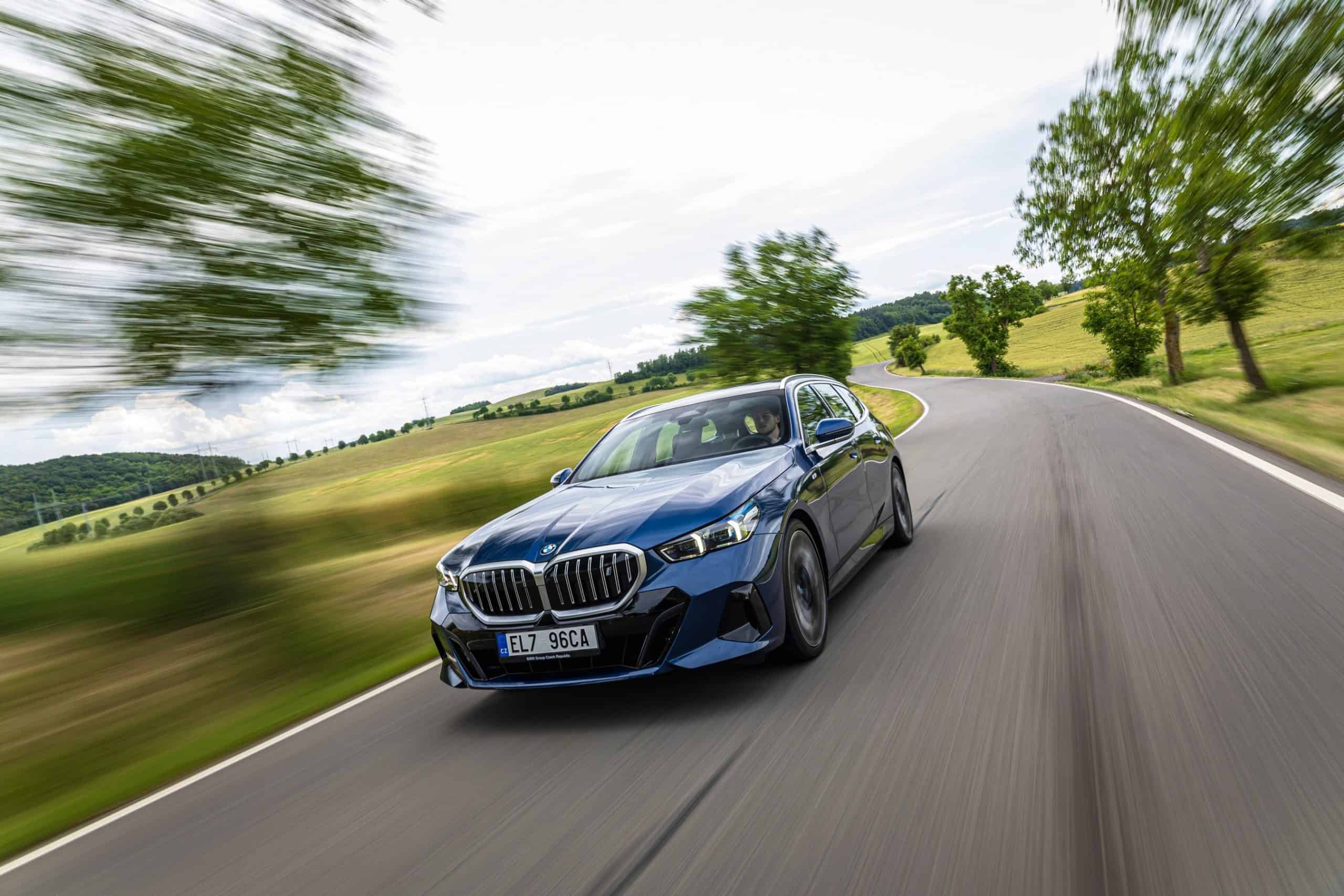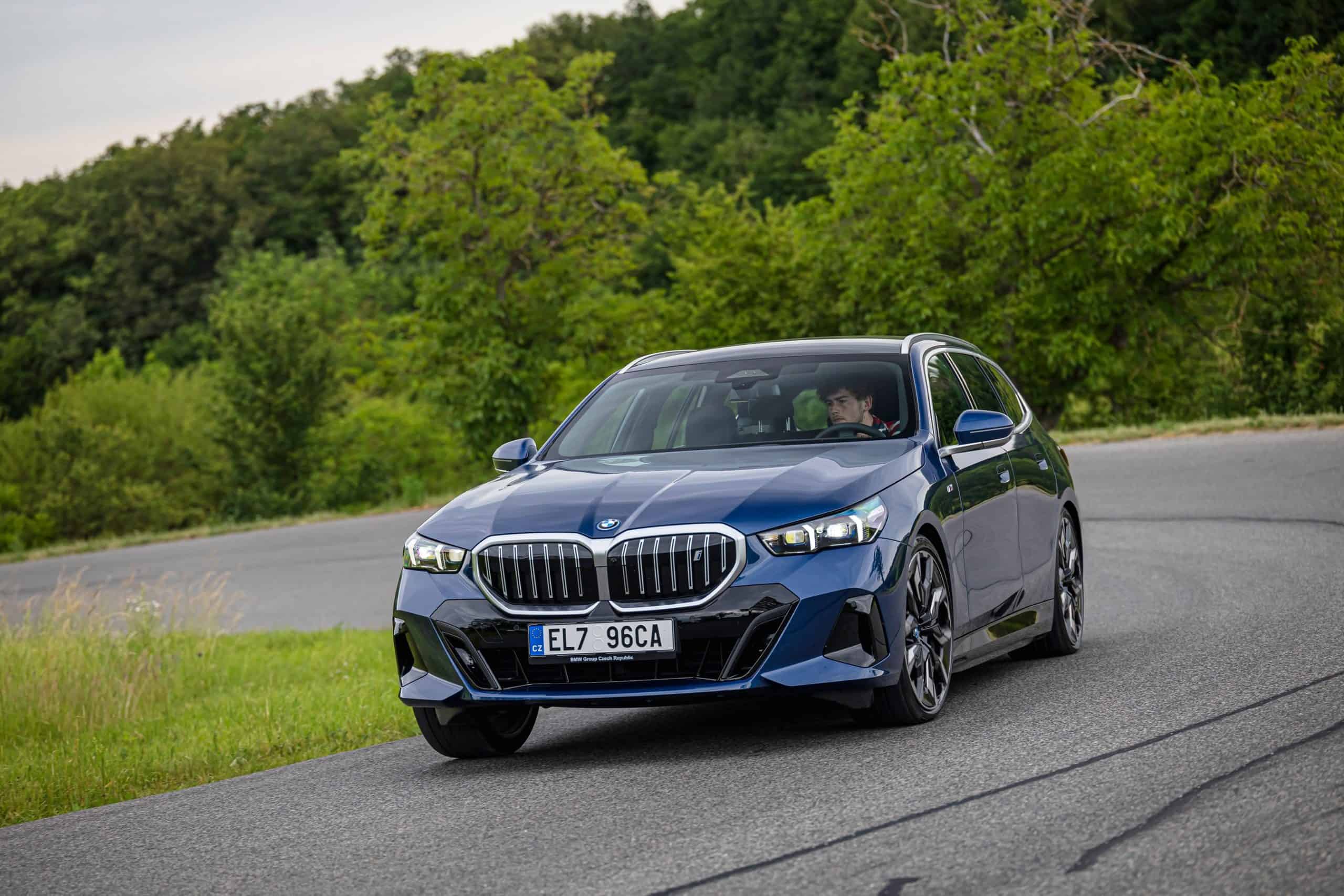 New images from Czechia show the two electric flavors of the G61 together in the countryside. As if the M Performance version wasn’t desirable already, BMW threw in some M Performance Parts. In addition, the i5 M60 painted in Fire Red boasts an Individual interior with Merino leather in Silverstone/Atlas Grey.