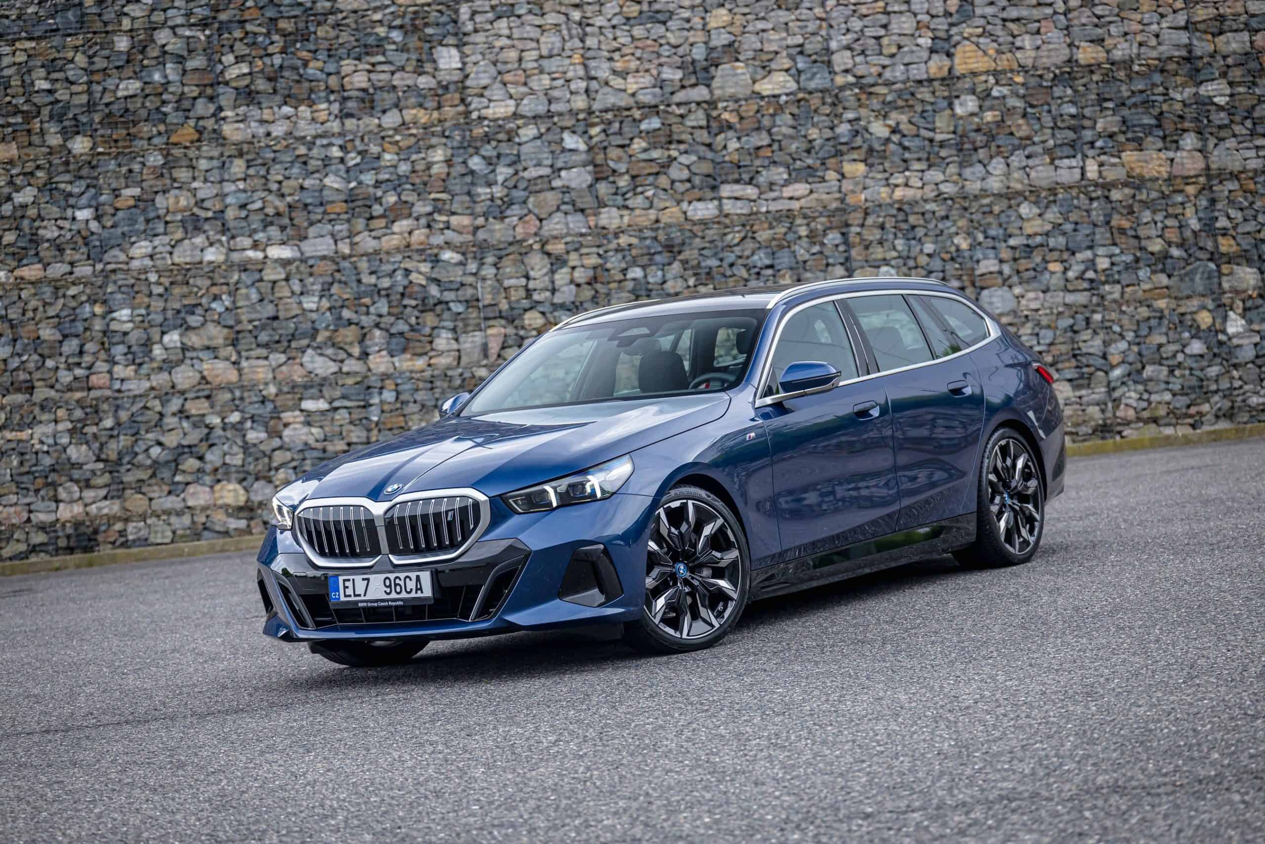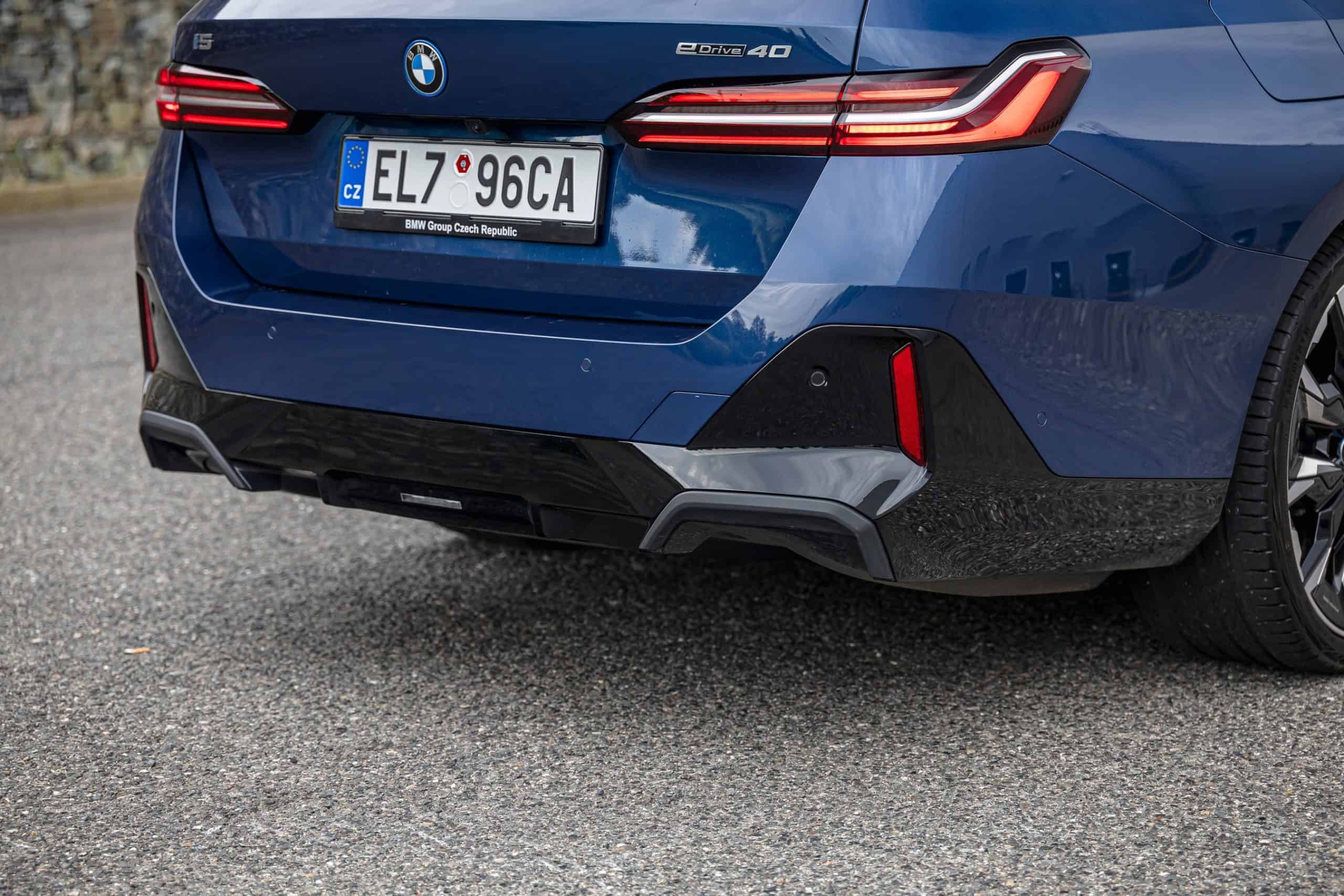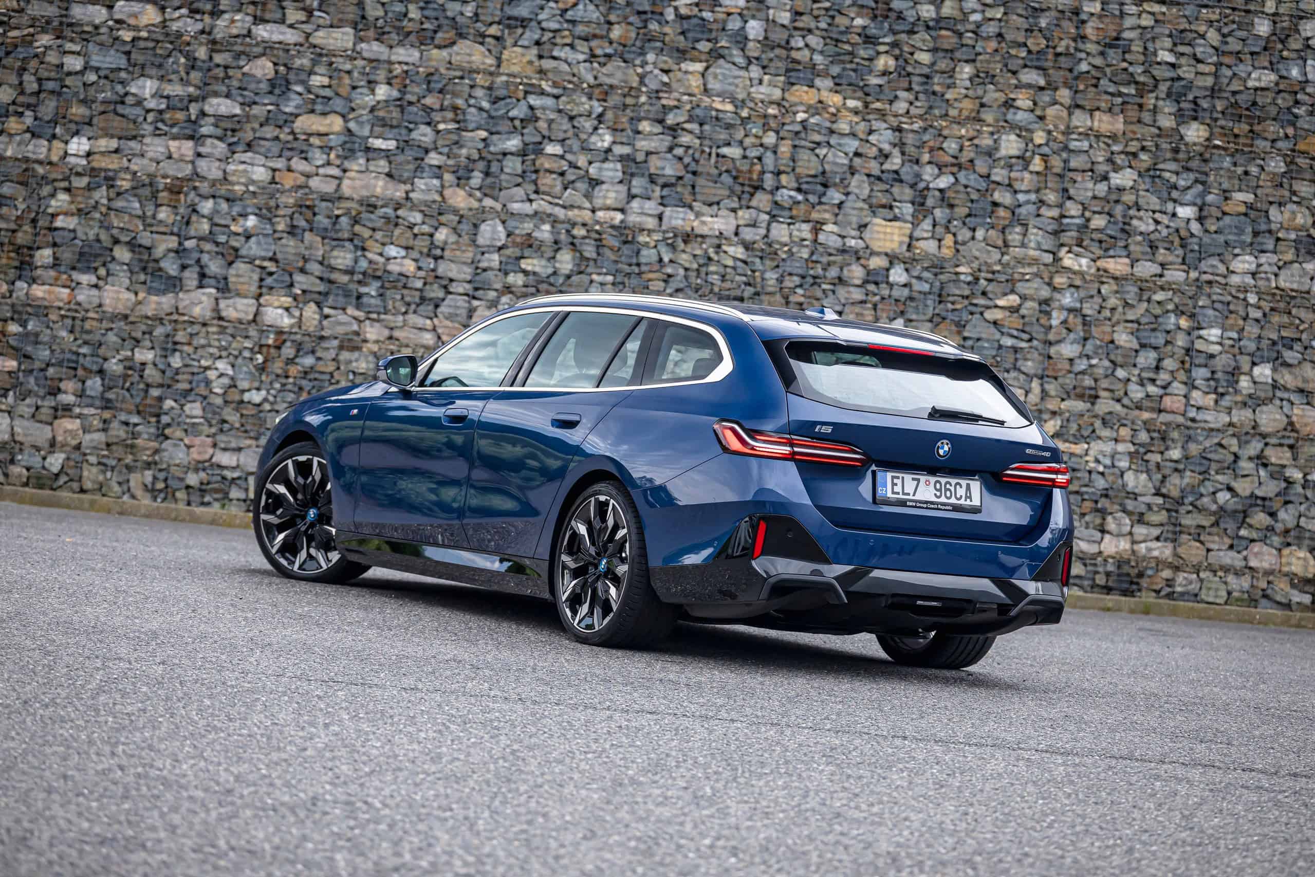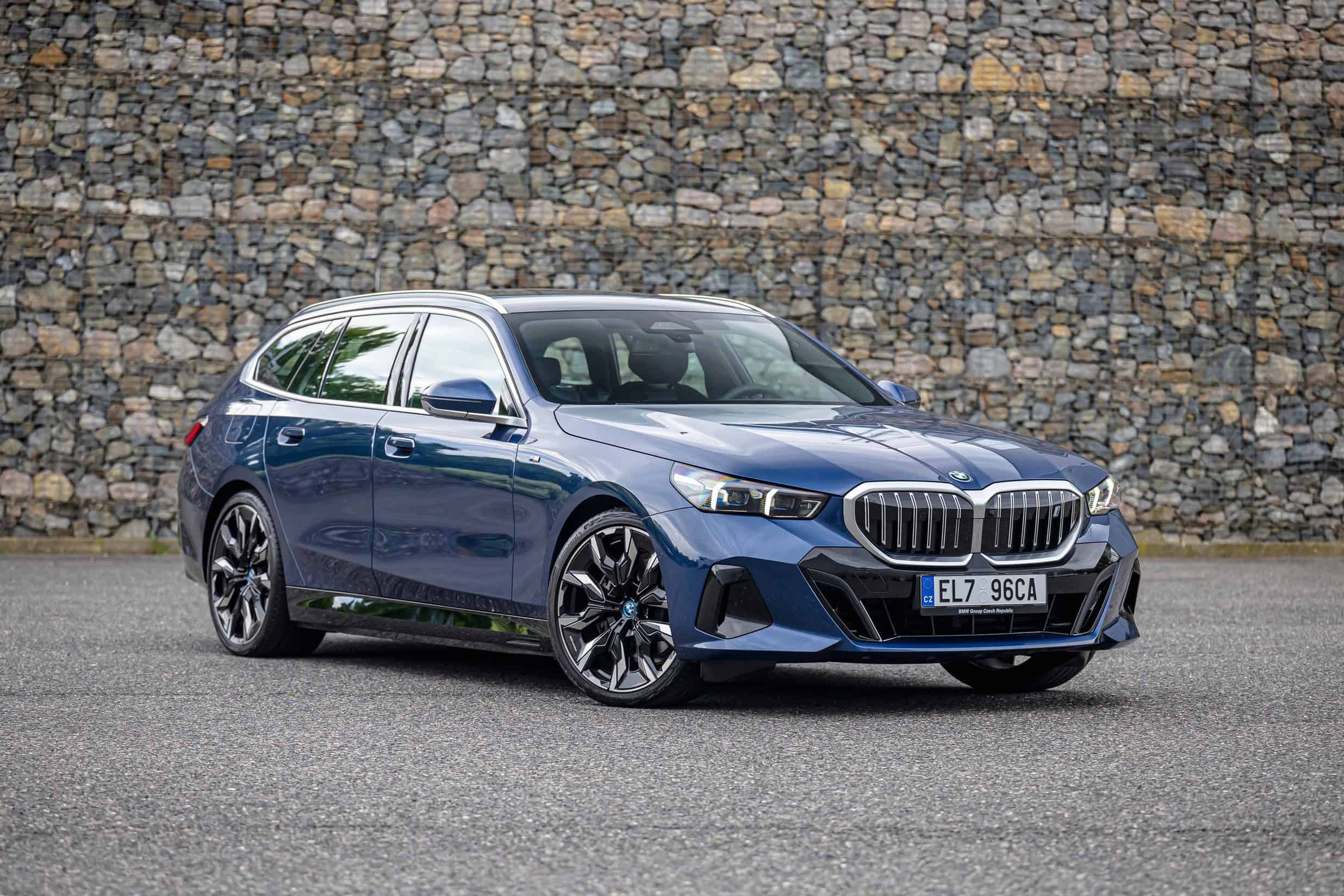 The lesser of the two long-roof i5 models isn’t exactly a base car either. It has the optional M Sport Package and an Individual Tanzanite Blue metallic paint. Its 21-inch wheels (Style 954 I) are actually a size larger than those of the M60. The sporty electric wagon sits on a 20-inch set (Style 938 M), with both featuring a two-tone look.