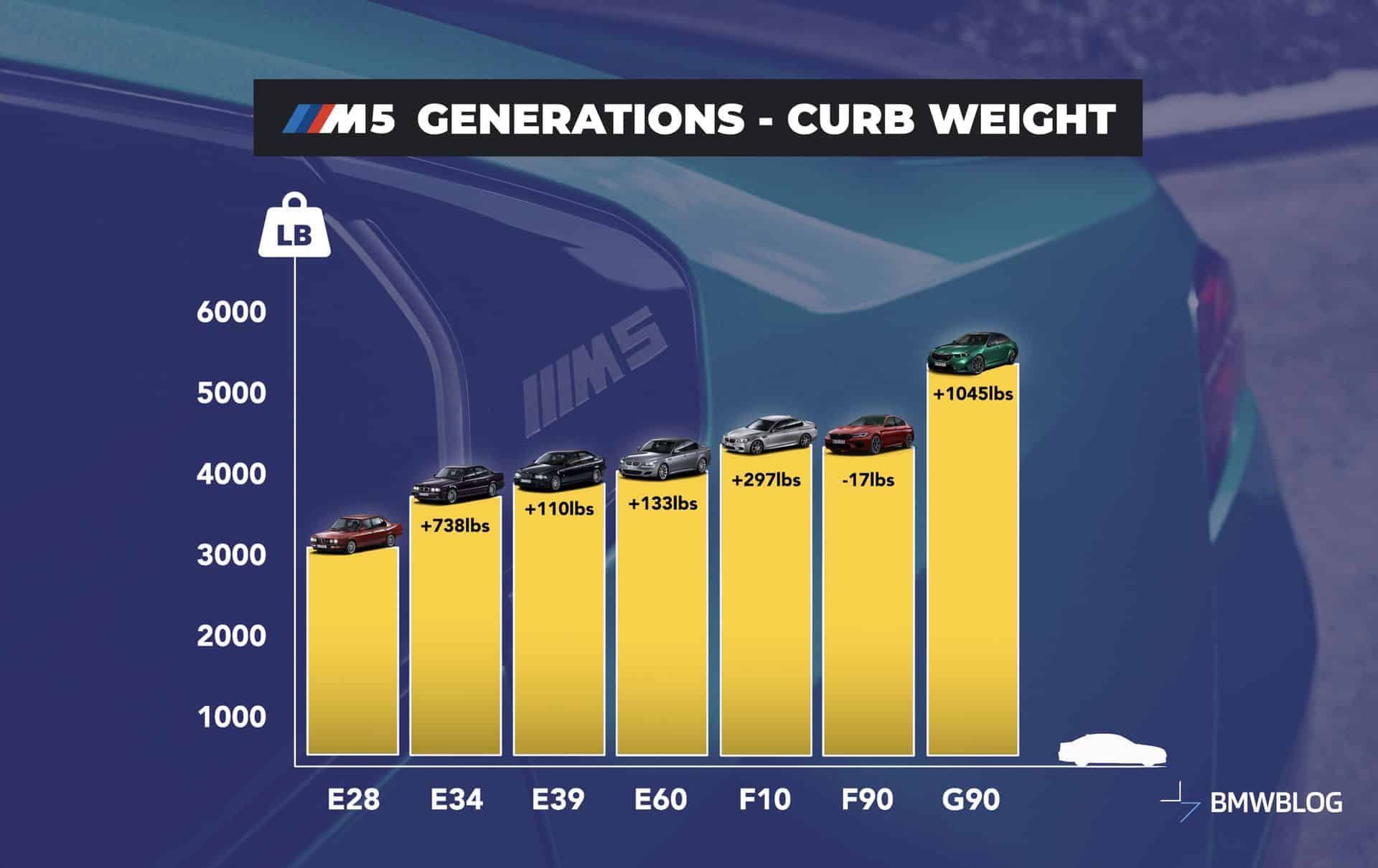 The new BMW M5 G90 is setting a new benchmark for BMW, not only in terms of power, but also weight. Despite being the most powerful M5 ever made, and the first ever plug-in hybrid model, the G90 M5 is also the heaviest: 5,390 pounds (2,445 kilograms), marking a significant increase from its predecessors. Therefore, this raises a crucial question: Has the M5 sacrificed too much in the name of progress? In this article, we take a look at all the BMW M5 generations and how their weight changed over time.