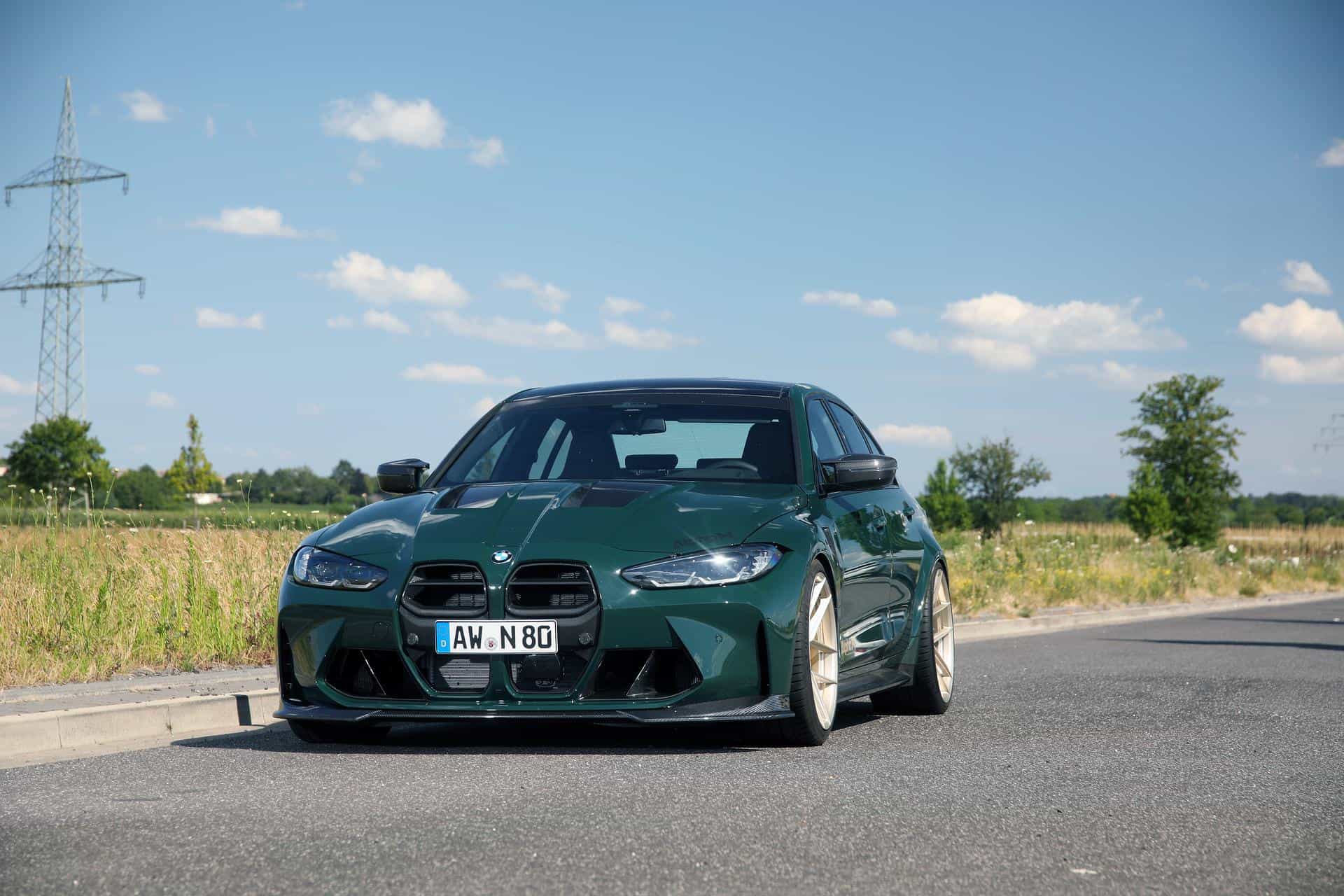 Alpha-N Performance, a German tuner renowned for carbon fiber aerodynamic part, has unveiled their latest project vehicle: the BMW M3 (G80). Building upon the aero program for the M2, Alpha-N’s engineers and stylists set to transform the four-door sedan into a carbon fiber showpiece. The front of the BMW M3 now boasts an array of striking carbon fiber enhancements. The highly controversial and oversized kidney grilles have been reimagined with a carbon fiber finish and a horizontal partition, lending the car a less obnoxious but quirkier front-end. The addition of the Alpha-N carbon fiber front spoiler, with its winglet-inspired raised sides, further accentuates the car’s aggressive stance.
