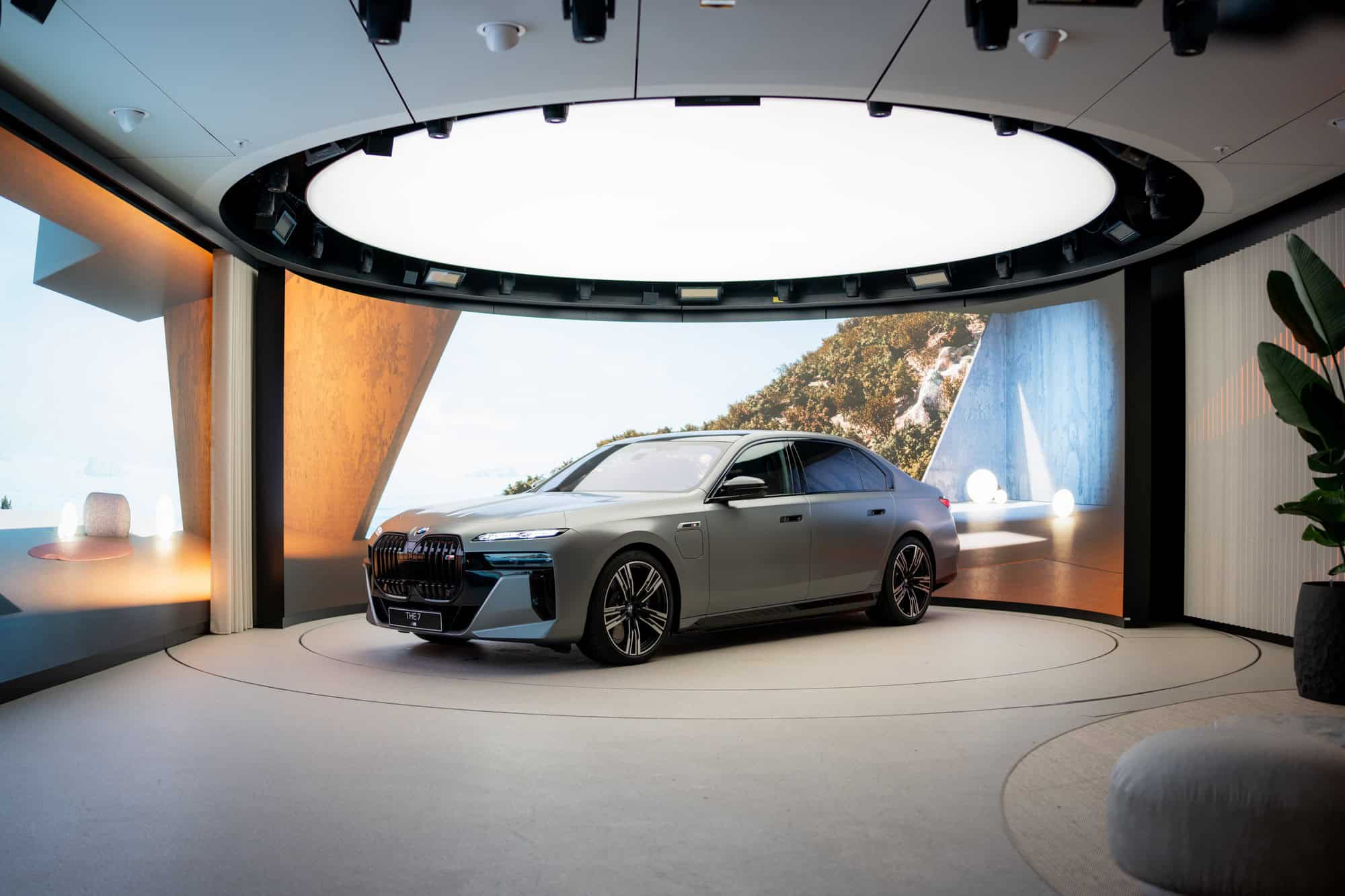 The Exclusive Privacy is an extra €249. In other words, you’ll be paying €1,569 for the full BMW Welt experience when taking delivery of the new car. Then again, you’re not buying a new BMW every year, so why not make the most out of the experience? Shown here is an M760e, one of the company’s most expensive cars. Recently, we had the opportunity to go inside the special room to check out a 2025 i4 in Ruby Red, as show below.