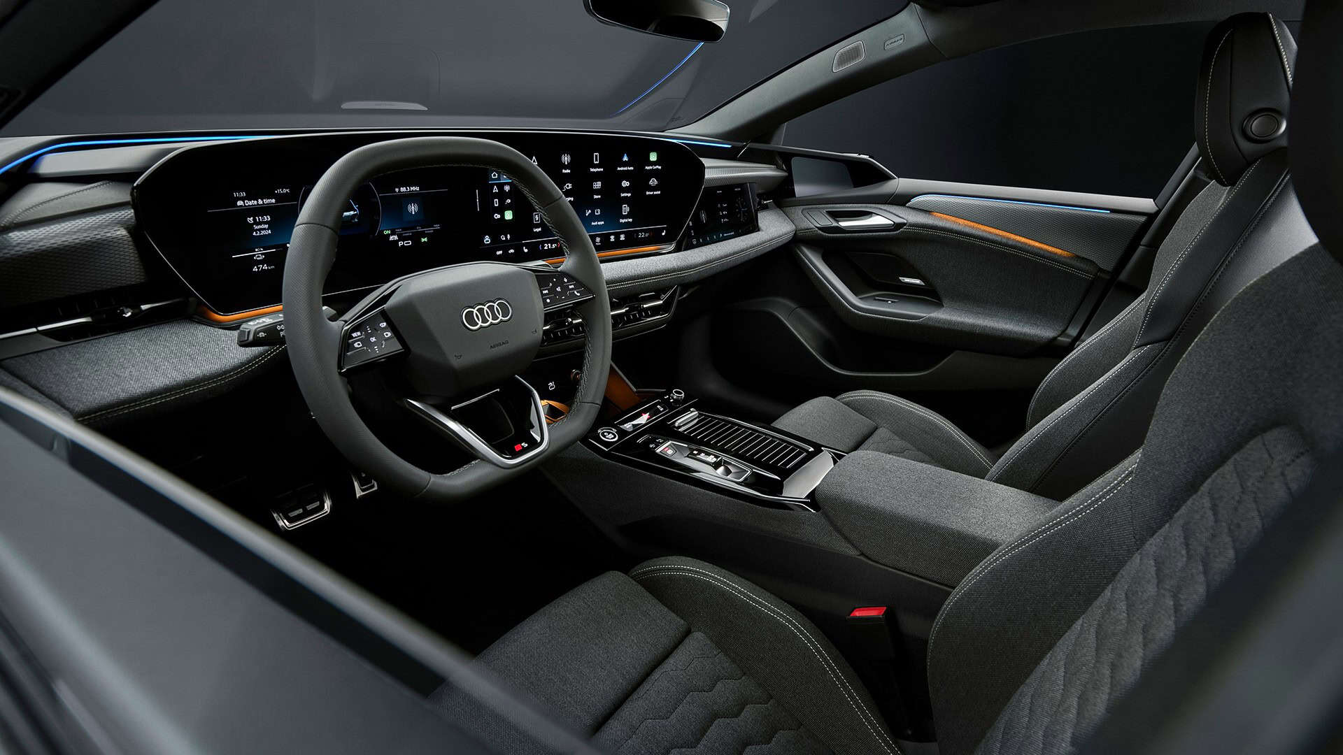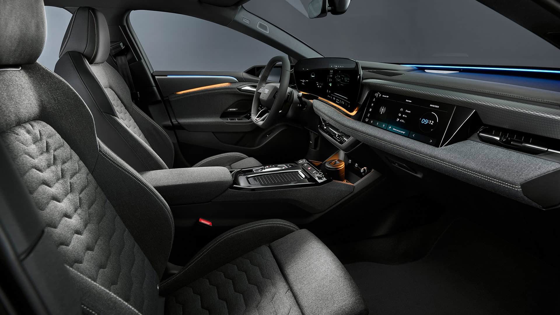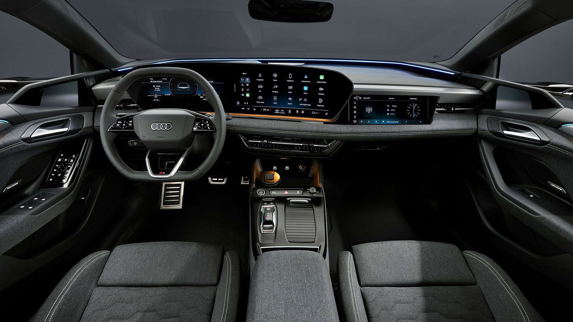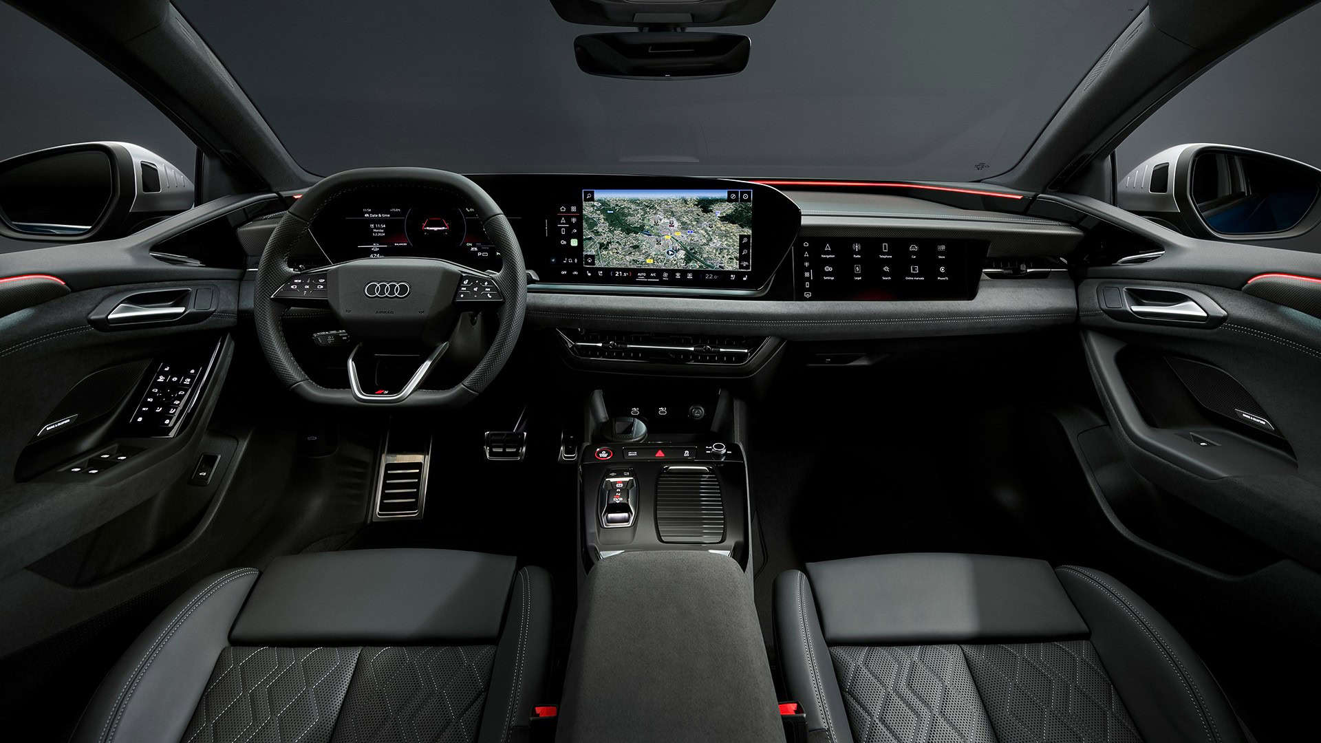 Inside, there’s a screen-heavy dashboard with an 11.9-inch driver’s display, a 14.5-inch infotainment, and an optional 10.9-inch screen for the front passenger. On top of that, customers can order the car with a new generation of Audi’s head-up display featuring augmented reality tech. Speaking of things that cost extra, the panoramic sunroof takes advantage of polymer-dispersed liquid crystals (PDLC) to switch from opaque to transparent at the touch of a button.