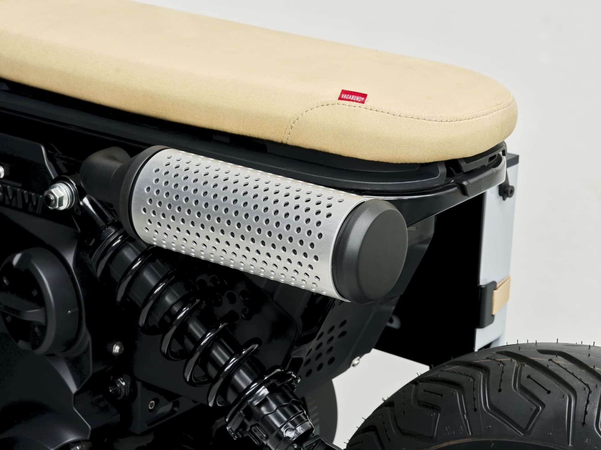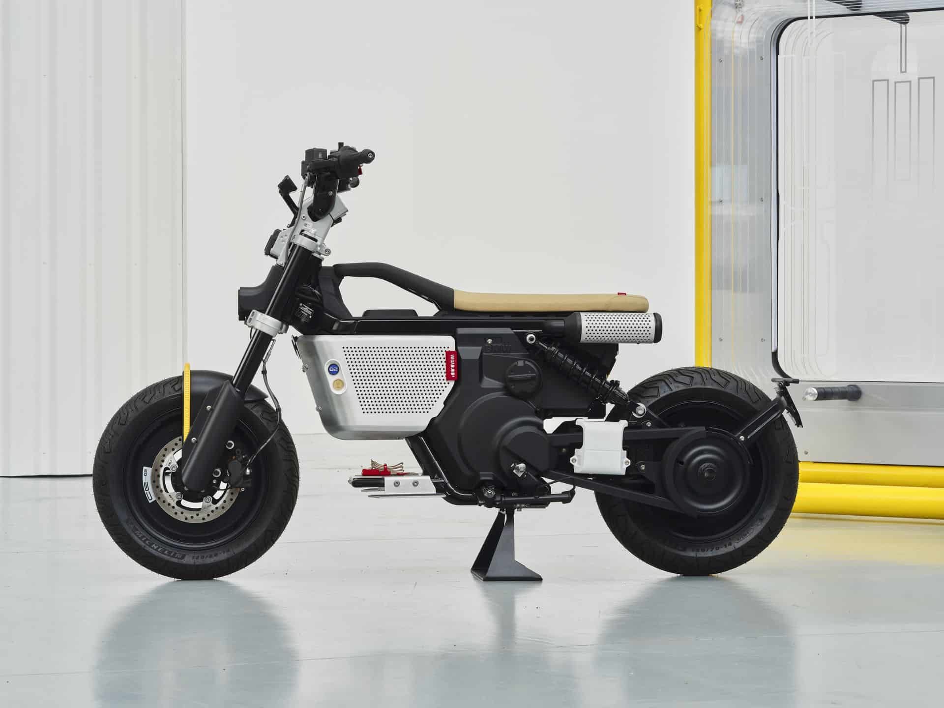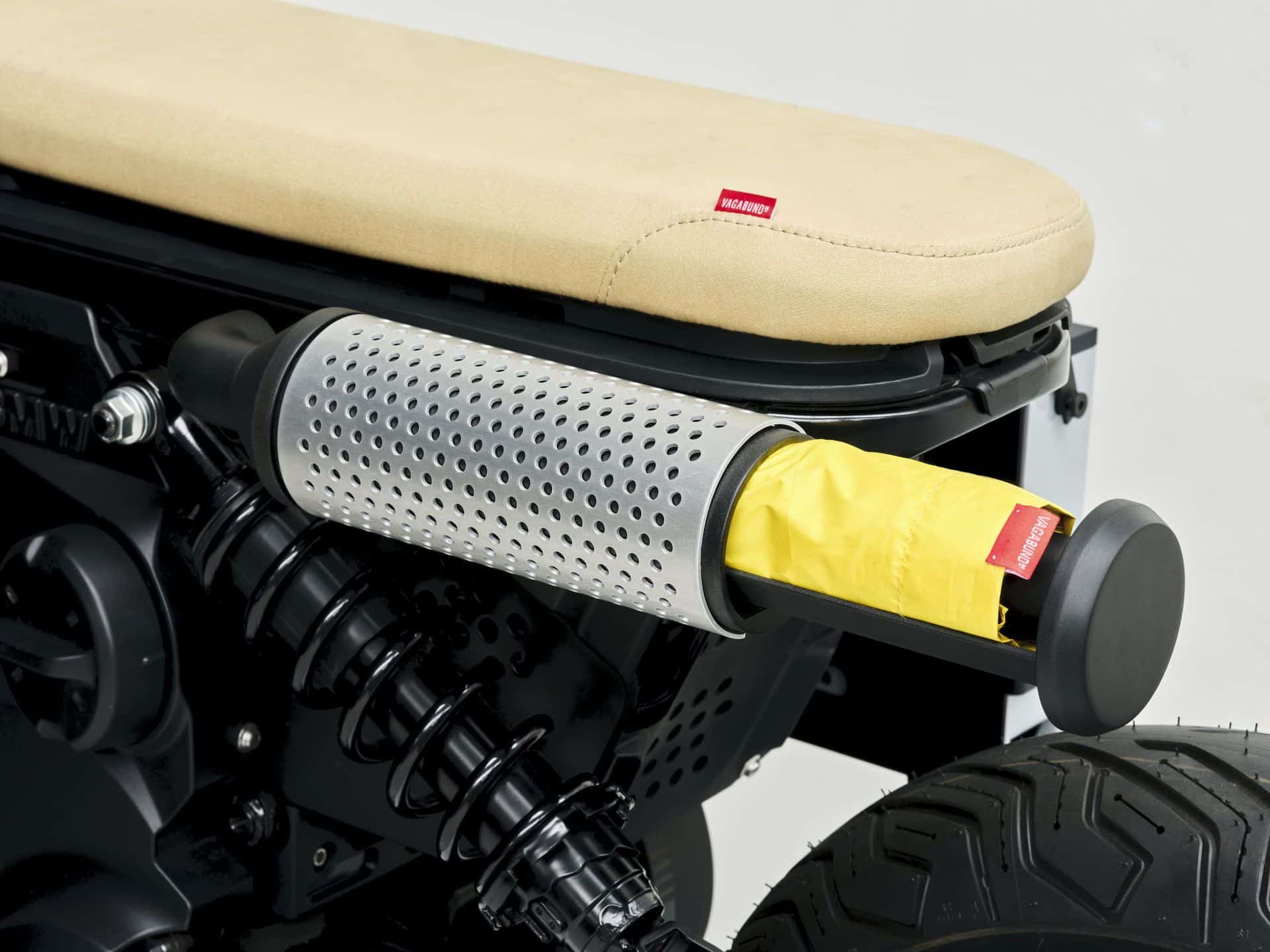 The BMW CE 02 x VAGABUND integrates functional “retro” elements with a fresh, modern twist, targeting a young, dynamic audience. One standout feature is the “OB-4 Magic Radio” from Teenage Engineering, which enhances the bike’s youthful and creative vibe. Additionally, the “electric exhaust” serves as both a practical style element and a visual highlight, cleverly designed to accommodate an umbrella. The design also includes a running board with skateboard grip tape, reflecting the sporty, urban eParkourer style. These thoughtful additions not only enhance the bike’s functionality but also underscore its appeal to urban riders looking for a blend of style and substance.