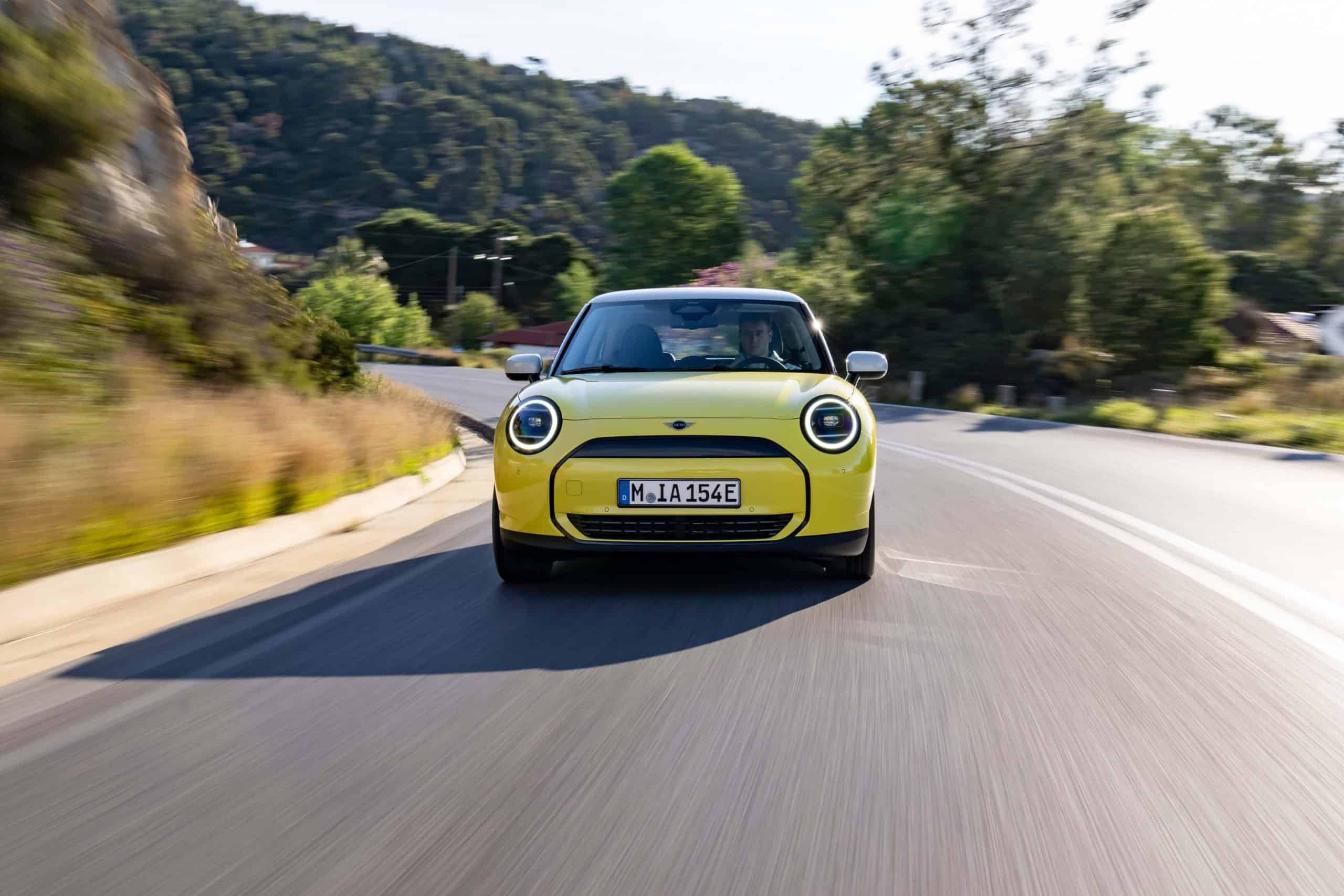 Ironically, the EV featured here was built in the Classic Trim. That striking paint job is called Sunny Side Yellow, contrasted by the white roof and mirrors. MINI also went with a glossy black grille surround and dark 17-inch wheels, so a lot is going on with the exterior. The electric hatch traveled thousands of miles for this photo shoot considering the car was built in China. The “J01” won’t be built at home in Oxford until sometime in 2026.