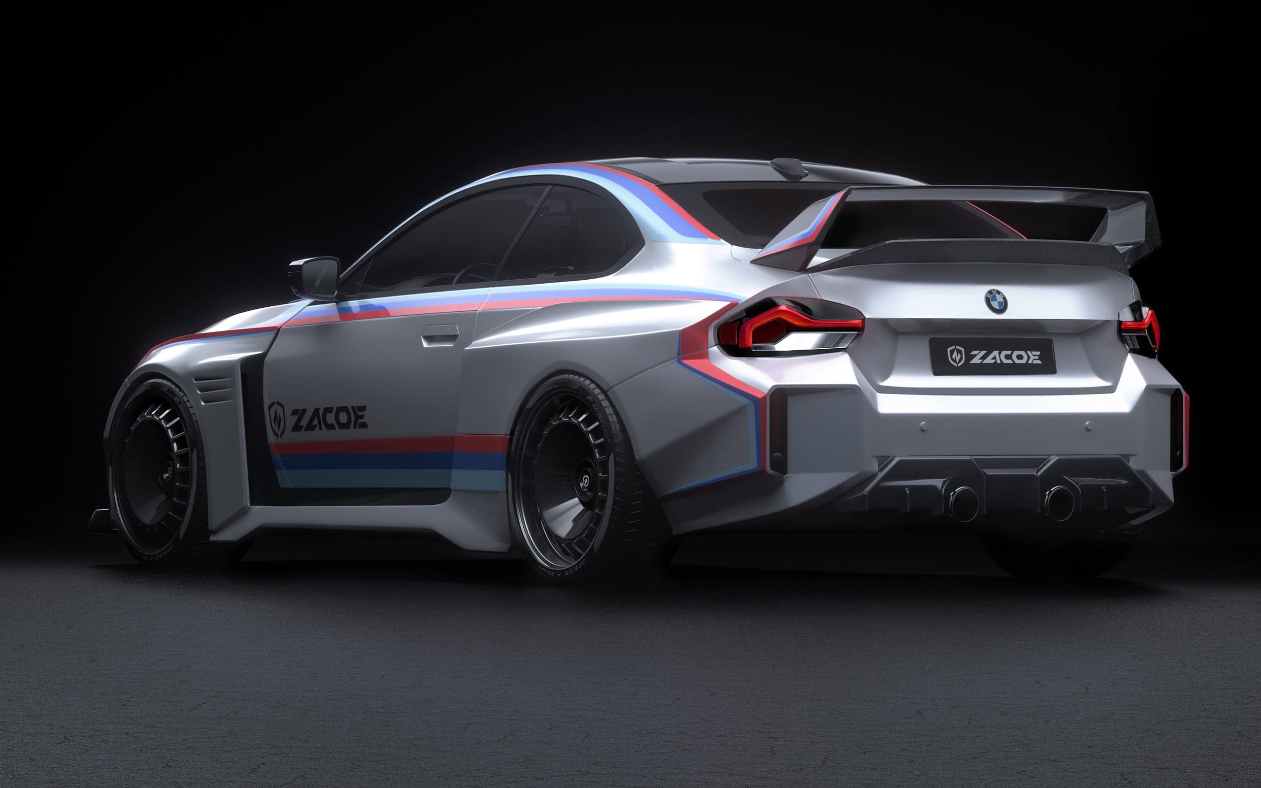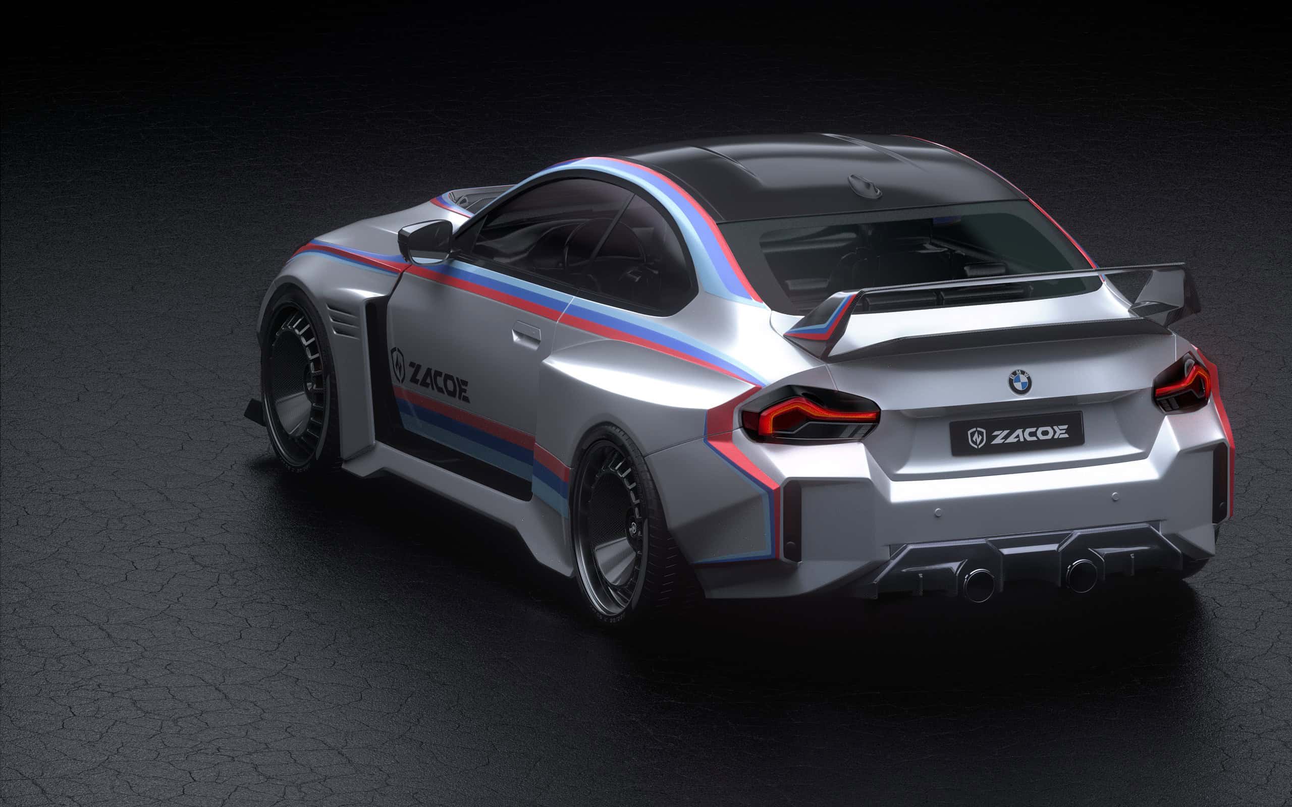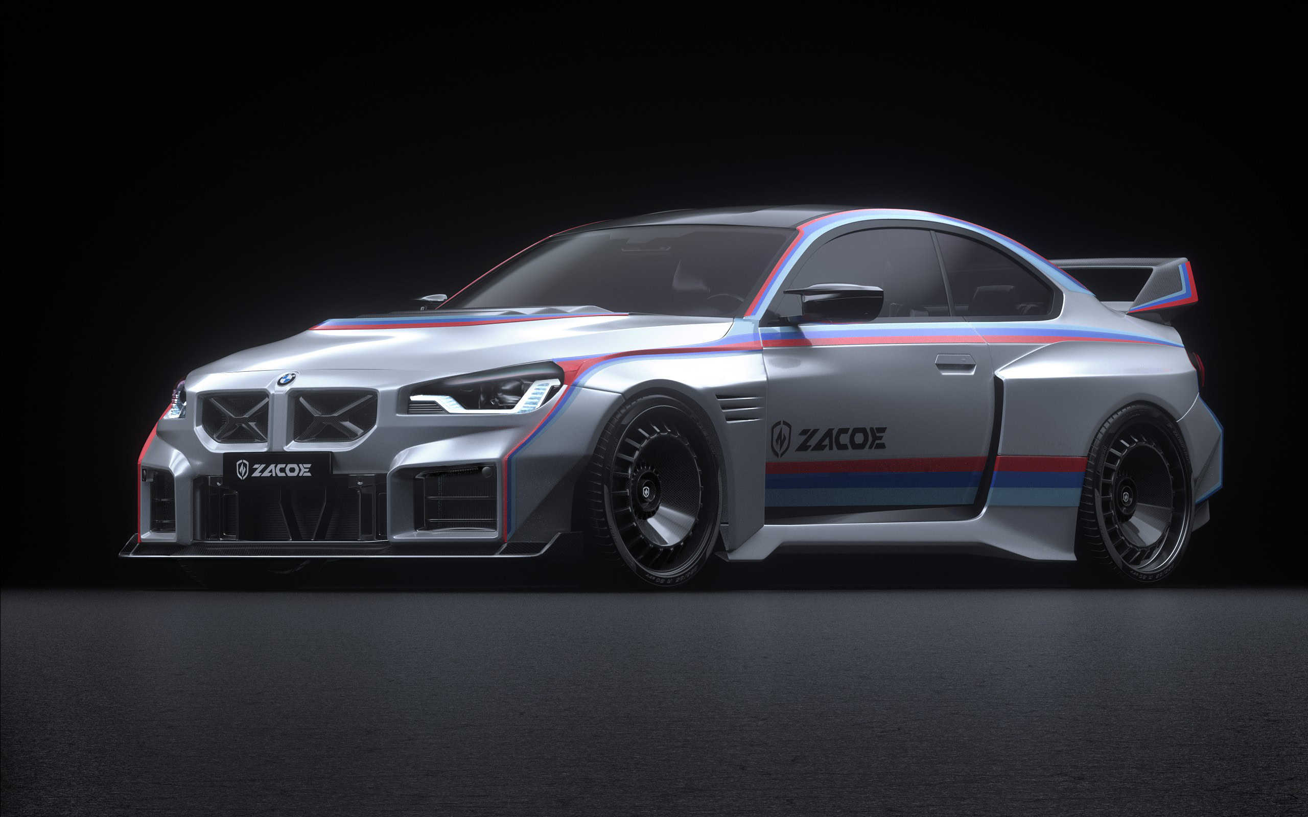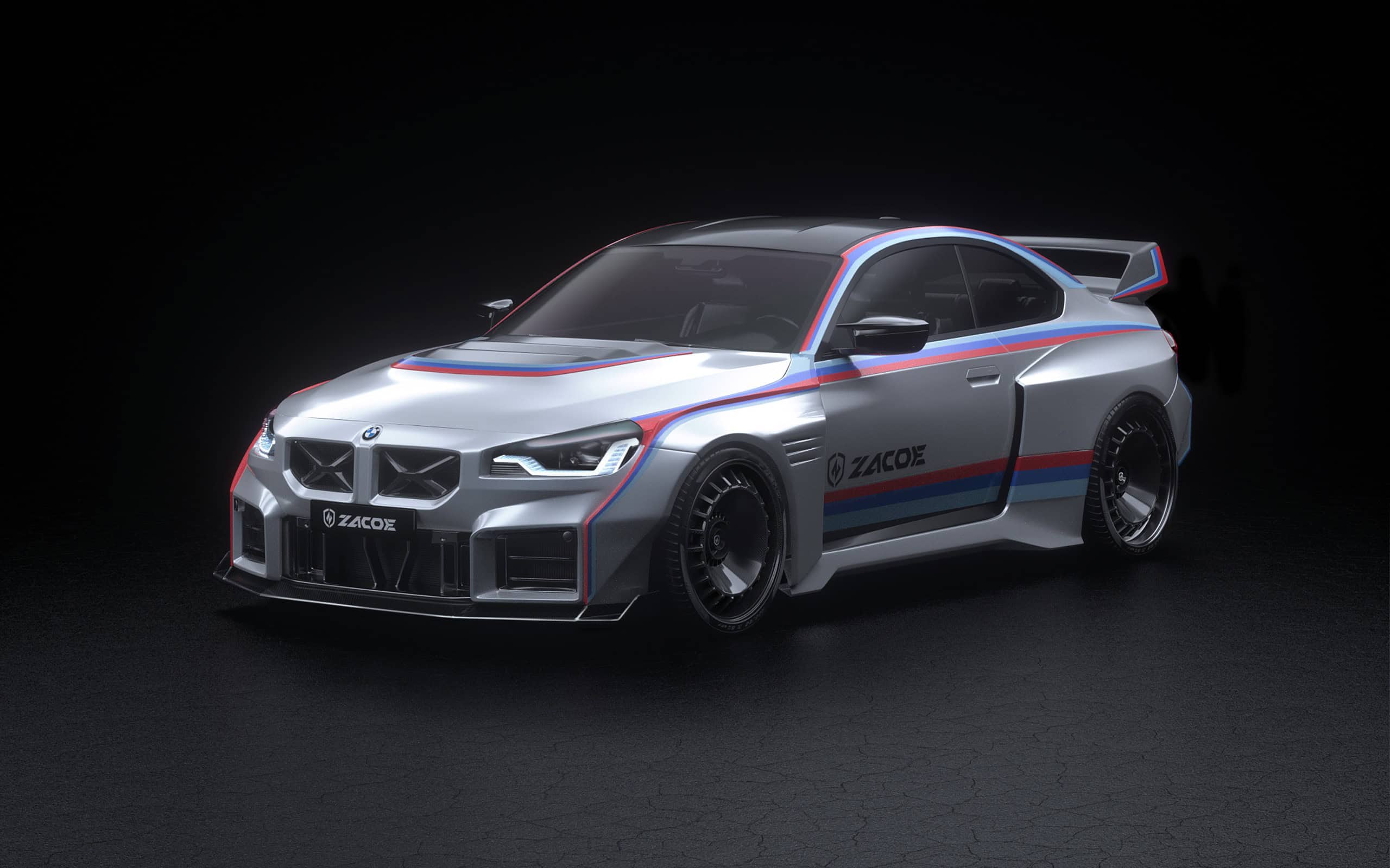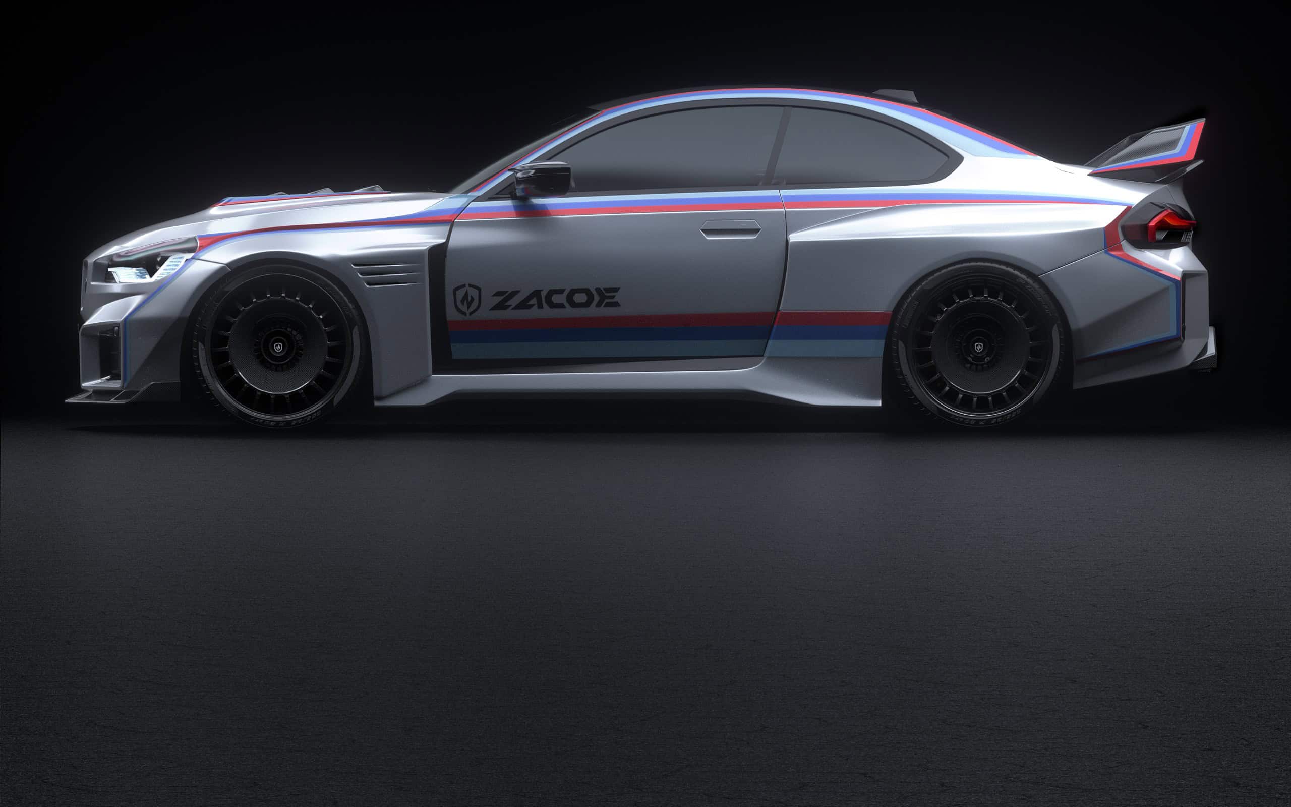 Zacoe’s tuning kits for BMWs are few and far between, but whenever one comes along, it immediately catches our attention. Such is the case here with this wild project based on the M2 G87. The relatively compact sports coupe muscles up with a wide body kit reminiscent of an iconic race car. The aftermarket shop took inspiration from the M3 E30 DTM, which made its debut back in 1987.