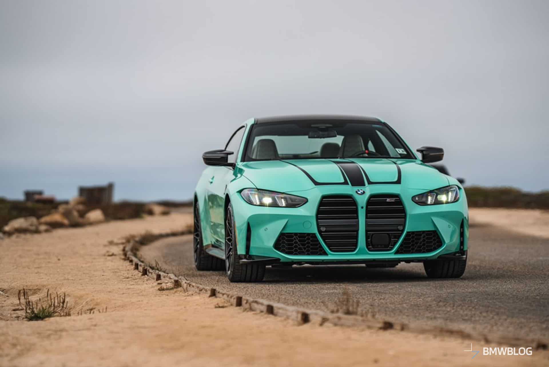 Codenamed W97, Mint Green is a striking Individual color that makes any BMW grab all the attention. As if that wasn’t enough, this M4 also happens to have black stripes with an M logo. This option alone costs an additional $1,800. It’s been available in Europe since mid-2022 but it took a while for the decals to become available in the US. If you don’t like black, a red version is also available.