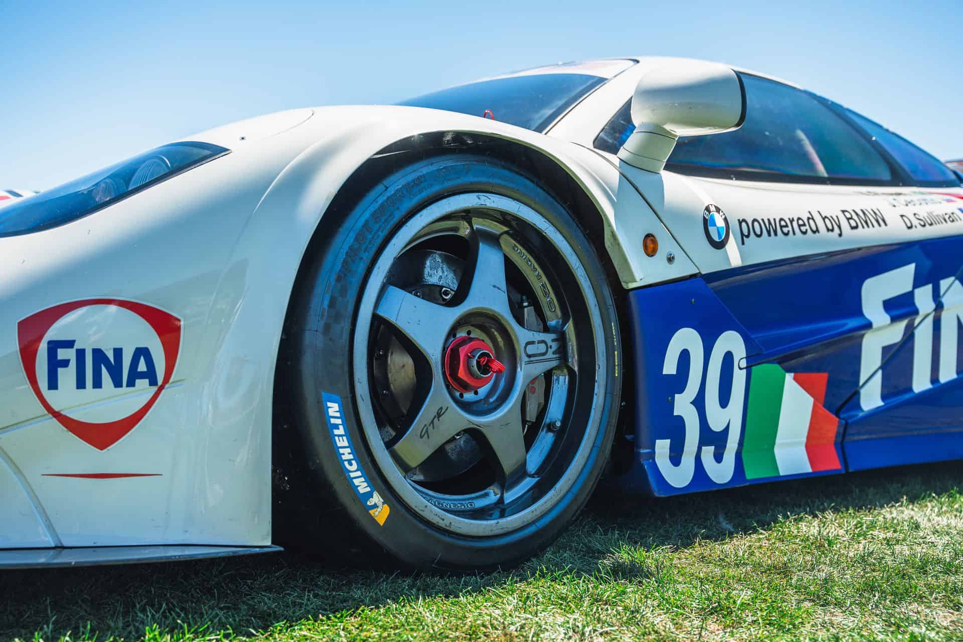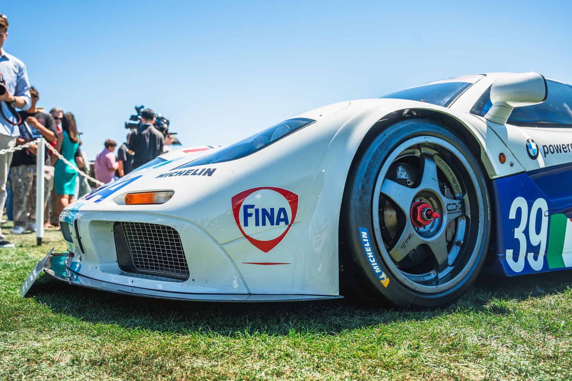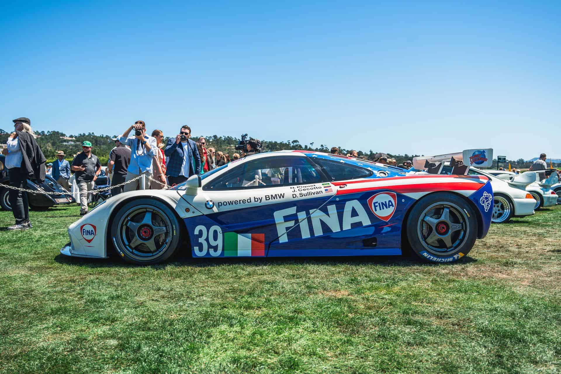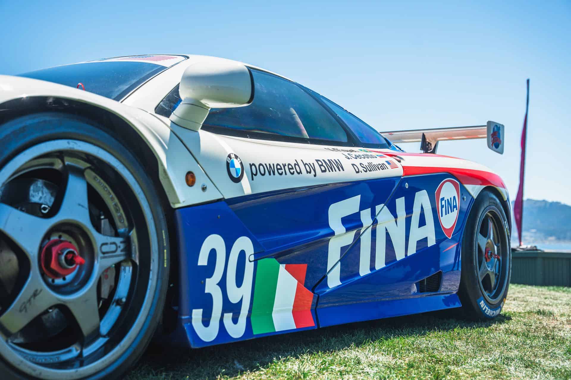 Sometimes called the FINA car, McLaren F1 chassis #17R is widely recognizable, and it’s the one that showed up at Pebble Beach. It’s one of a trio originally purchased by BMW Motorsport – chassis 16R through 18R. After pre-qualifying runs at Le Mans, the car ran at Silverstone in 1996, where it finished fourth overall. The car’s final race was the full Le Mans 24 Hours. Nelson Piquet, Johnny Cecotto, and Danny Sullivan raced it with BMW’s Italian race partner, Bigazzi Team SRL, and it finished in eighth place and sixth in-class behind three other McLaren F1 GTRs.
