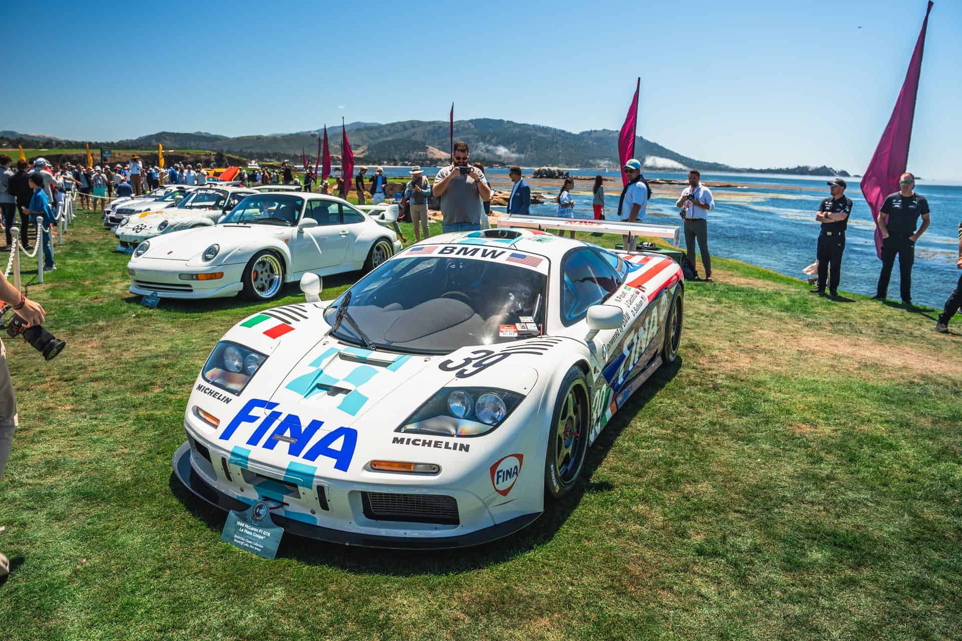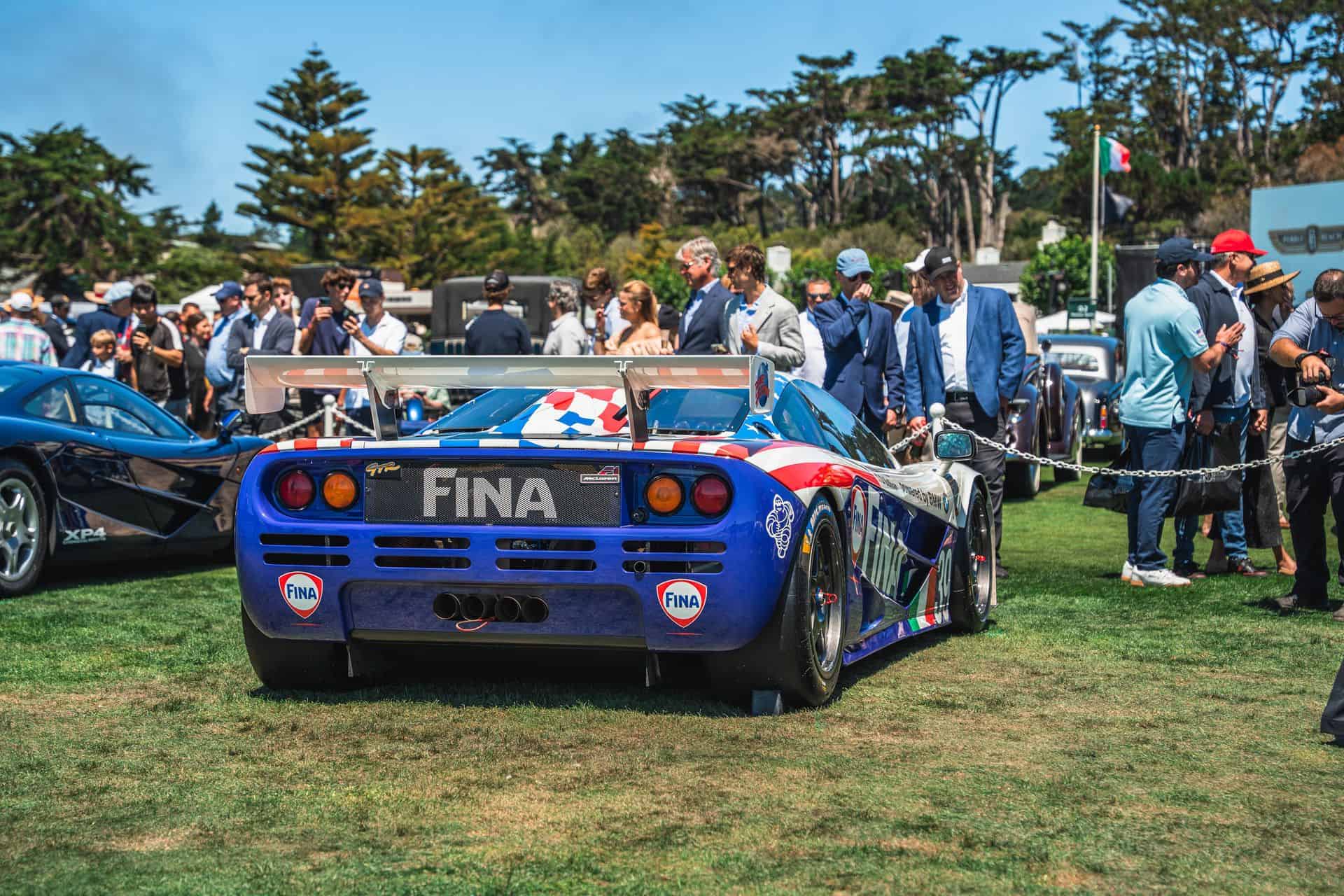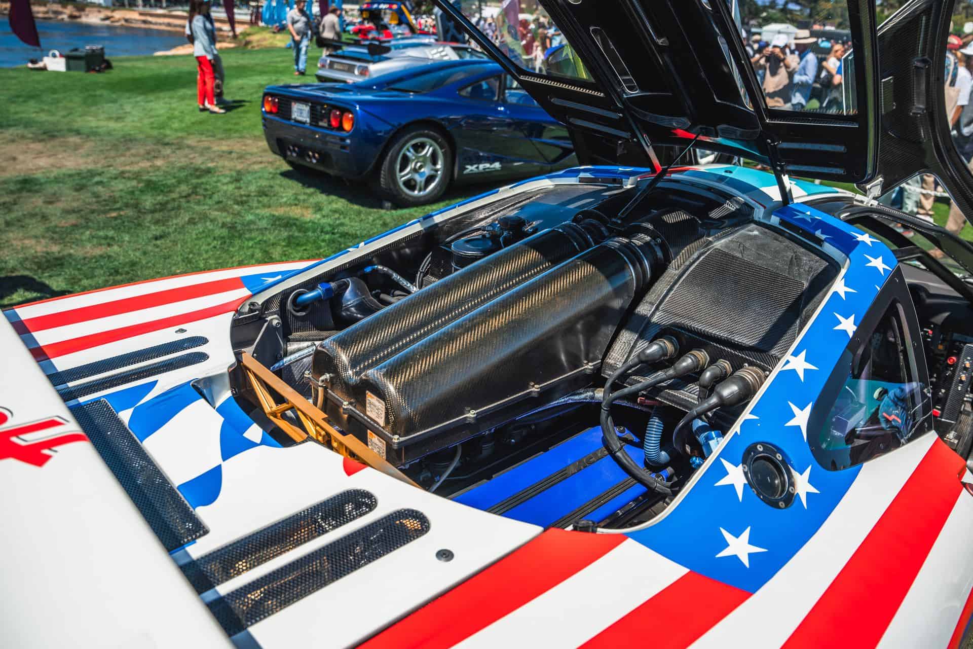 Sometimes called the FINA car, McLaren F1 chassis #17R is widely recognizable, and it’s the one that showed up at Pebble Beach. It’s one of a trio originally purchased by BMW Motorsport – chassis 16R through 18R. After pre-qualifying runs at Le Mans, the car ran at Silverstone in 1996, where it finished fourth overall. The car’s final race was the full Le Mans 24 Hours. Nelson Piquet, Johnny Cecotto, and Danny Sullivan raced it with BMW’s Italian race partner, Bigazzi Team SRL, and it finished in eighth place and sixth in-class behind three other McLaren F1 GTRs.