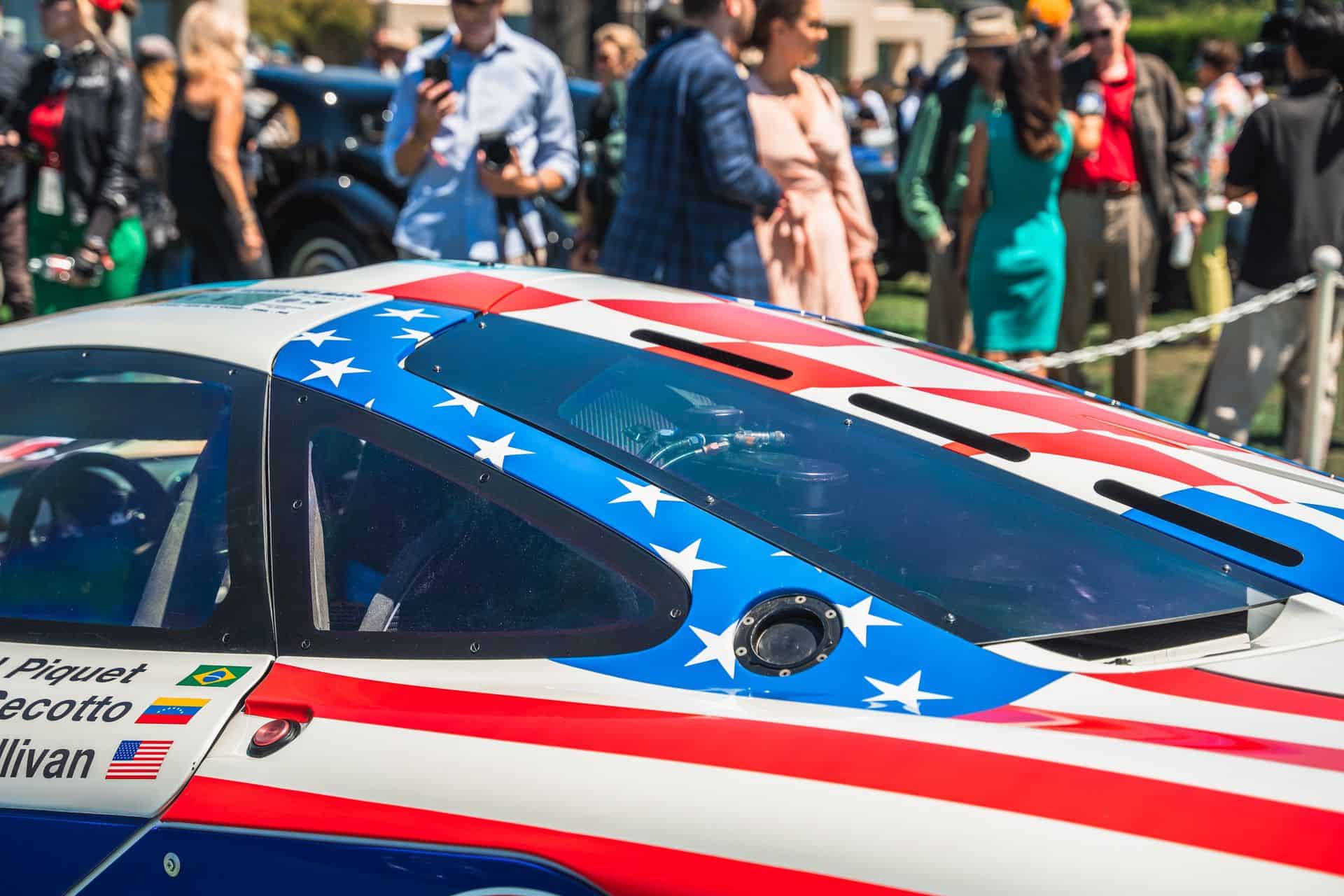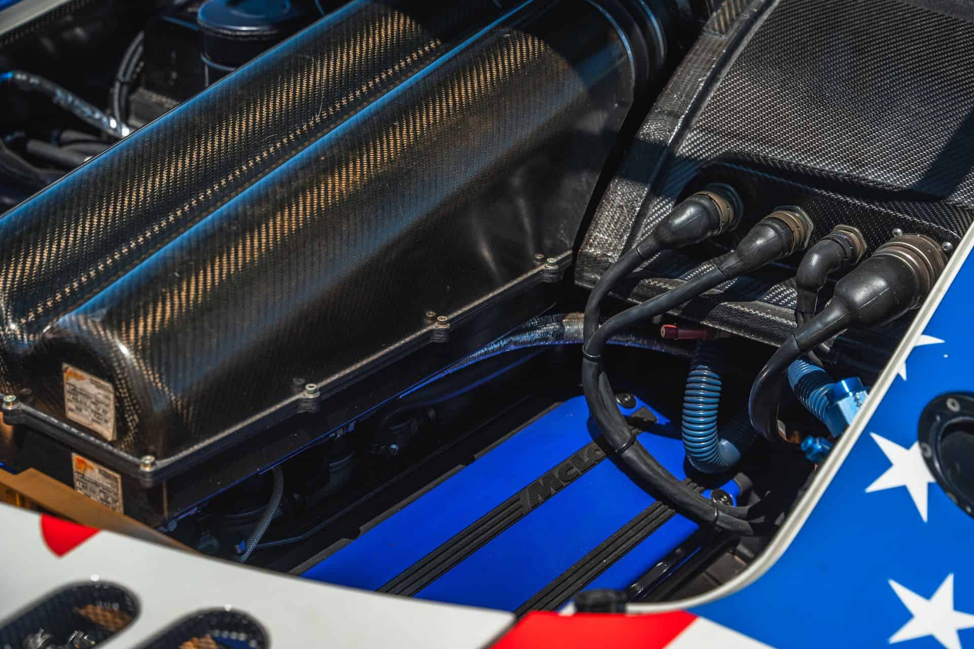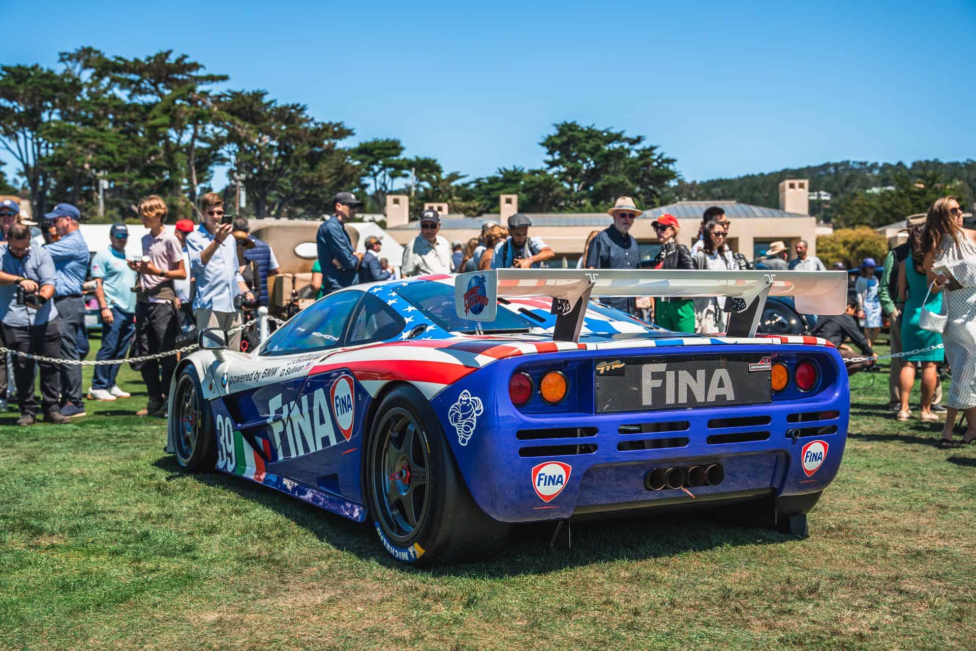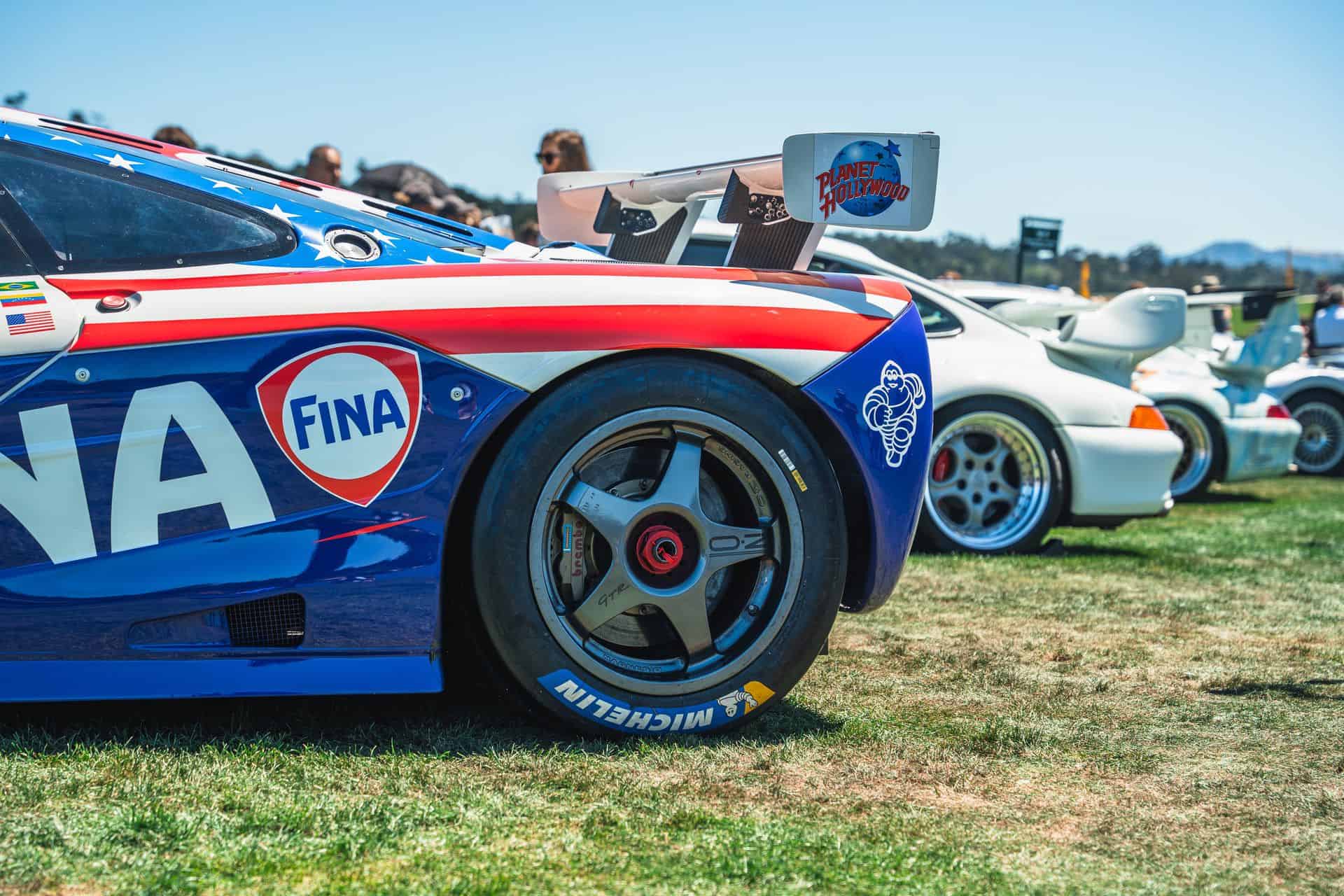 Sometimes called the FINA car, McLaren F1 chassis #17R is widely recognizable, and it’s the one that showed up at Pebble Beach. It’s one of a trio originally purchased by BMW Motorsport – chassis 16R through 18R. After pre-qualifying runs at Le Mans, the car ran at Silverstone in 1996, where it finished fourth overall. The car’s final race was the full Le Mans 24 Hours. Nelson Piquet, Johnny Cecotto, and Danny Sullivan raced it with BMW’s Italian race partner, Bigazzi Team SRL, and it finished in eighth place and sixth in-class behind three other McLaren F1 GTRs.