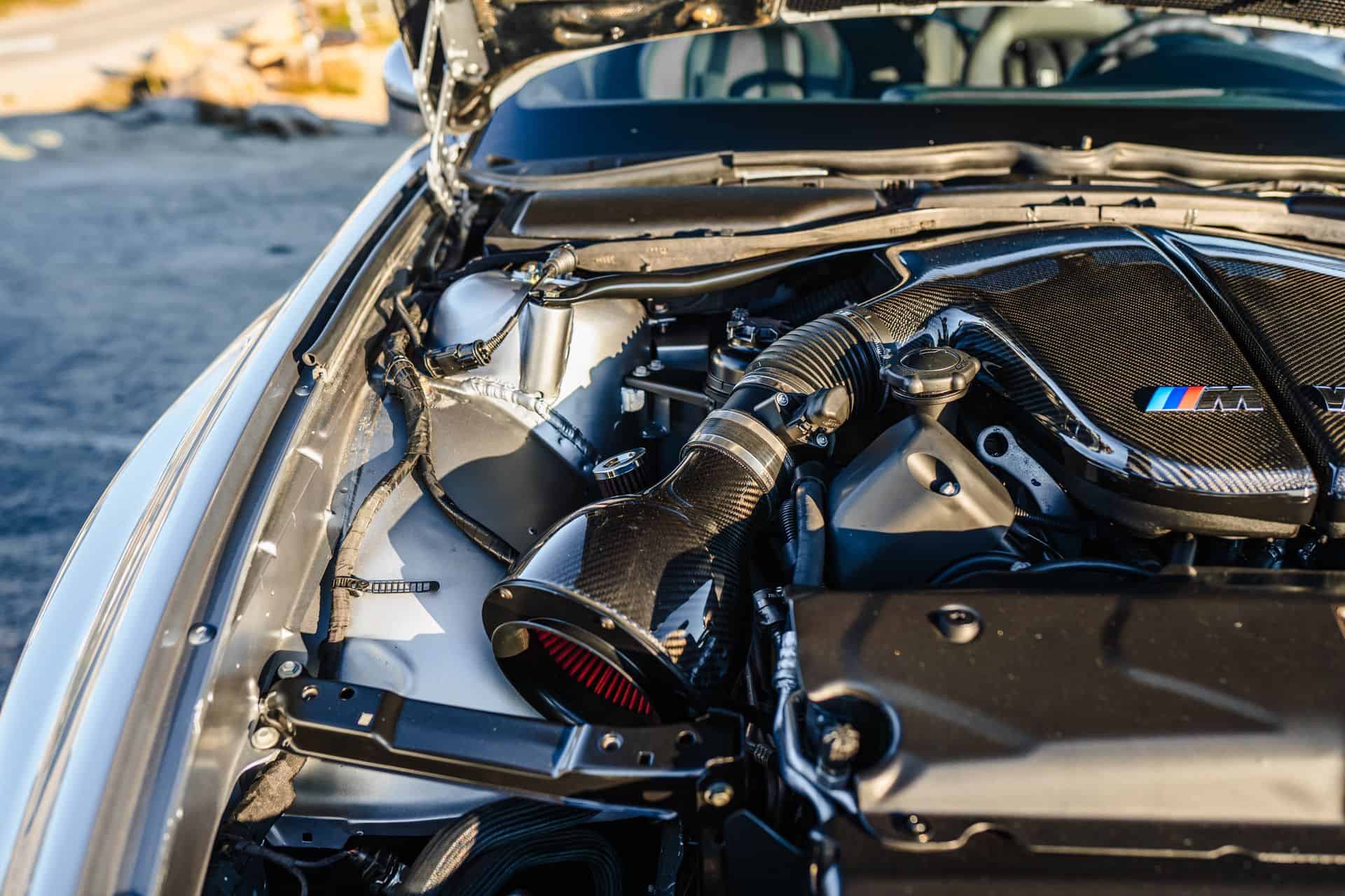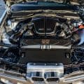 Let’s start with arguably the most exciting part of the custom-built 8 Series. The factory powerplant has been ejected in favor of a 5.0-liter V10 lifted from an E60 M5. The S85 engine has been stroked to 5.8 liters by none other than CarBahn. In case you forgot, that’s the Euro-centric speed shop founded by Steve Dinan, BMW tuning wunderkind. The engine touts Eventuri air intakes, imposing carbon fiber funnels extending from each side of the V10’s manifold. It’s still RWD, and the engine pairs up to six-speed manual. Power isn’t disclosed, but Carbahn’s race-tuned 5.8-liter produced 720 horsepower on a dyno circa 2018, according to their Facebook page. The tuner quotes 620 horsepower for the street version.