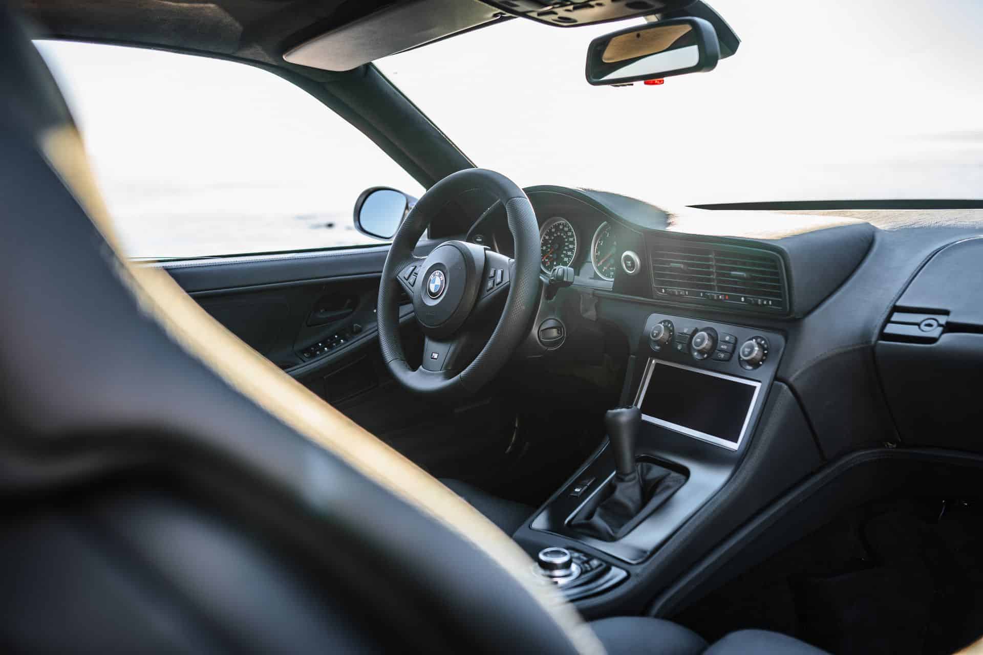 The 858 CSL dons black Nappa leather inside, with “vader” seats lifted from an E36 M3. Most of the cockpit’s switchgear and instrumentation is yoinked straight from the E60 M5, and the car even features a push-button start and iDrive screen in the dash. Tuner shop PSI handled the manual swap, but they also ensured the car retained BMW OBD2, CAN, and MOSTBUS functionality. The car even has functional DSC and ABS. In fact, you could theoretically roll up to any BMW dealership and get the vehicle serviced like a normal production vehicle. REYN says that all the regular E60 modules and diagnostics are maintained as factory. The best part is that, just like in the original interior, everything is tilted clearly towards the driver.