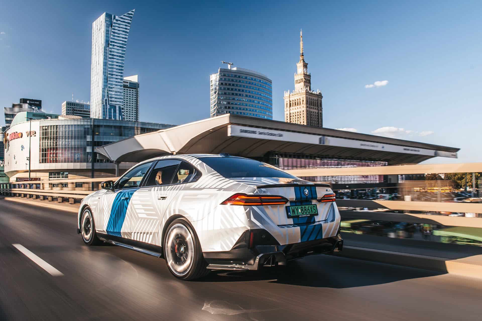 Details about the body wrap are shrouded in mystery, so we don’t know whether it was created by BMW. Chances are a local Polish company was tasked to create a special finish for the i5 M60. Either way, it looks great combined with the carbon fiber parts available from the M Performance Parts catalog. These goodies are also compatible with the regular 5 Series since the cars largely share the same body.