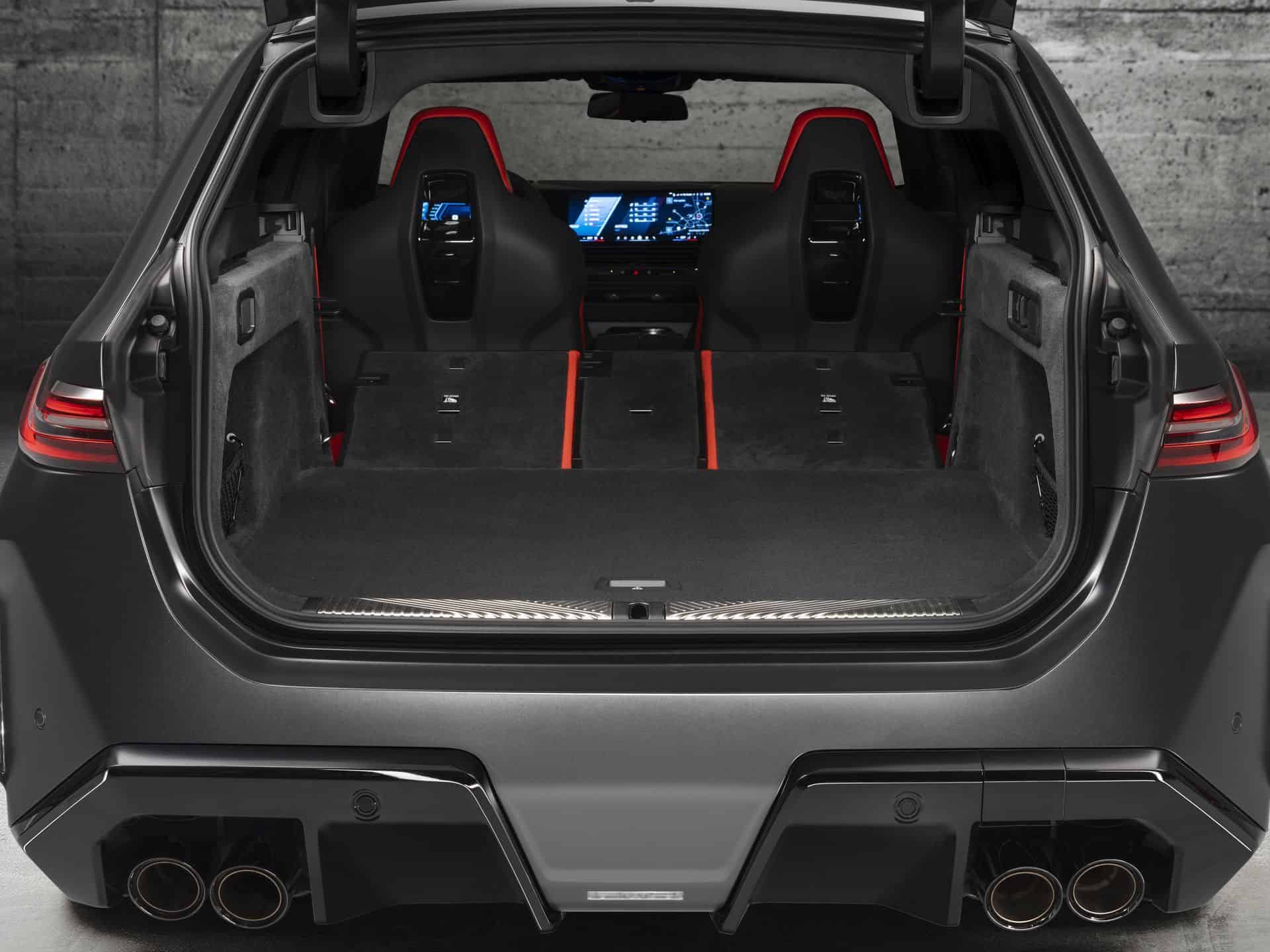 The whole allure of the BMW M5 Touring is that it’s supposed to be more (or at least as) practical as an SUV without compromising dynamics. We’ll address the latter half of that statement later. For now, let’s focus on just how much more practical the M5 Touring is compared to the X5 M. BMW says that the X5 M has 72.3 cubic feet of cargo space. The M5 Touring? Preliminary estimates from the automaker say it’s down to just 57.6 cubic feet.