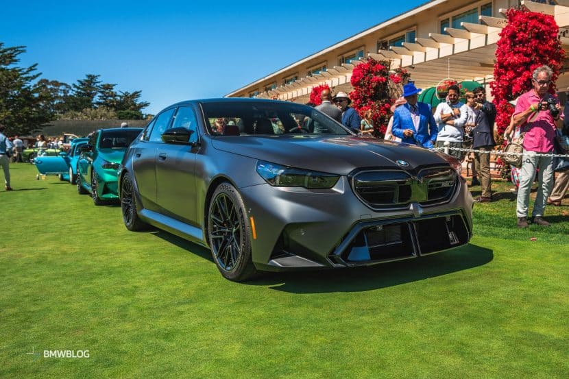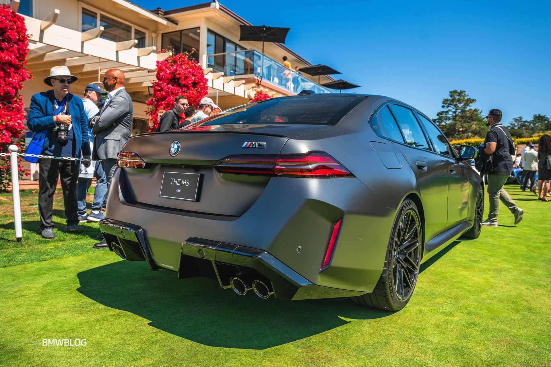BMW is keen on showing off the seventh-generation M5 in Frozen Deep Grey, a matte Individual color. It also features the optional carbon-ceramic brakes with gold calipers providing a contrasting effect. Other goodies include the carbon side mirrors and roof. On the more practical M5 Touring G99, you can only get the mirrors in carbon.