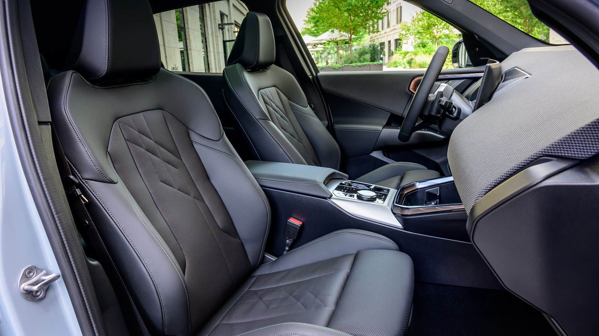 The Interaction Bar we’re used to seeing on bigger and fancier BMWs has now trickled down to the X3. You’ll also find it in the long-wheelbase model built and sold exclusively in China. Another novelty – aside from the obvious iDrive 9 dual-screen setup – is represented by the touch controls next to the door handles. Positioned above a big X3 logo, those buttons provide quick access to the seat memory, the lock/unlock function, and they also facilitate the adjustments of the air vents.