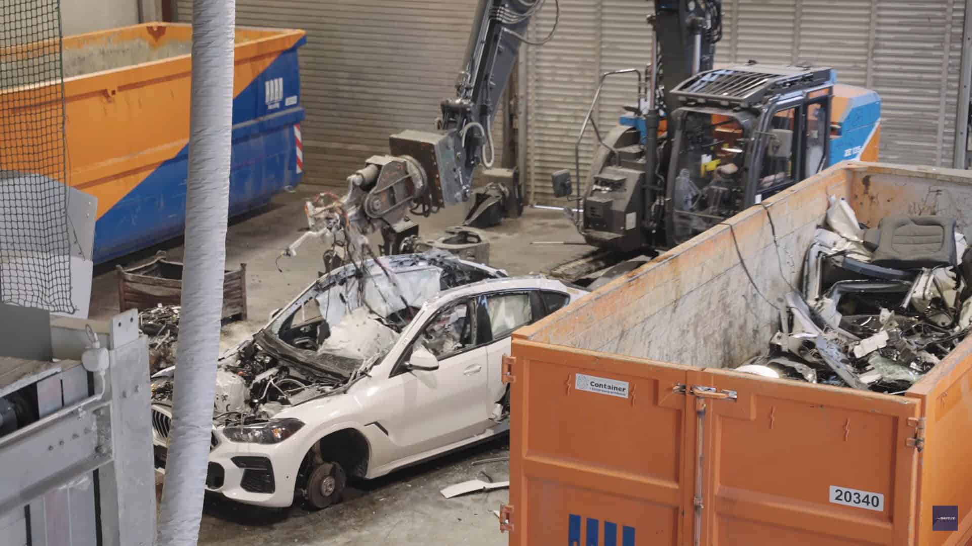 Seeing the coupe-SUV being ripped apart by a dedicated electric excavator is rather brutal but it’s all for a good reason. BMW is extracting the engine and gearbox from this X6 to retrieve precious aluminum, which will be repurposed. In addition, the wiring harness is removed to collect the copper and use it elsewhere.