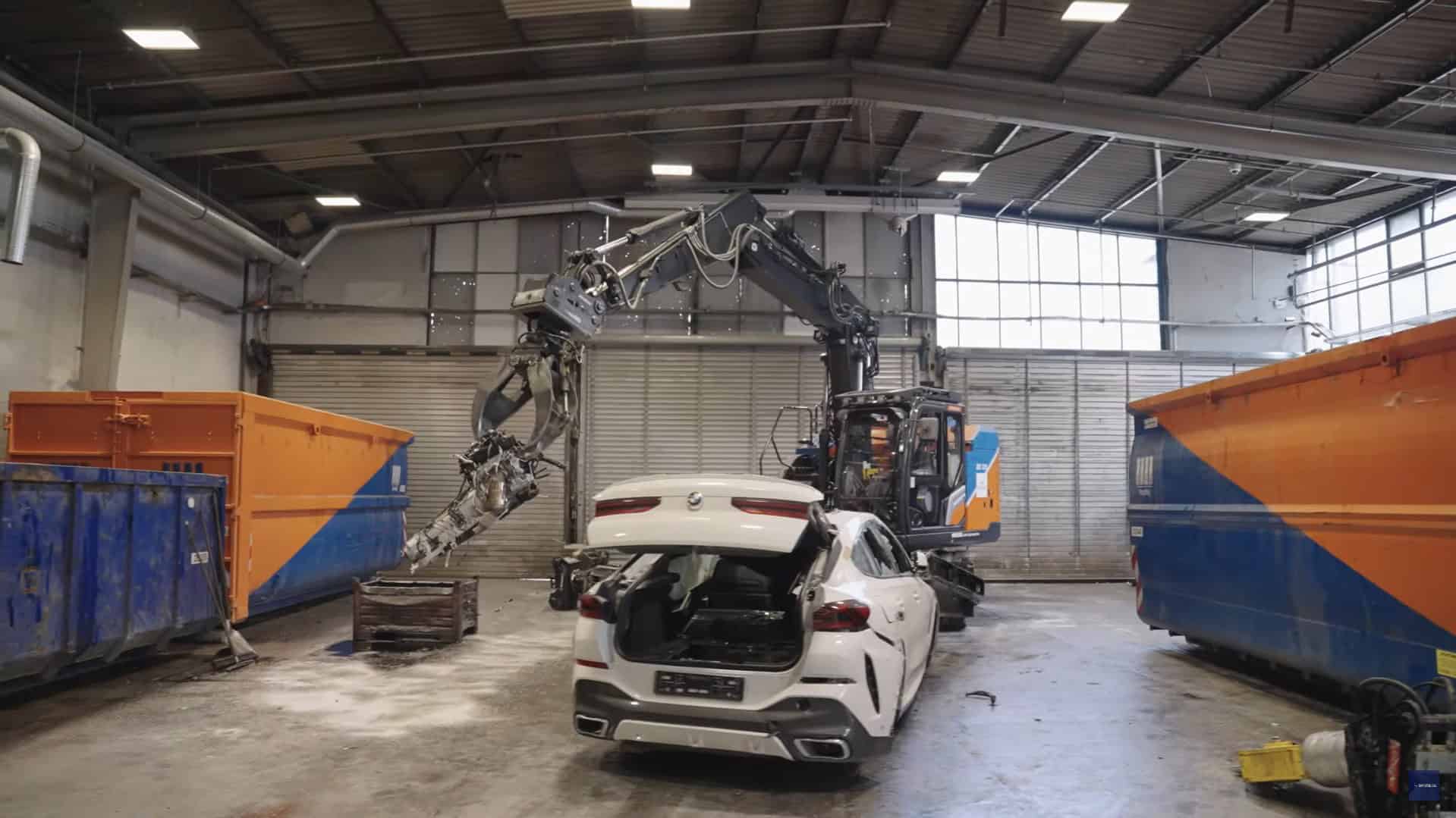 Seeing the coupe-SUV being ripped apart by a dedicated electric excavator is rather brutal but it’s all for a good reason. BMW is extracting the engine and gearbox from this X6 to retrieve precious aluminum, which will be repurposed. In addition, the wiring harness is removed to collect the copper and use it elsewhere.