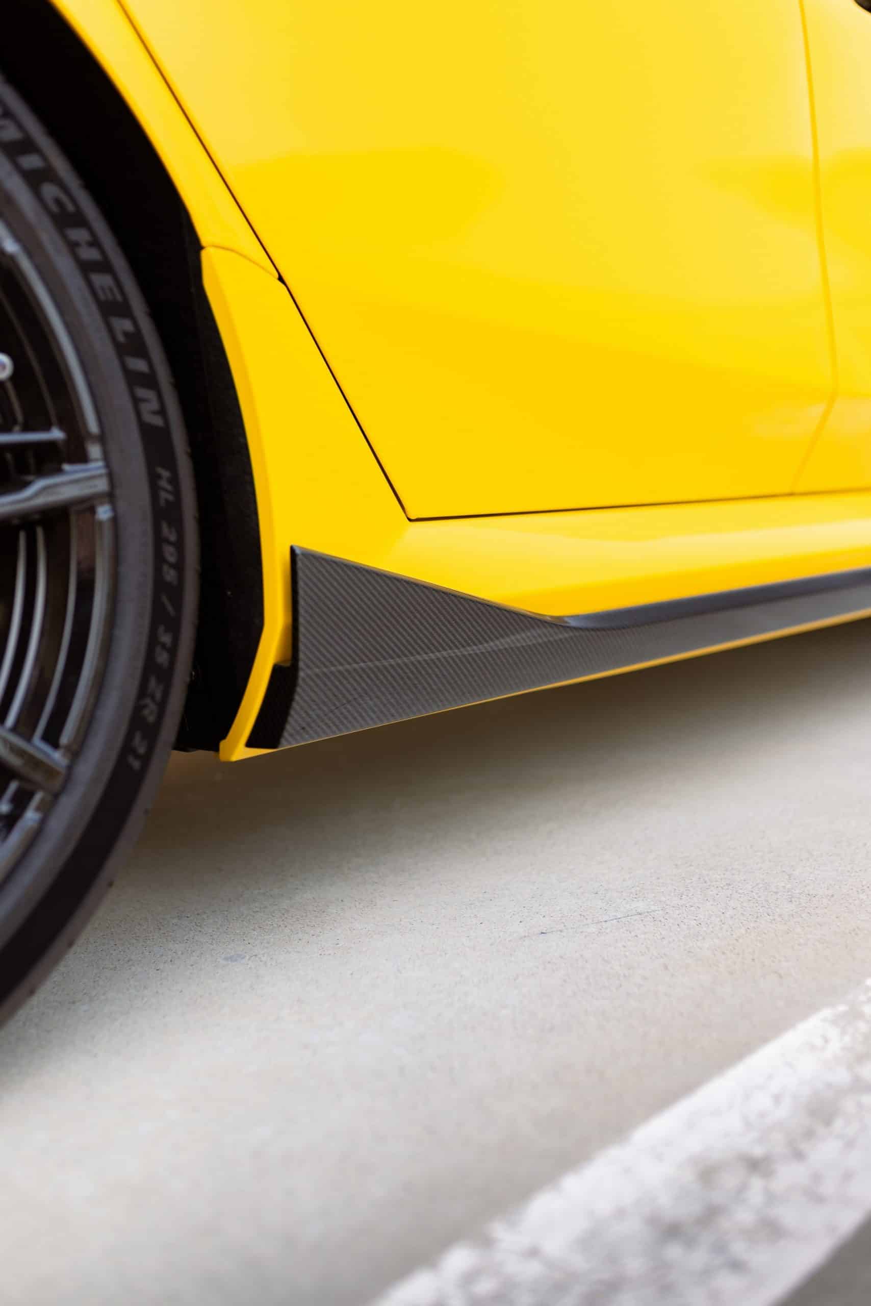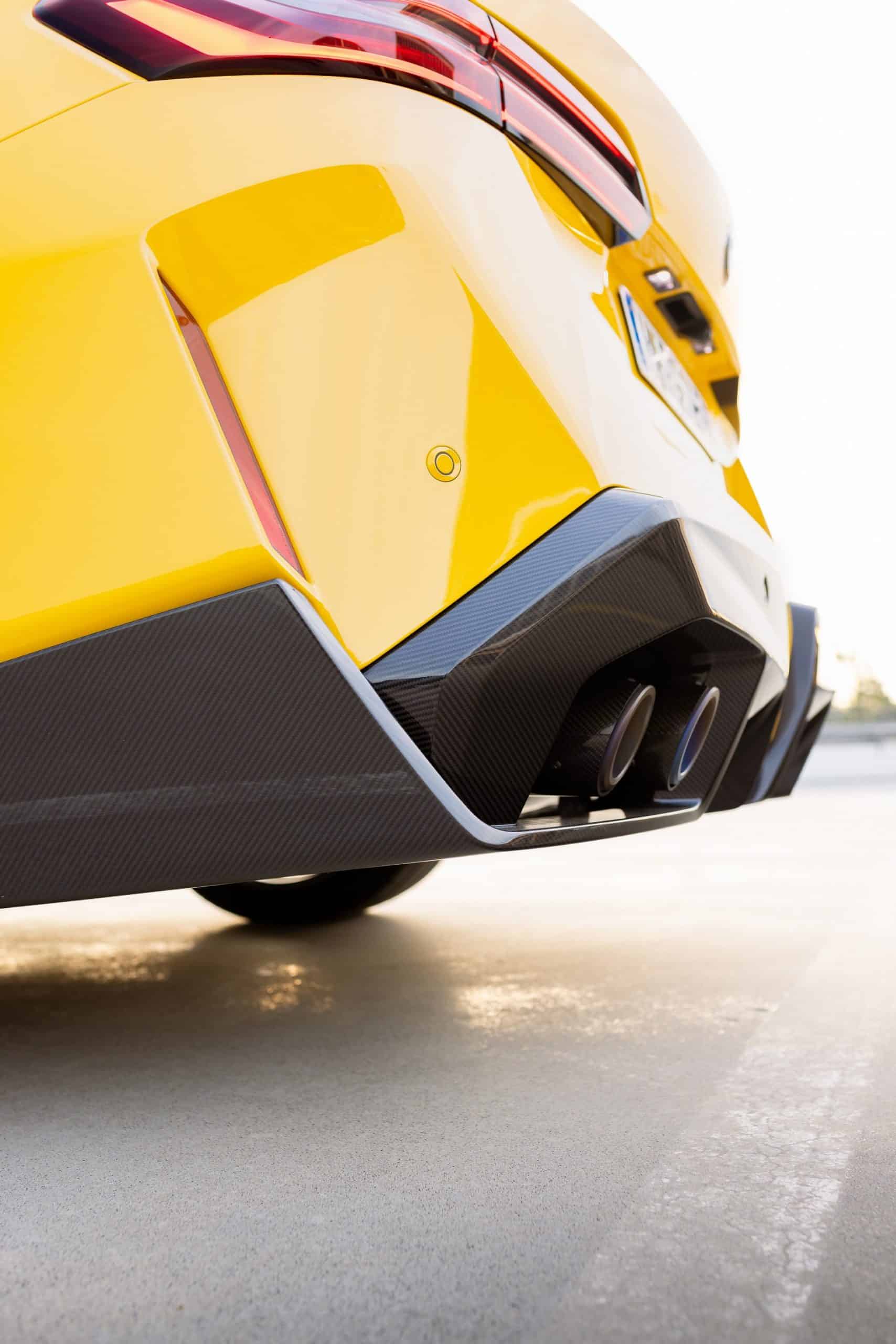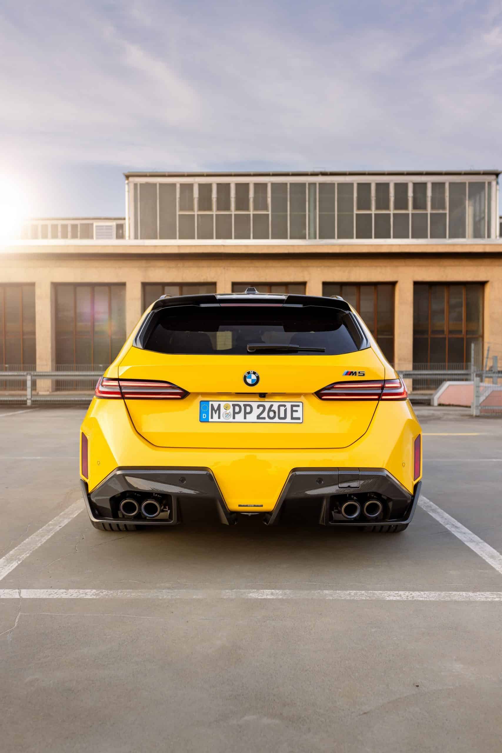 Dig deeper into your wallet and BMW will happily install those sill extensions. They’re also finished in carbon fiber and visually pop against this striking yellow paint job. The side mirror caps in carbon are not an upgrade from the M Performance Parts catalog since you can find this option in the regular configurator. As previously reported, the M5 wagon won’t be available with a carbon roof. However, seeing as how tuners have made one for the smaller M3 Touring, we won’t be too surprised if the G99 will get the same treatment.