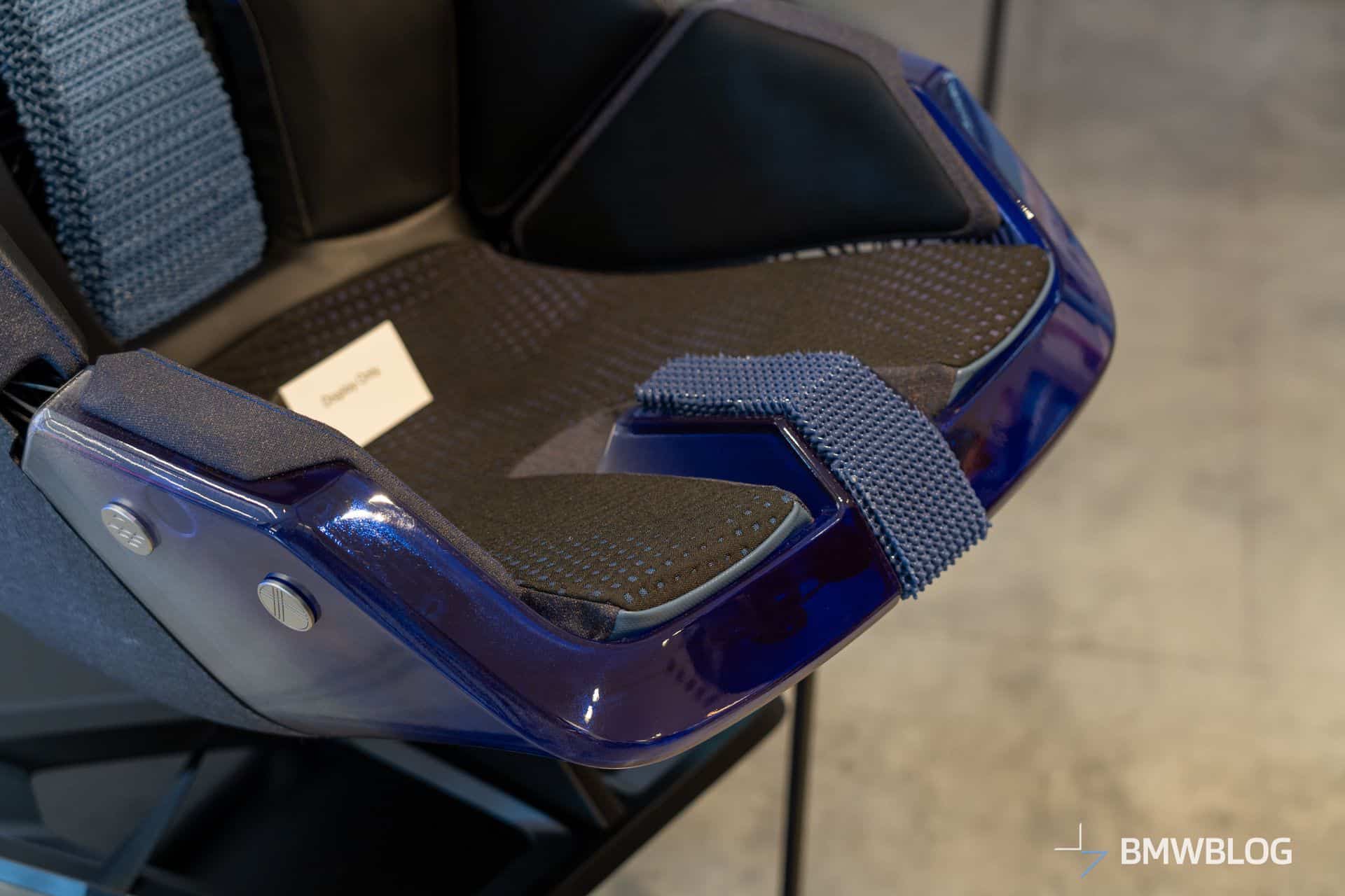 As with the latest BMW interiors and upcoming Neue Klasse EVs, focus has been put on minimalism. In fact, you can even see the seat structure. The support structures have been completely eliminated to save weight and lower the carbon footprint furthermore. The seat uses a combination of natural fibers, fiber composites, leather alternatives, and algae-based polymers.