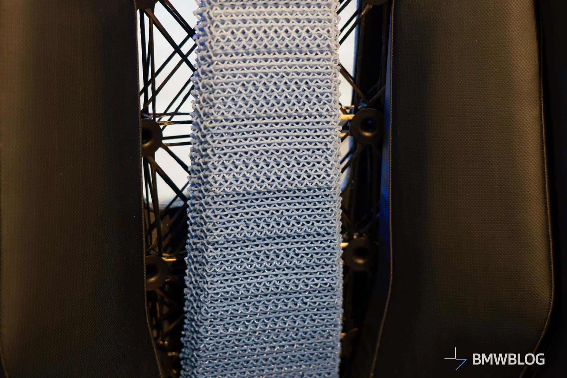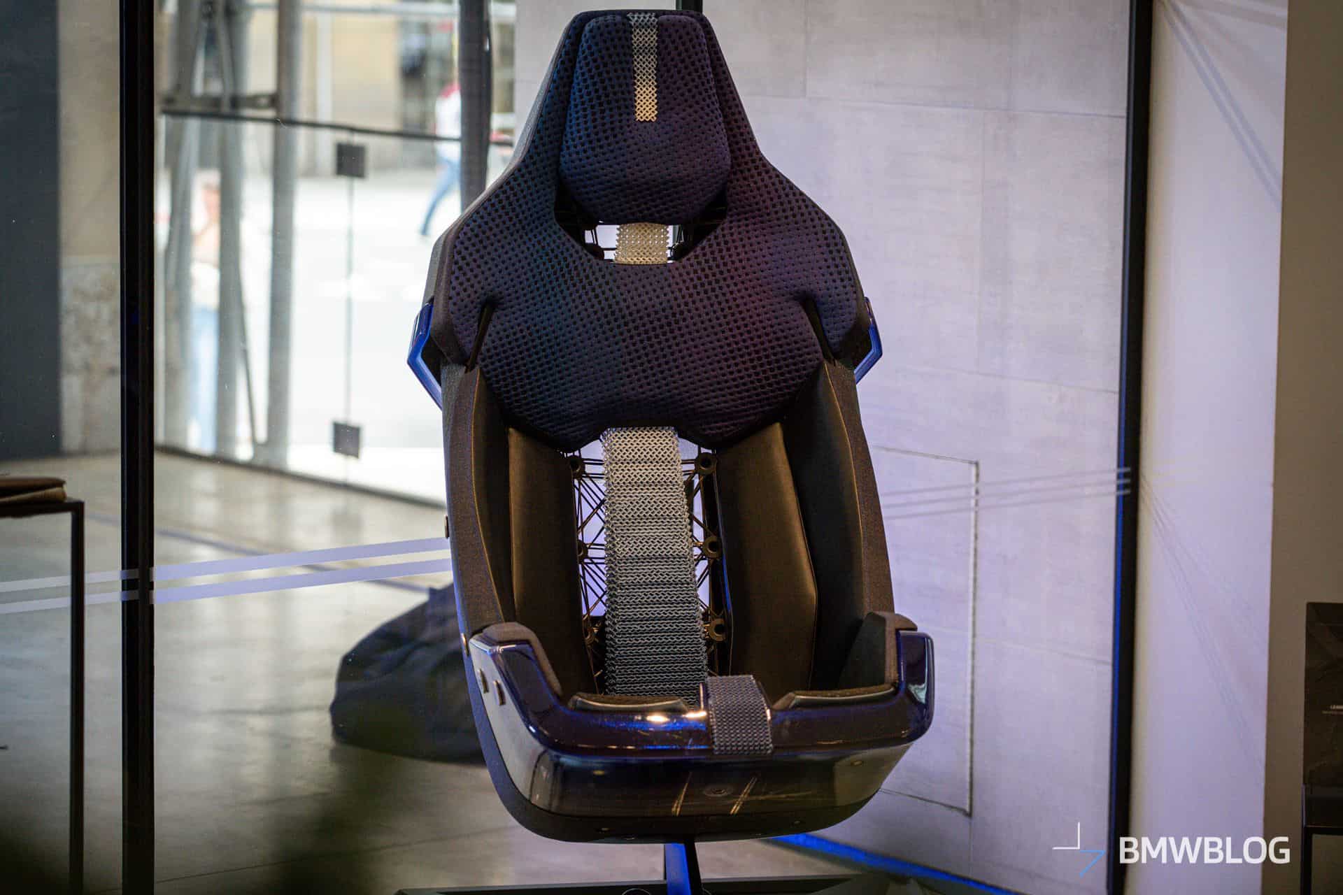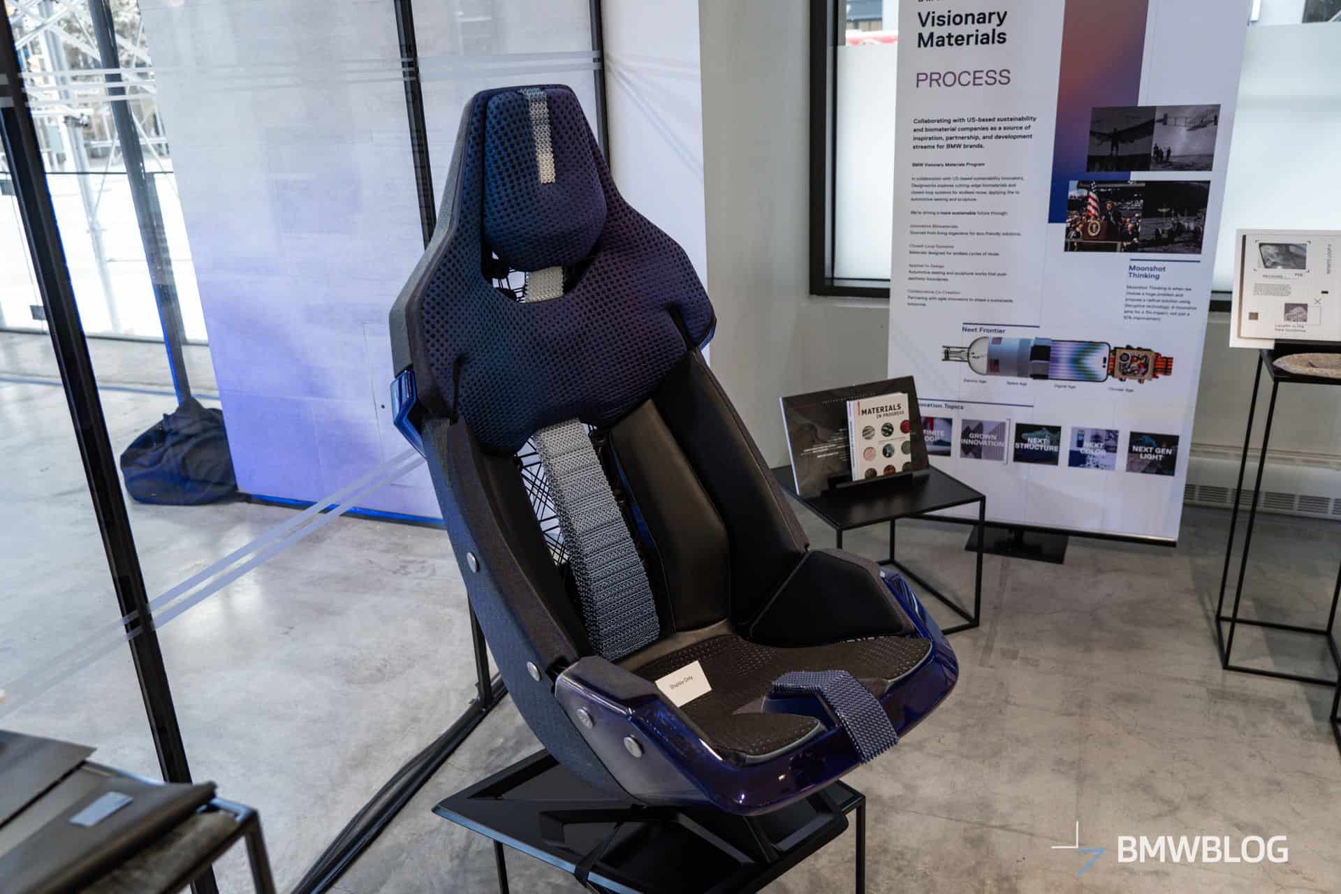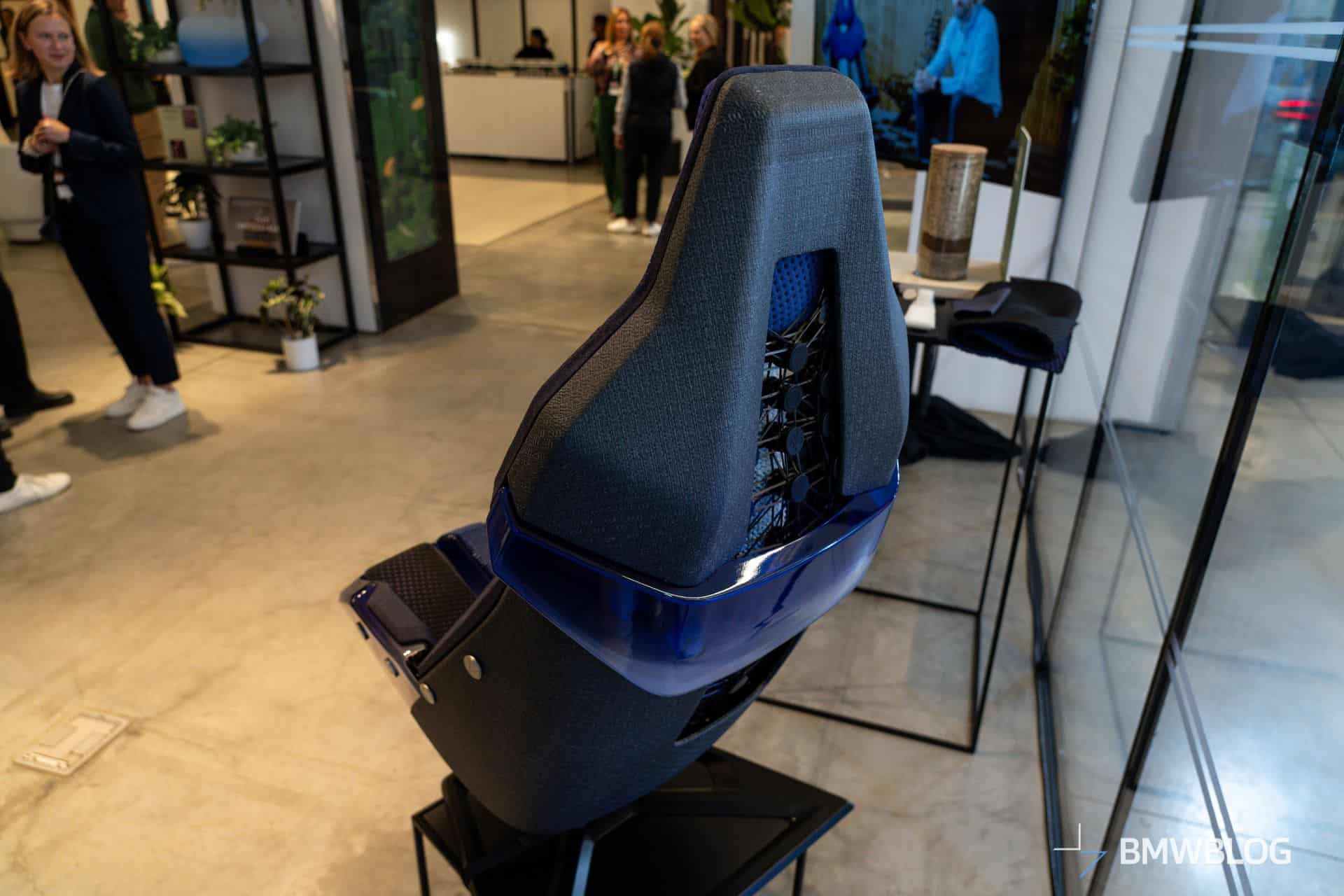 The eco-friendly seat is part of BMW’s exhibit at Moonlight Studios during the New York Climate Week (September 23-25). We were allowed to check out the special seat that uses plant-based materials. It also features secondary raw materials, therefore making it highly recyclable at the end of the car’s life. To reduce weight and diminish the seat’s CO2 footprint, fewer individual parts were used. Speaking of weight, this prototype seat only weighs 1.7 kilograms (3.7 lbs).