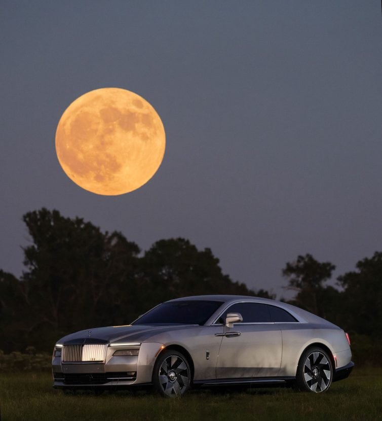 When Rolls-Royce announces a special car, you can almost always be certain that it’s a one-off affair. Such is the case here with a Spectre commissioned by a “significant client” from the United States. Aren’t all customers significant? Anyway, this stately electric coupe has now spawned a unique Lunaflair version with a spectacular paint job.