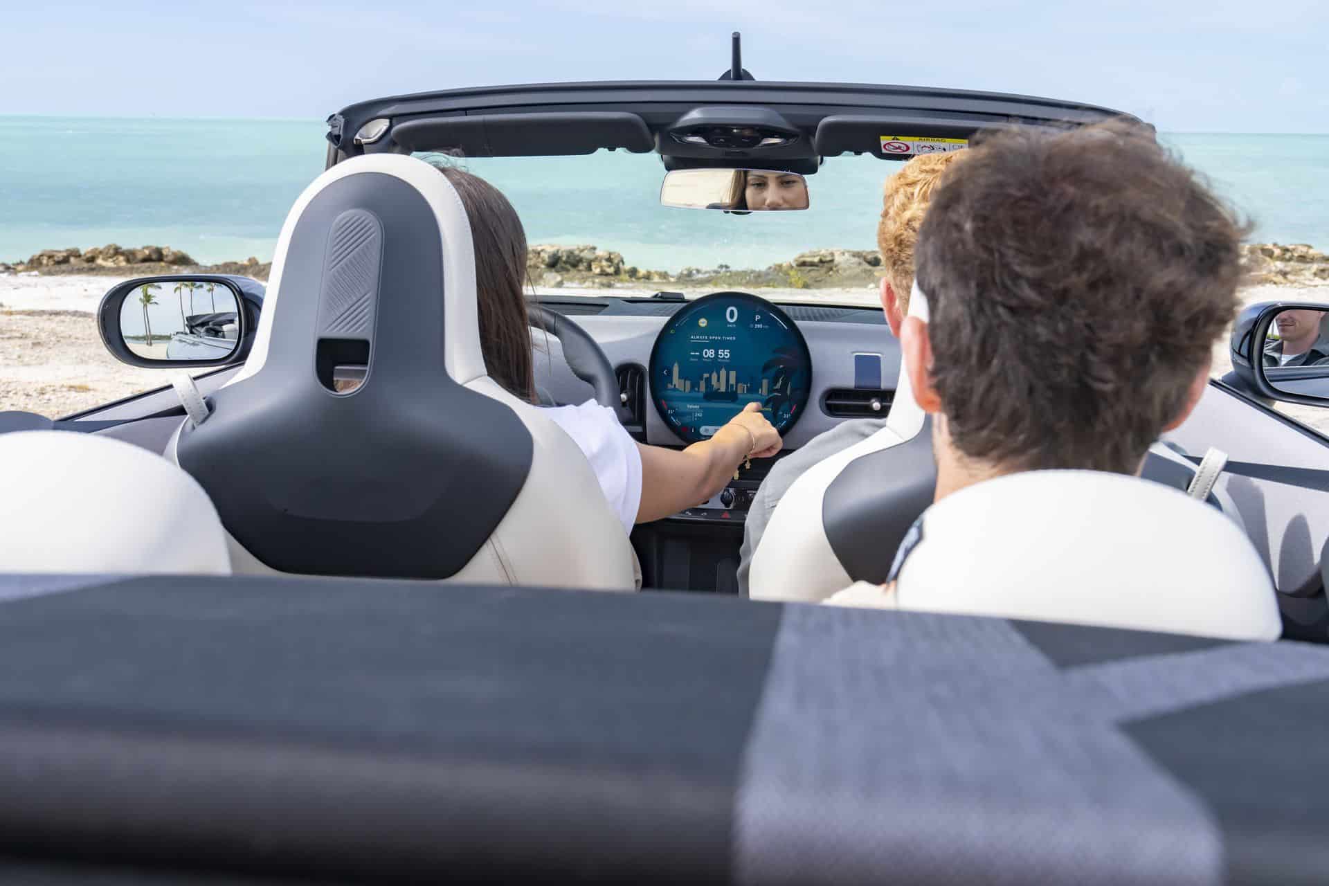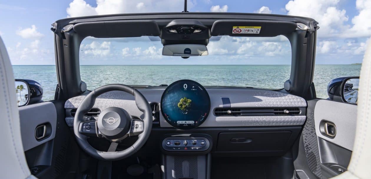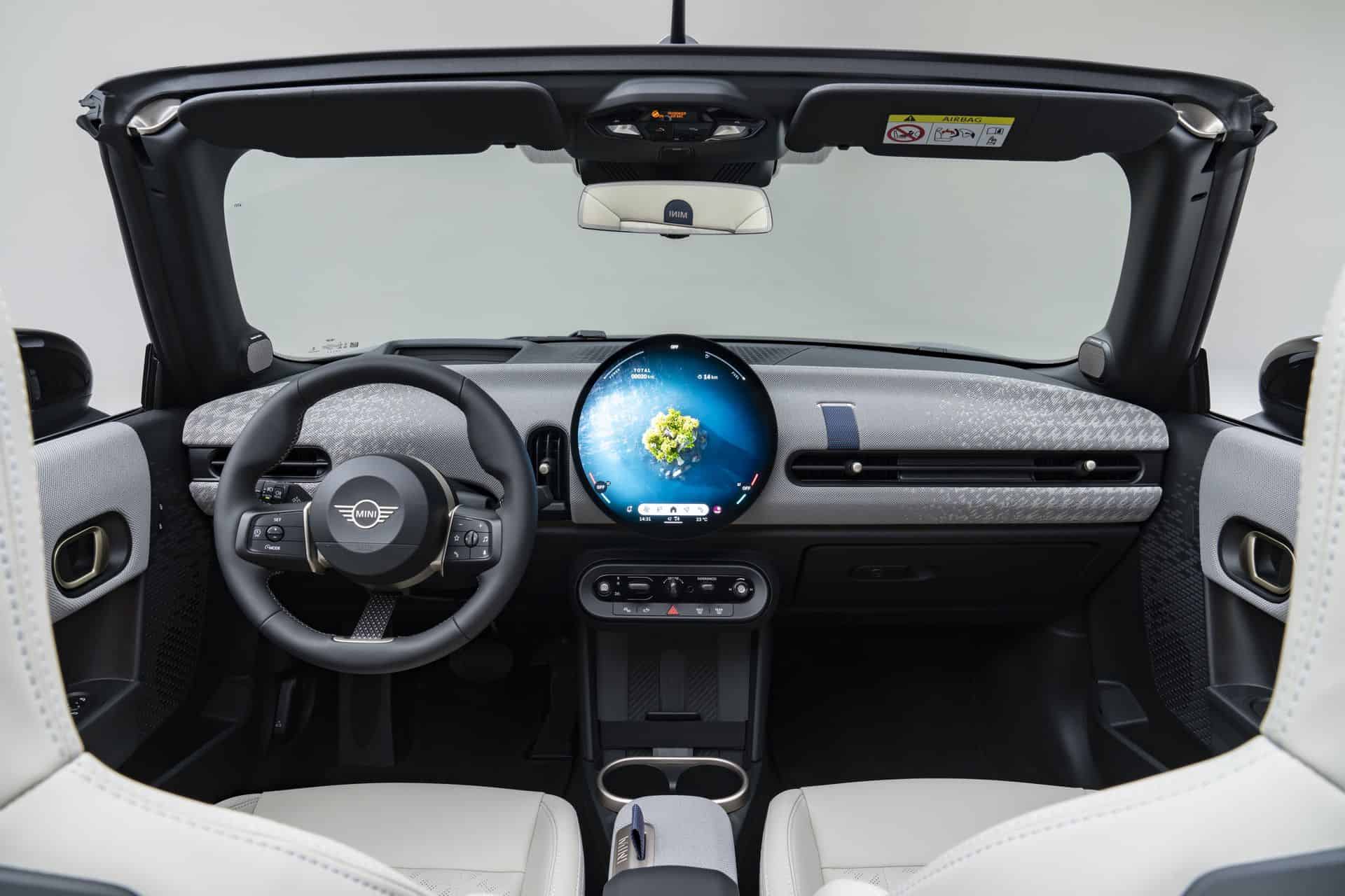 If you’ve seen the latest MINIs, the interior should look instantly familiar. The minimalist dashboard is dominated by the same OLED round display with a 9.4-inch diagonal. The digital instrument cluster is gone but at least there’s an optional head-up display. A few physical controls have survived, located below the display.