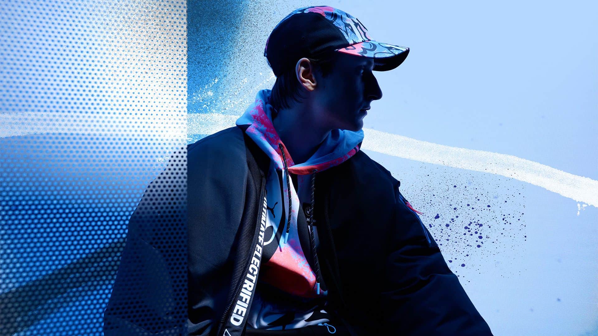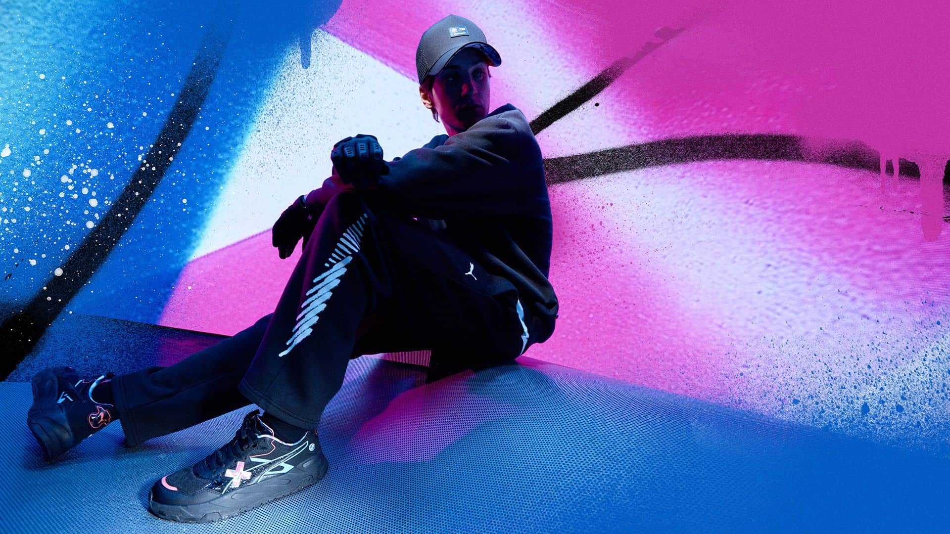 The lineup includes crewneck sweatshirts, t-shirts, and sweatpants, all designed to make a statement with vibrant colors and street art graphics. Footwear in the collection is equally distinctive, combining PUMA’s signature comfort with neon details and graffiti motifs, ensuring that each sneaker turns heads on and off the track. Completing the collection are a series of accessories, including trucker caps that give fans a chance to showcase their passion for motorsport and urban art culture alike.