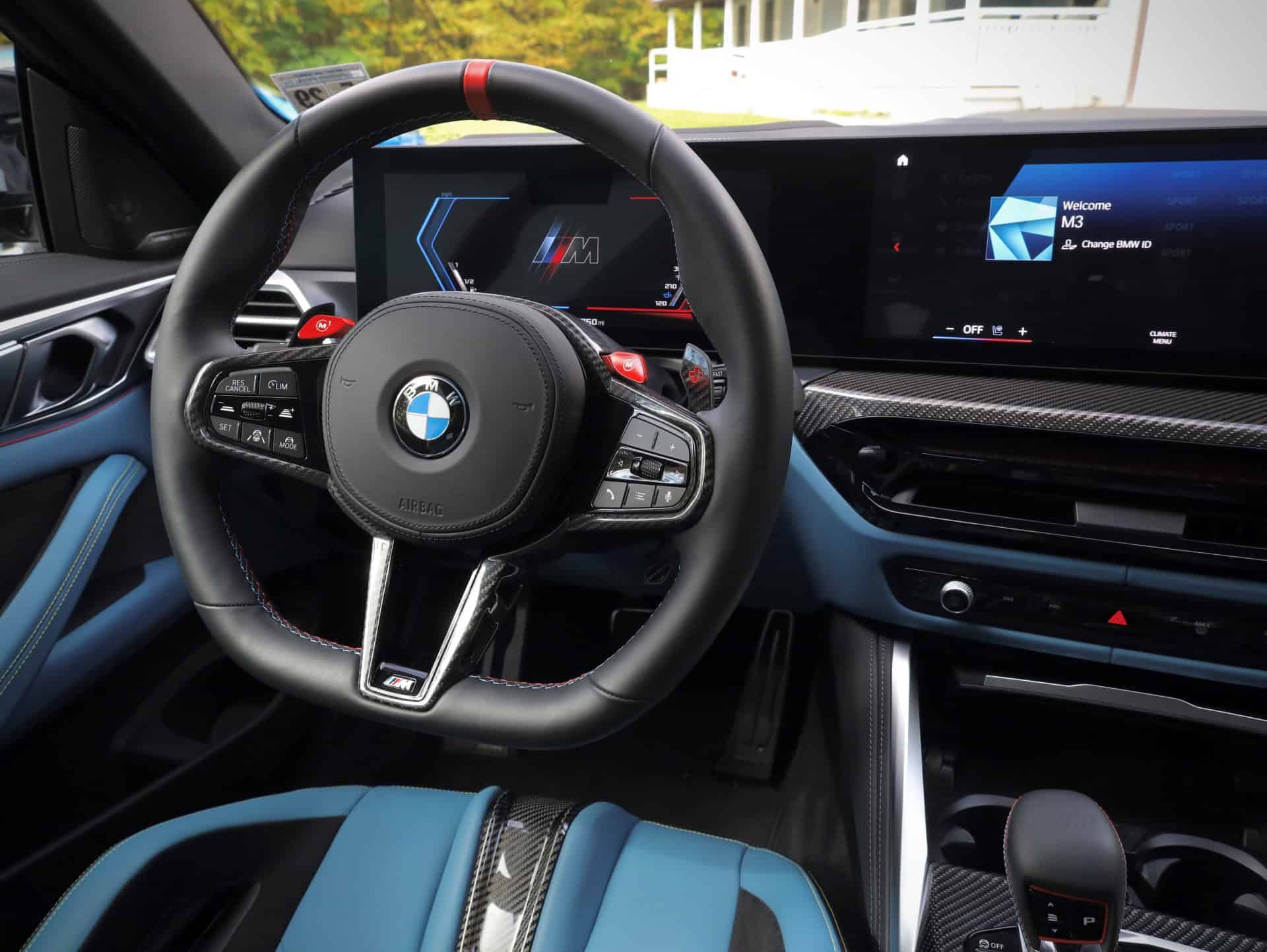 Our test car is a 2025 BMW M4 Competition. So, the S58 3.0 liter engine delivers 503 horsepower, 479 pound-feet of torque, and rear-wheel drive with an eight-speed automatic transmission. Power is effortless, and the chassis has more capability than most drivers will know what to do with, especially on the street. Dial down the traction control and the car is cooperative but potentially more eager than its pilot to commit to oversteer. The extra power in the xDrive models – 523 instead of 503 in RWD variants – is probably nice, but I’m not sure you’d really notice any difference. The rear-driven version leaves nothing to be desired when it comes to acceleration.