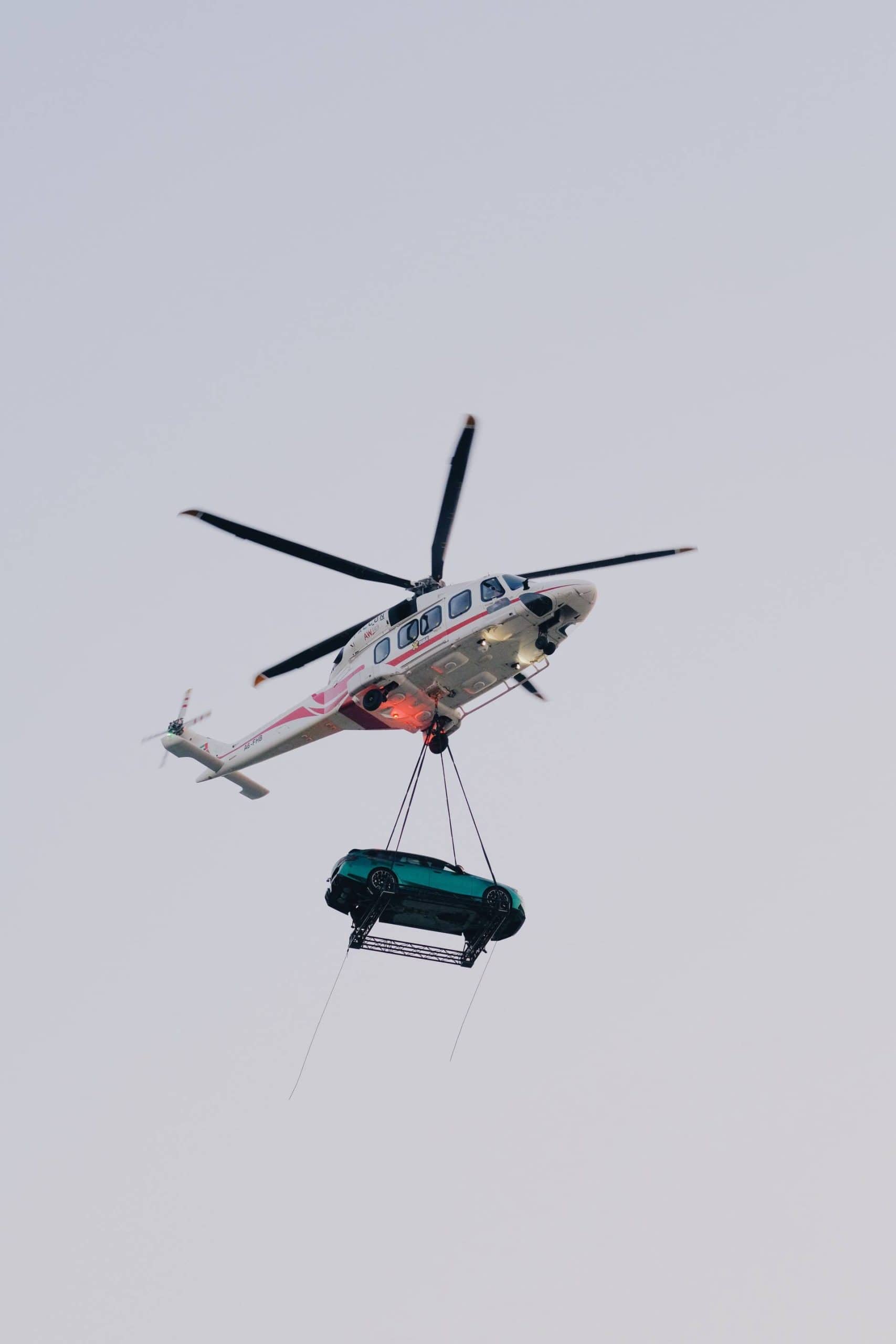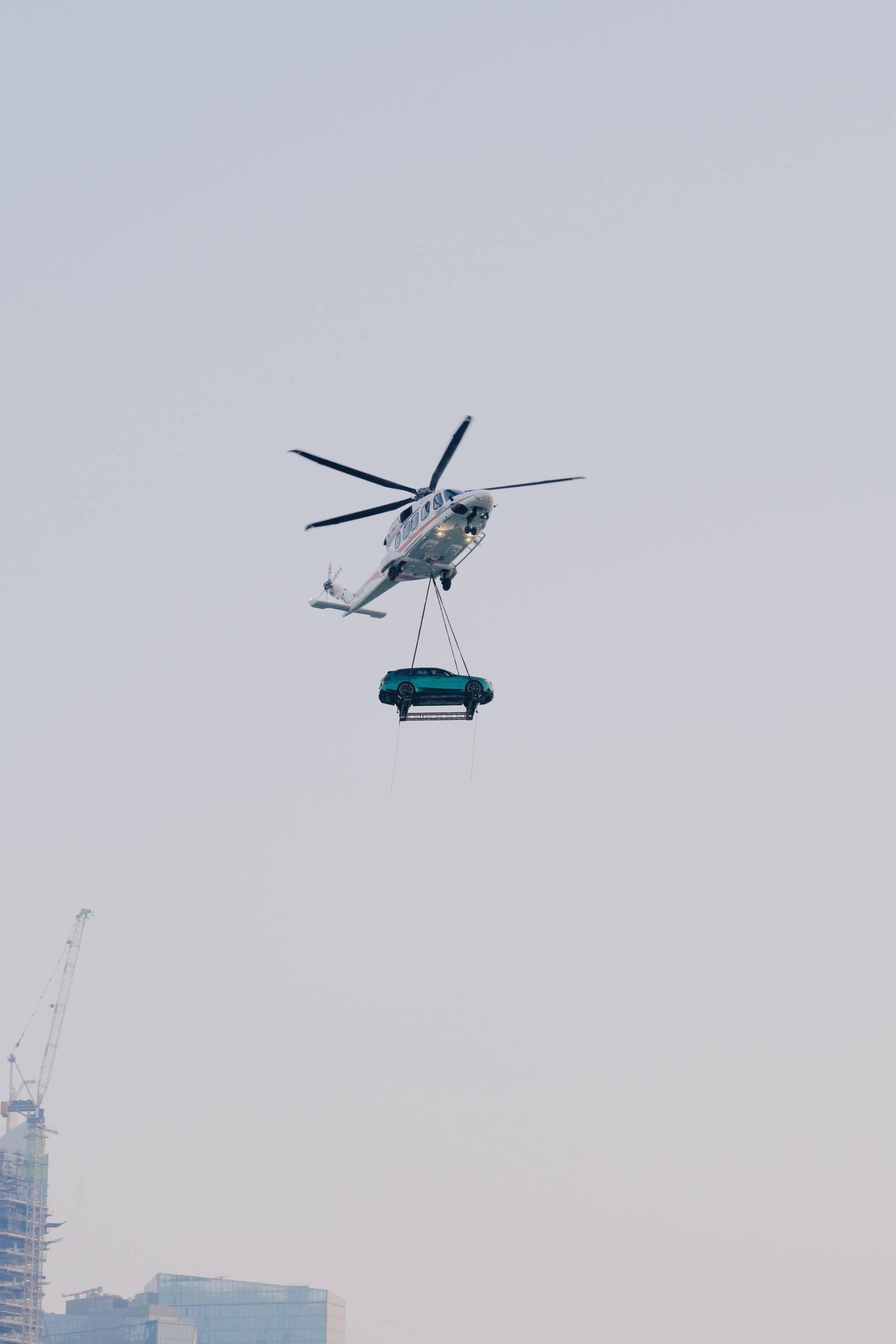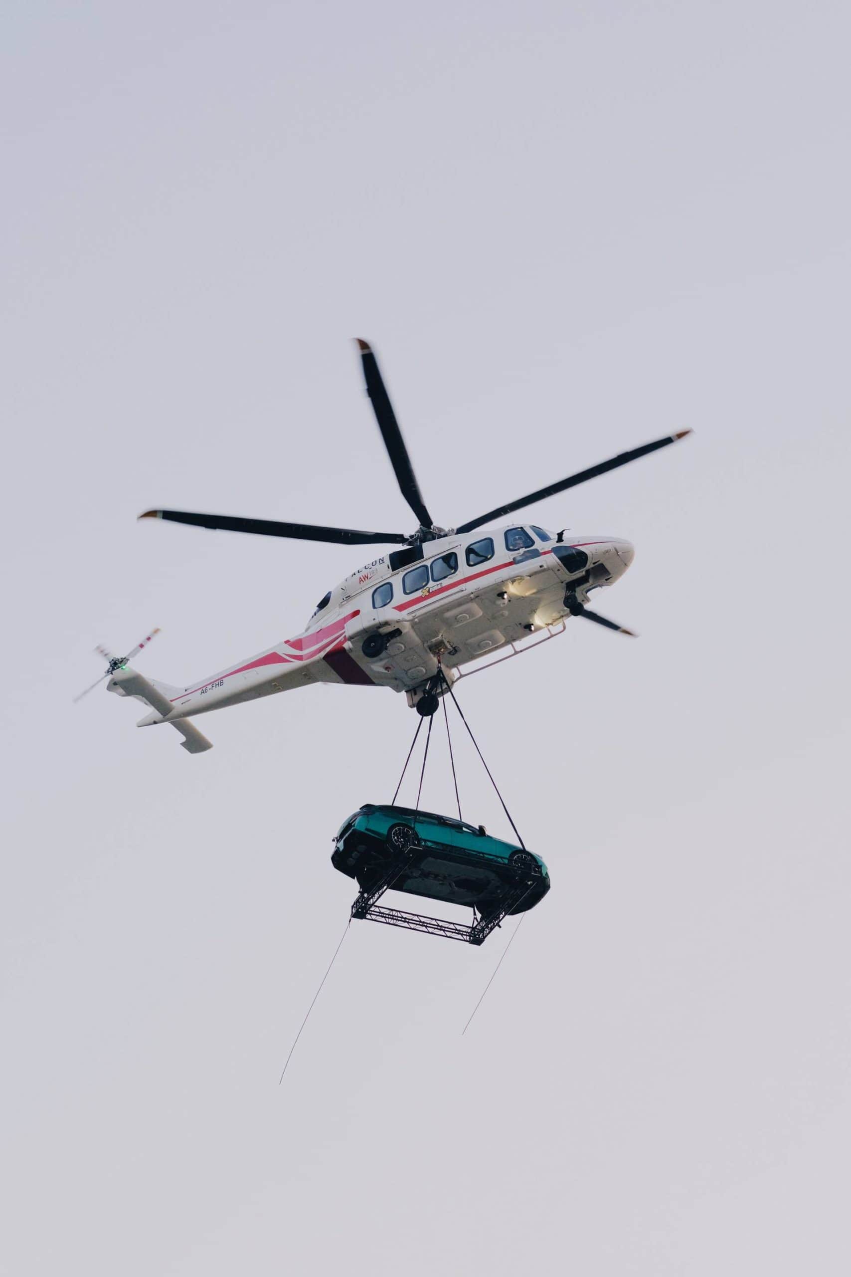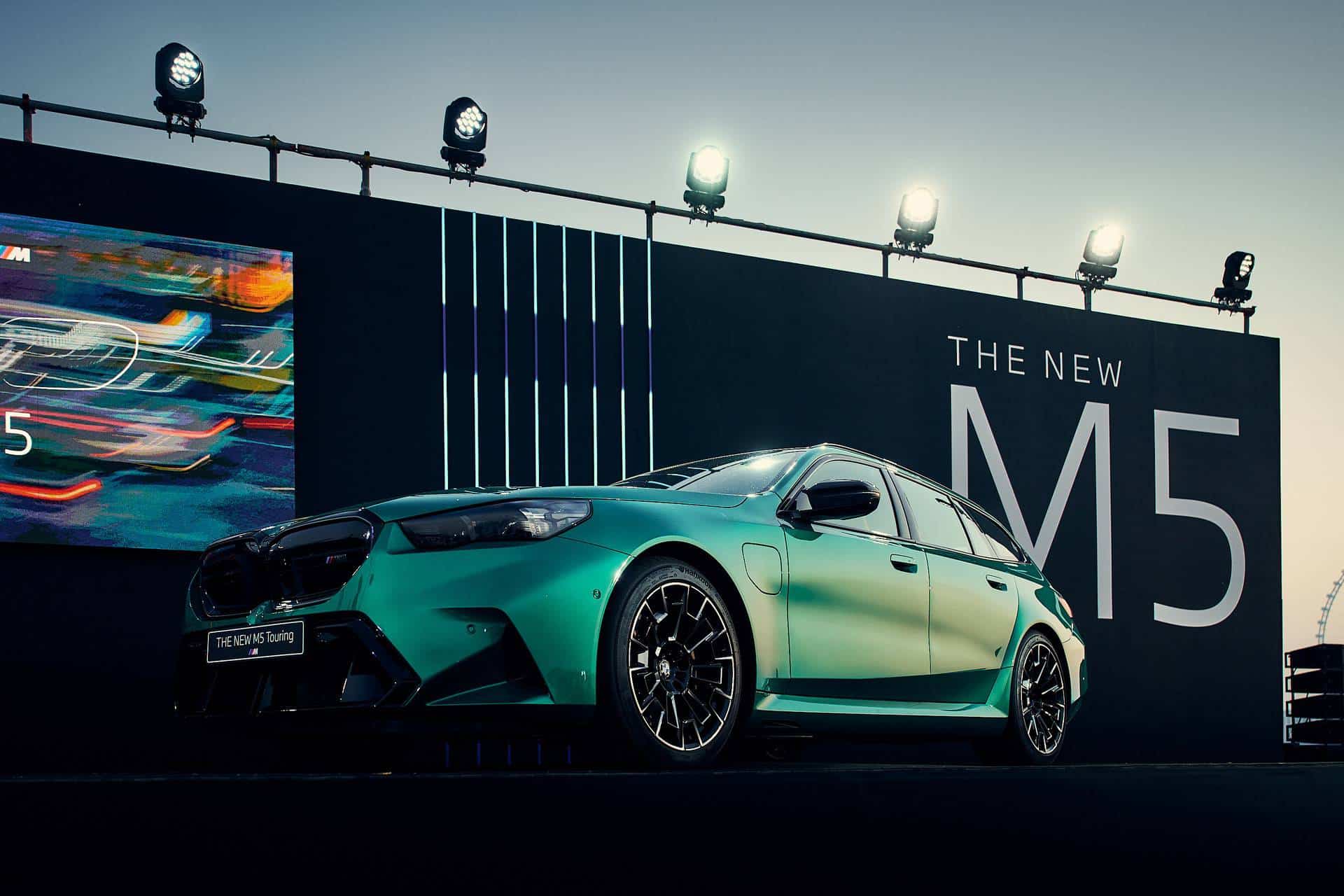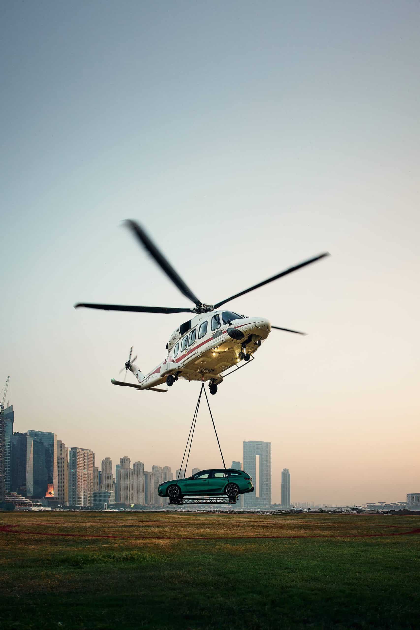 Cue the jokes about the helicopter struggling to carry the new M5’s weight. With that out of the way, the G99 Touring made a splash at its premiere in Dubai. The local BMW dealer put the super wagon on a platform that was hoisted by a helicopter. That’s certainly a way to make an entrance. For maximum effect, the fast estate was dressed to impress in an Individual paint, Isle of Man Green.