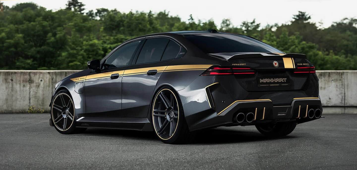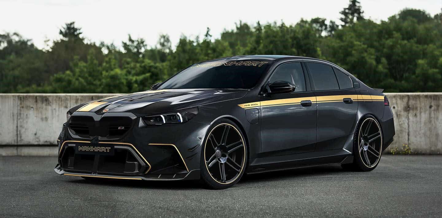 The M5s are getting a carbon fiber hood and a chunky front spoiler lip, not to mention enlarged side skirts and a redesigned diffuser. Manhart’s signature gold accents are hard to miss, much like its custom wheels with a matte finish. A suspension lower kit is planned to bring the cars closer to the road for sharper handling.
