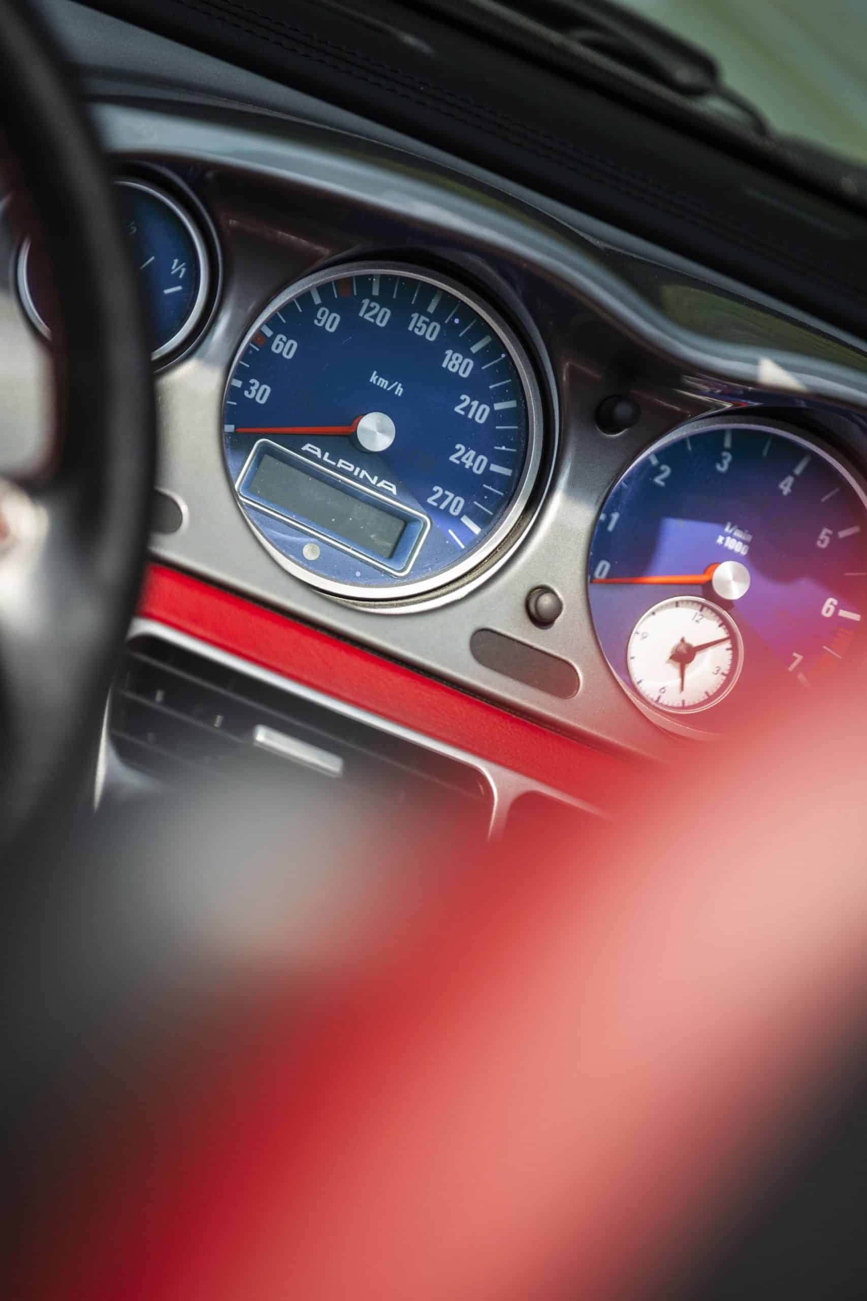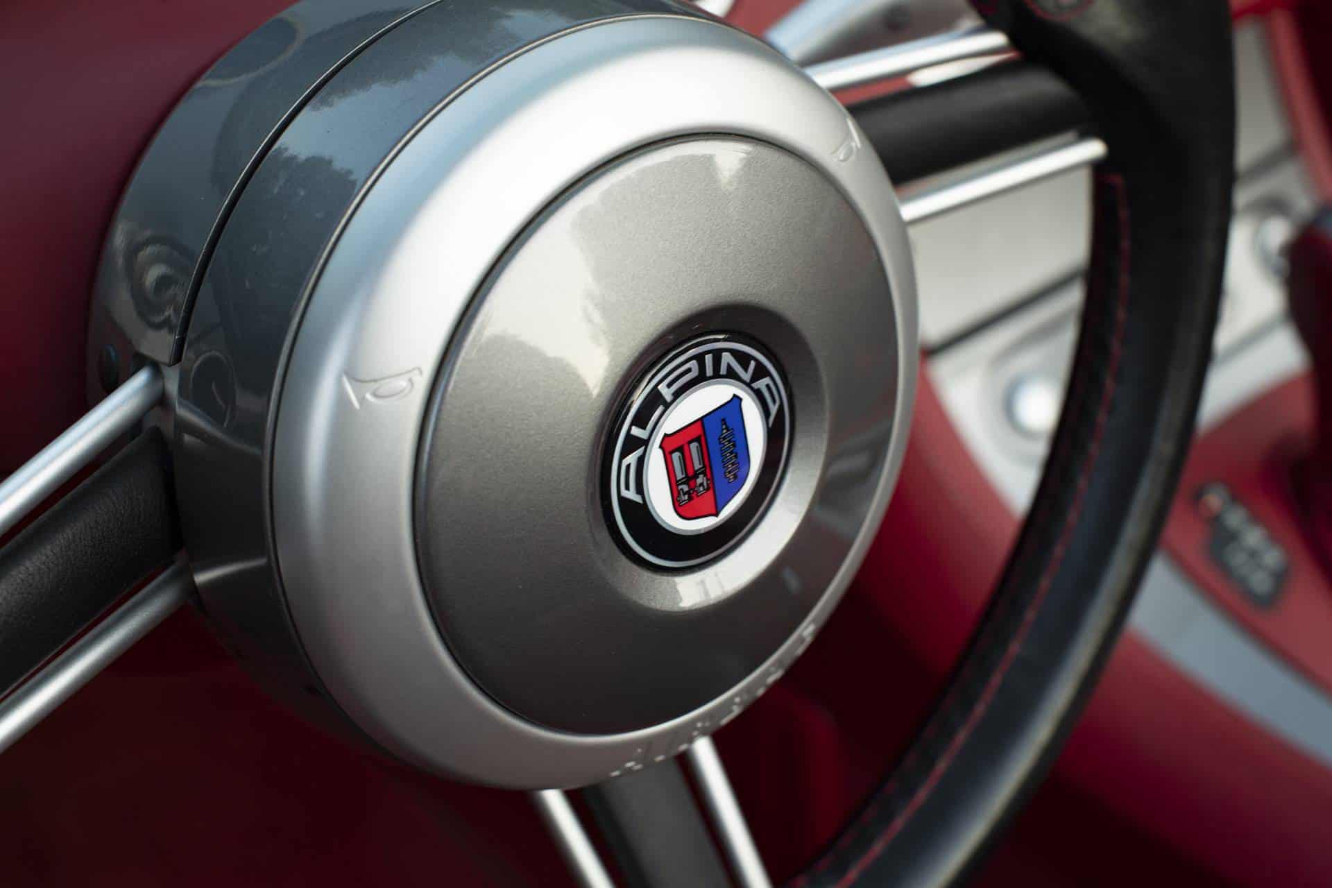 In the end, ALPINA produced only 555 units – each numbered via a plaque in the cockpit. The car got special gauges and badging to go along with the substantial changes under the sheet metal. The steering wheel is adorned in ALPINA-colored stitching, and of course the Roadster V8 has the odd “Switch-Tronic” shift buttons that most modern ALPINA models get in lieu of paddles. Perhaps most recognizable are the Ronal-sourced ALPINA 20-inch triple-spoke wheels.
