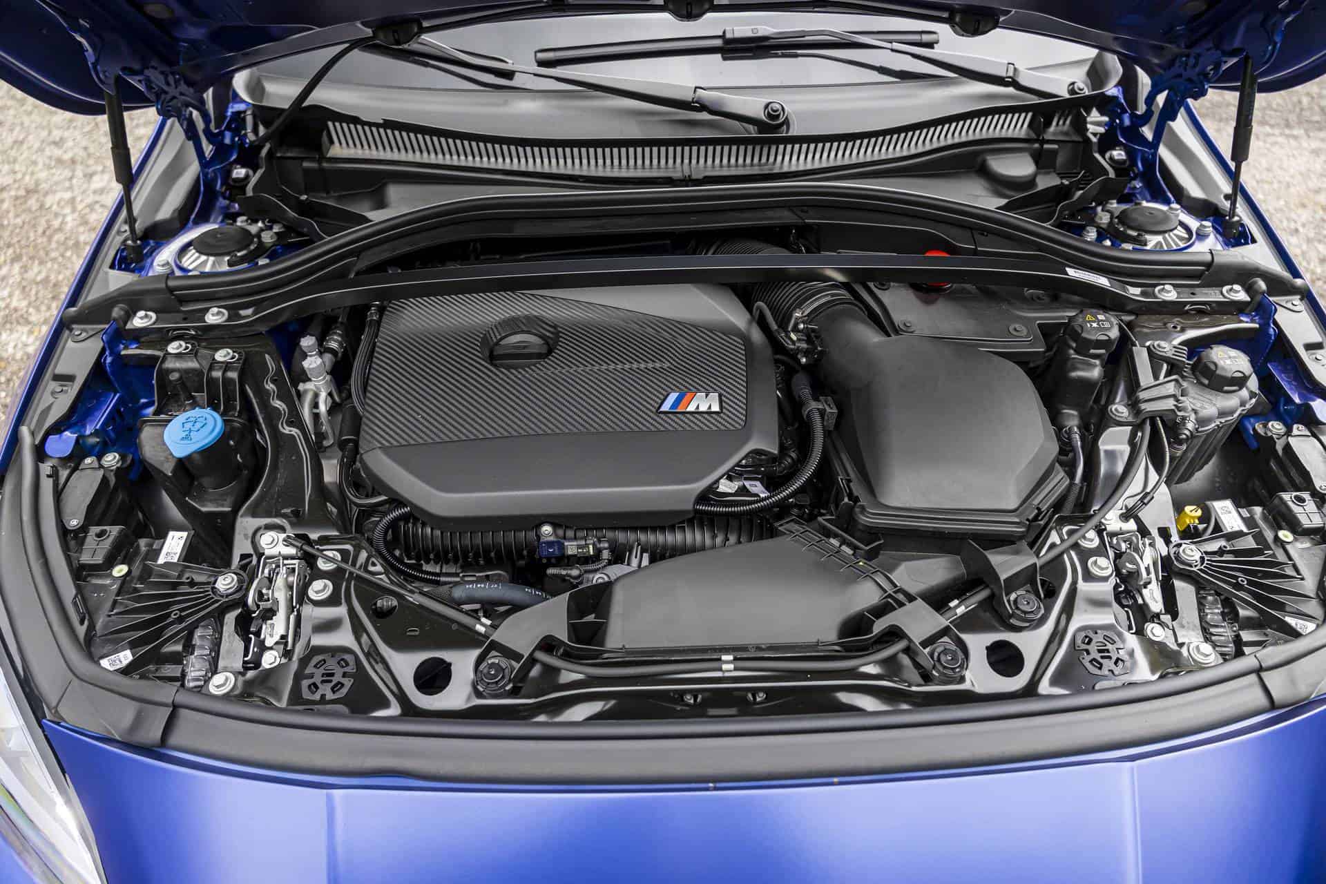 Equipment aside, we can also get acquainted with the engine cover for the turbocharged 2.0-liter four-cylinder unit. It has an M badge (of course!) and what looks like fake carbon fiber. Since the adjacent images show an M135 for Europe, that B48 engine makes only 296 hp. Outside of the EU, it offers the full 312 hp. The difference stems from emissions regulations forcing BMW to detune the four-pot. Thankfully, the 400 Nm (295 lb-ft) torque stays the same.