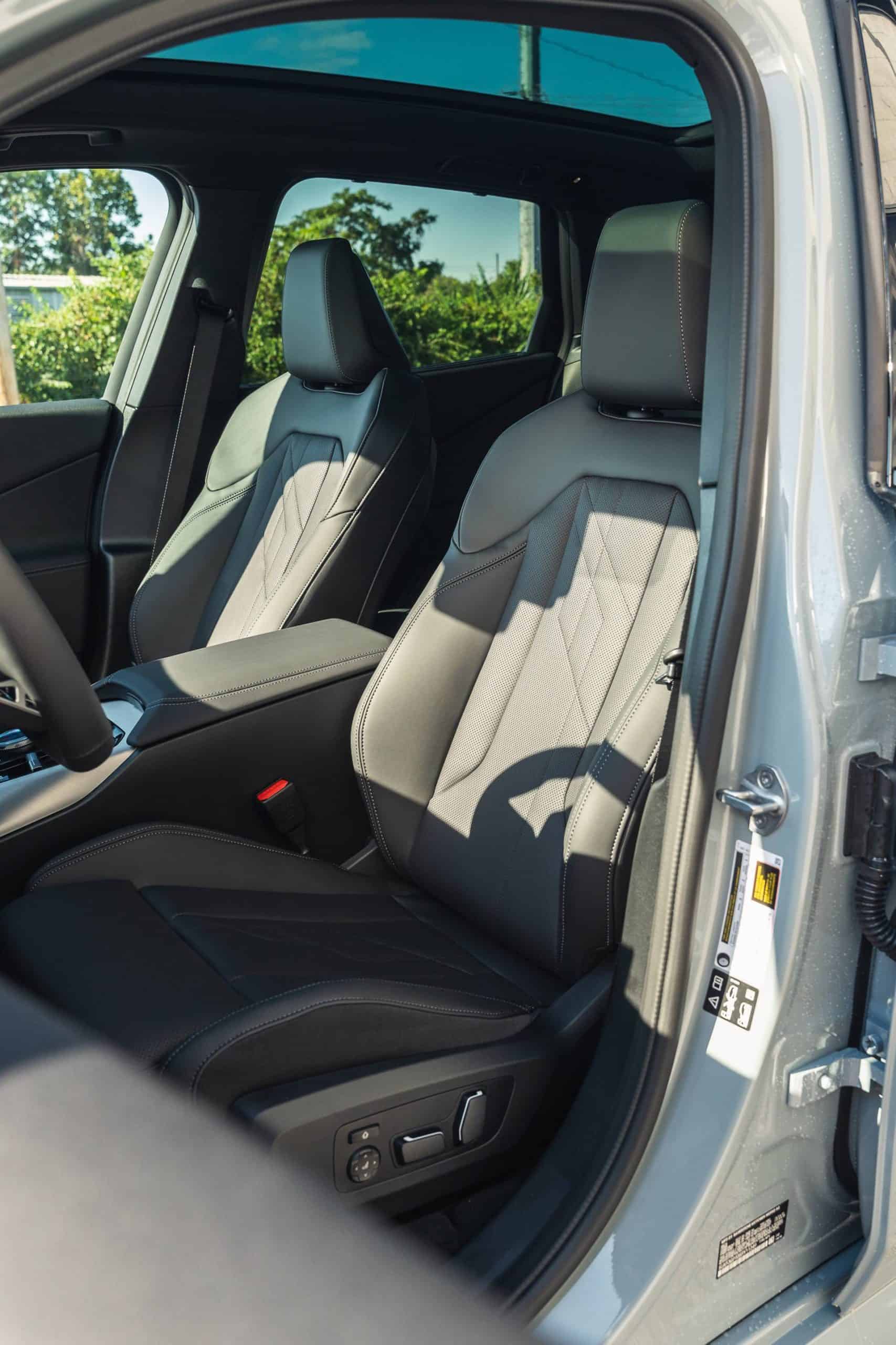 The cheapest X3 money can buy costs $50,675 if you stick to the xDrive30 with no options. The configuration featured here costs more since Brooklyn Grey forces you to get the M Sport model. These two goodies alone add $650 and $2,200, respectively, to the final bill. Upgrade to the larger 20-inch wheels and you’ll have to fork out another $600. Inside, that black perforated and quilted Veganza artificial leather upholstery is standard. Alternatively, you can have genuine leather for $1,500 with the Extended Merino Leather upgrade.