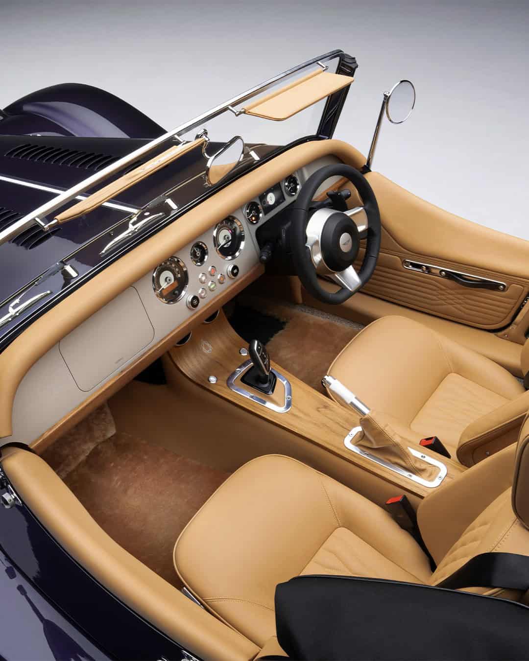 The Plus Six Pinnacle stands out from the regular model with natural sheepskin carpets that match the rest of the interior’s color. From hand-stitched surfaces to lovely teak wood trim, the interior sends a cozy atmosphere no car from BMW offers these days. All cars are getting those retro-flavored silver wheels and a polished fuel filler cap reminiscent of Le Mans race cars.