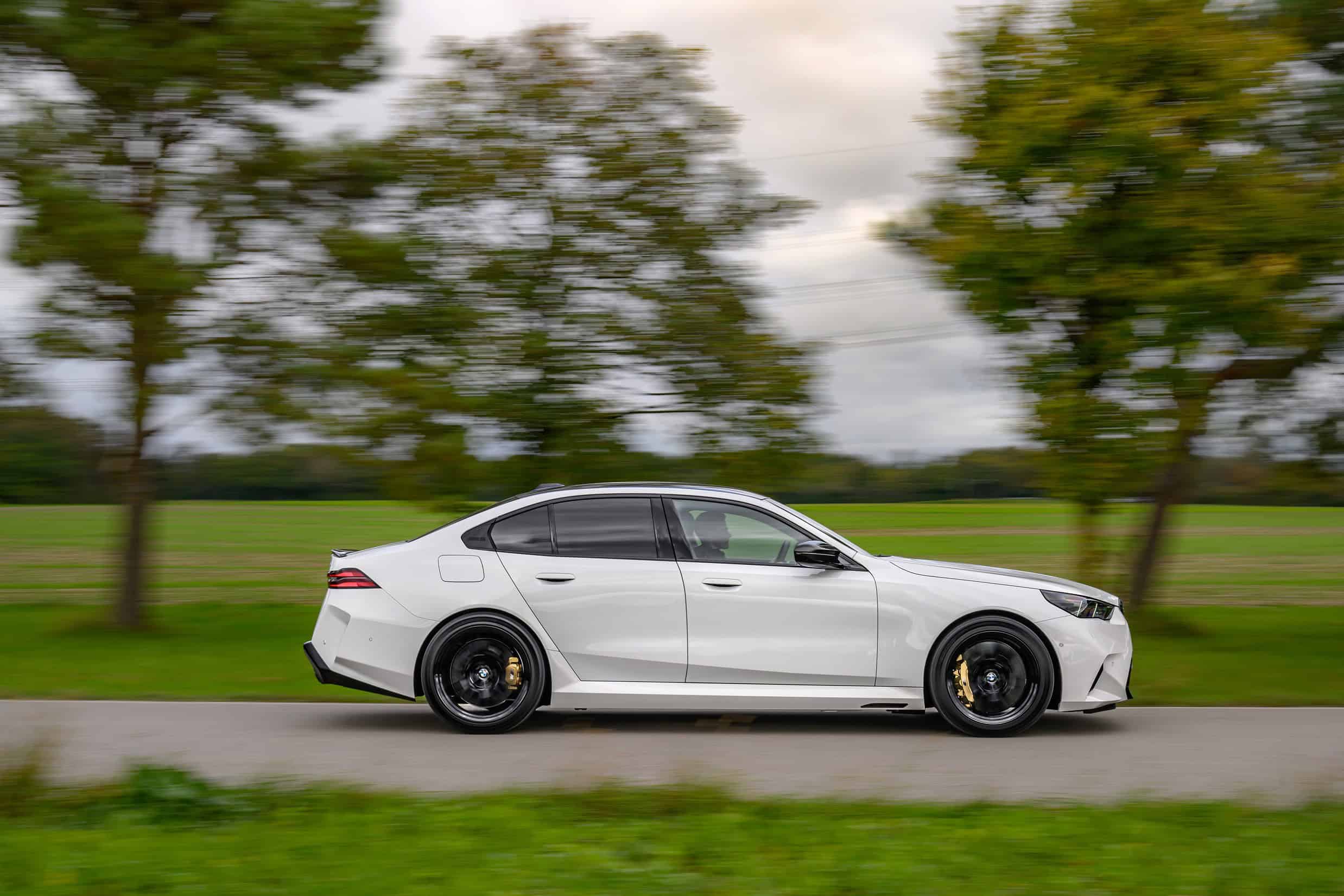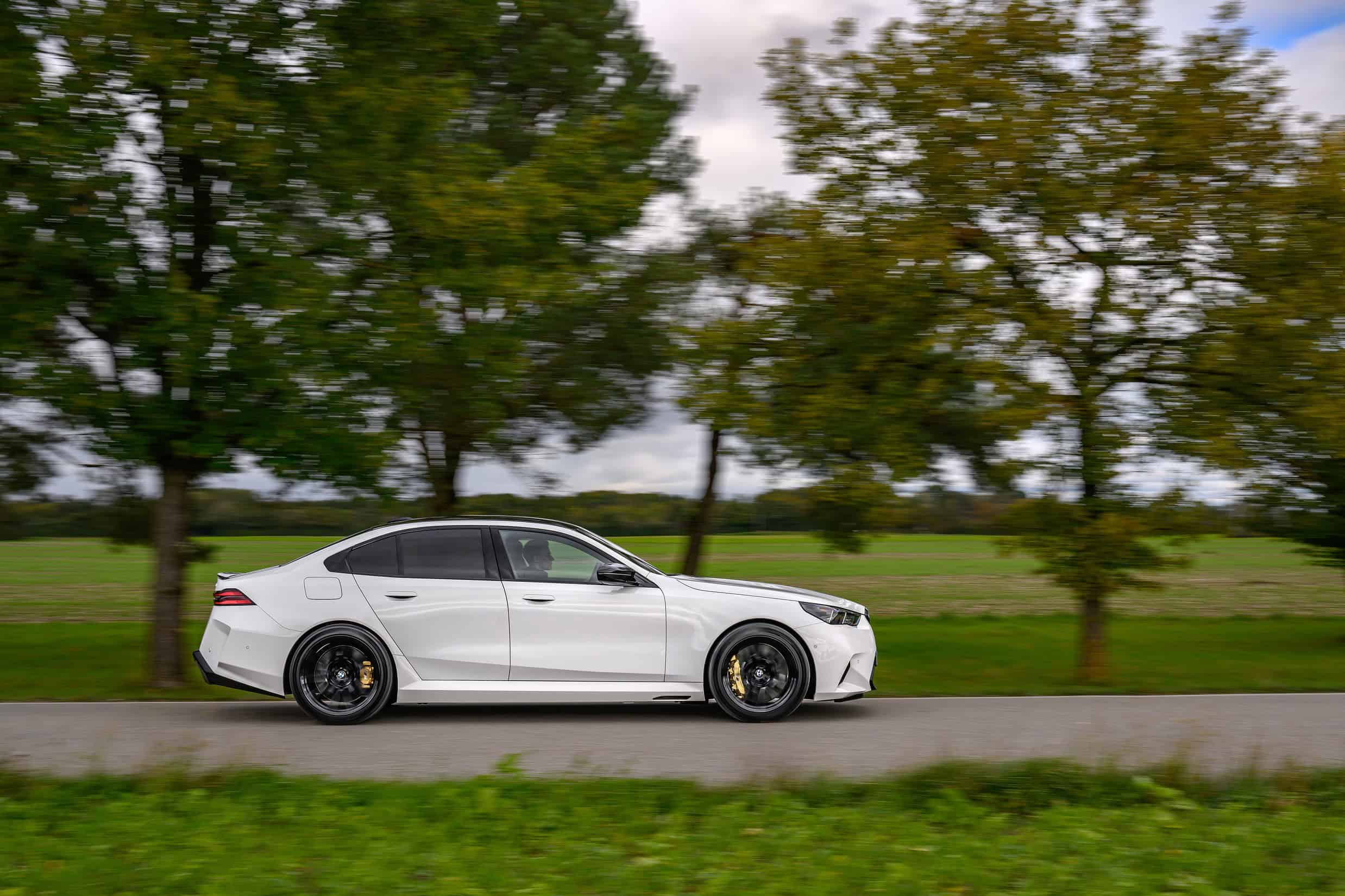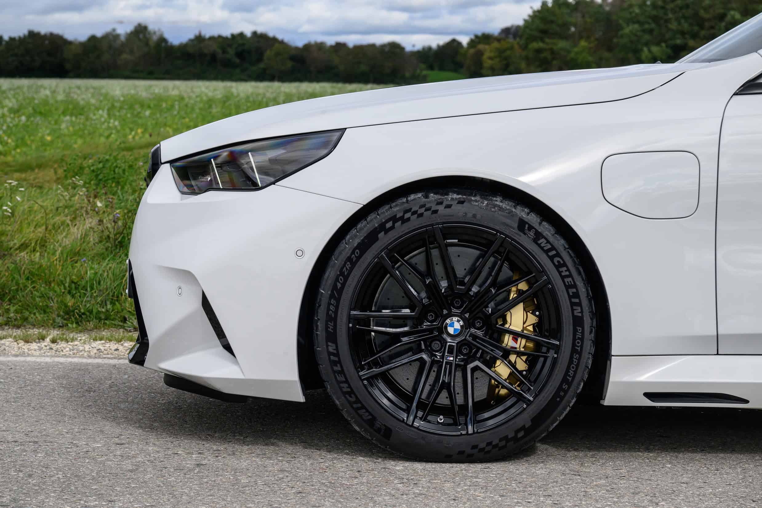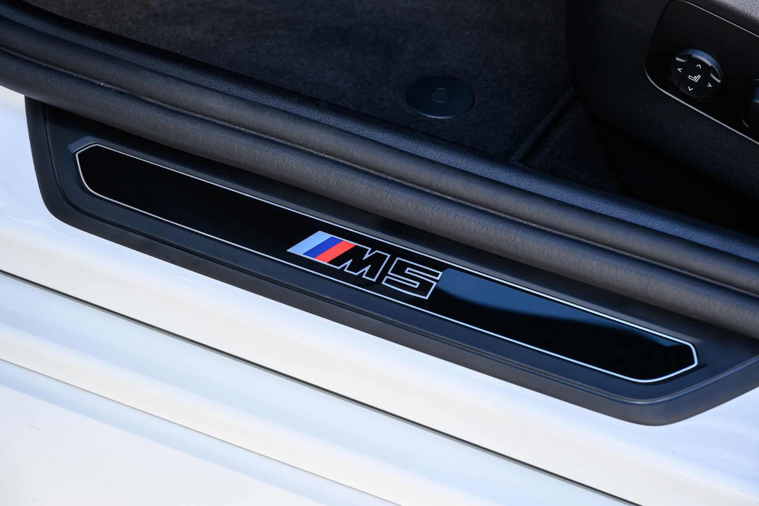 Speaking of optional goodies that cut weight, you can tell from the gold calipers this M5 has carbon ceramic brakes. These are about 55 lbs (25 kg) lighter than the standard compound brakes and come with slightly larger discs. You don’t have to settle for the all-black wheels, as BMW also offers two-tone designs, though unfortunately, there’s no classic silver finish available.