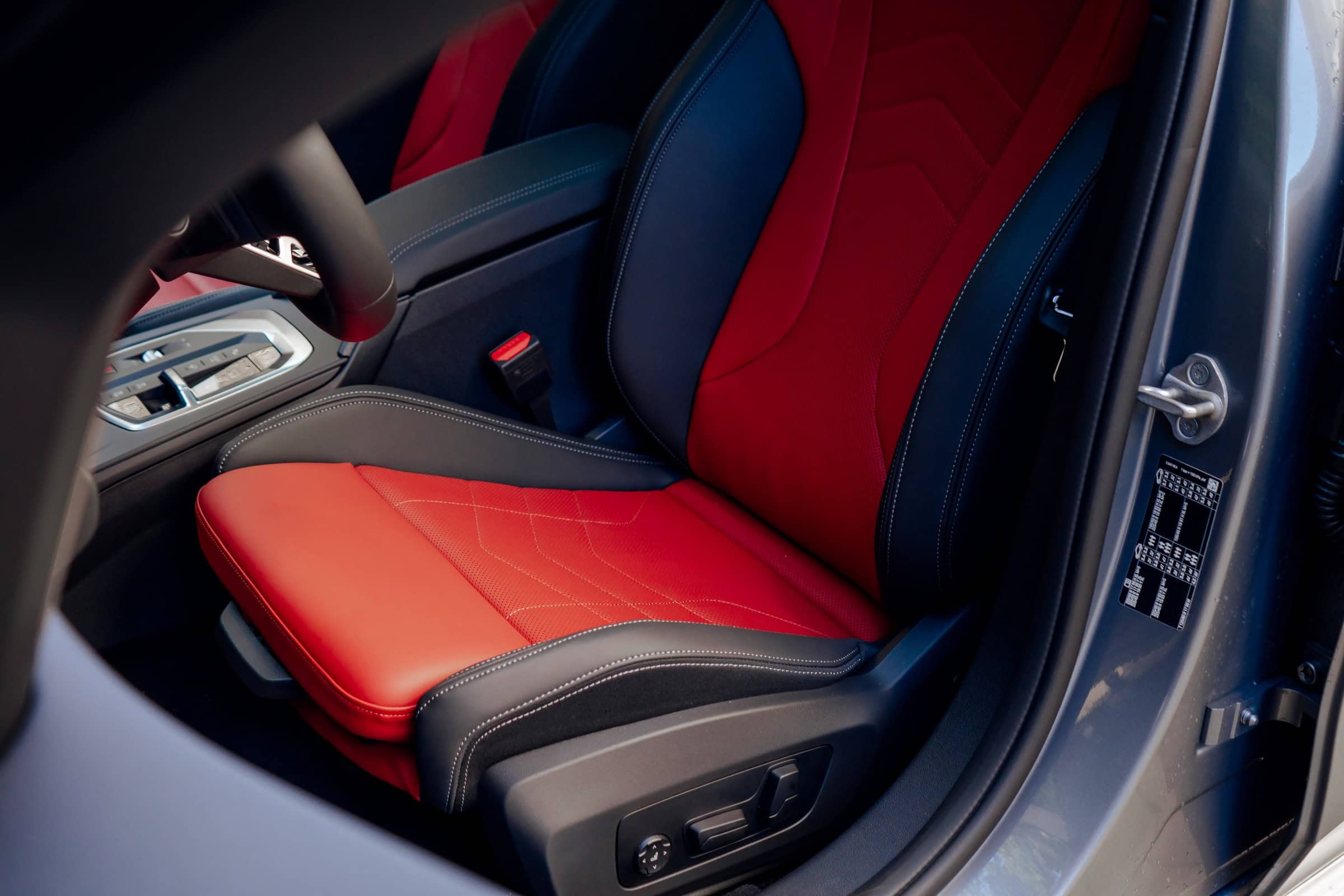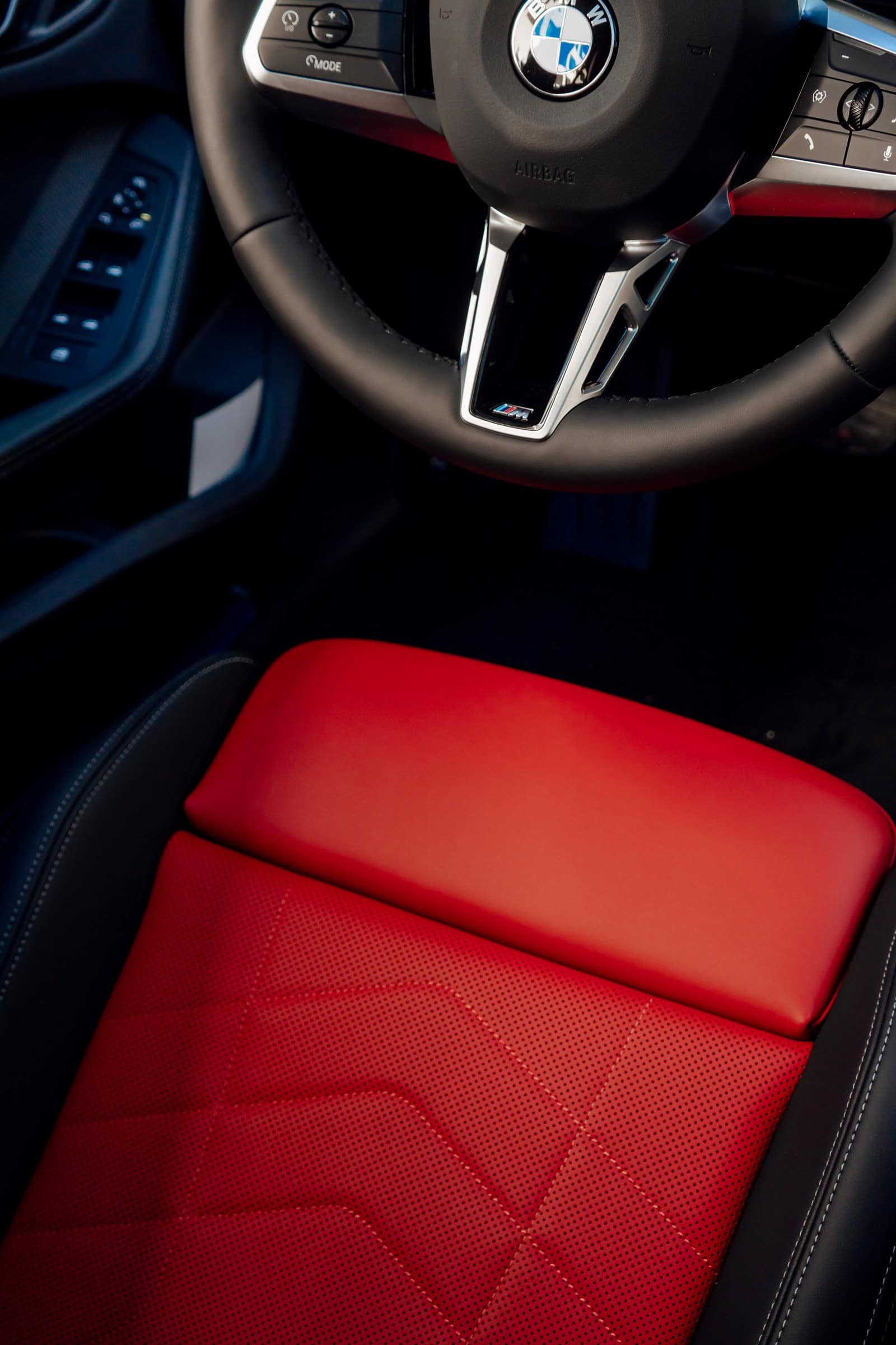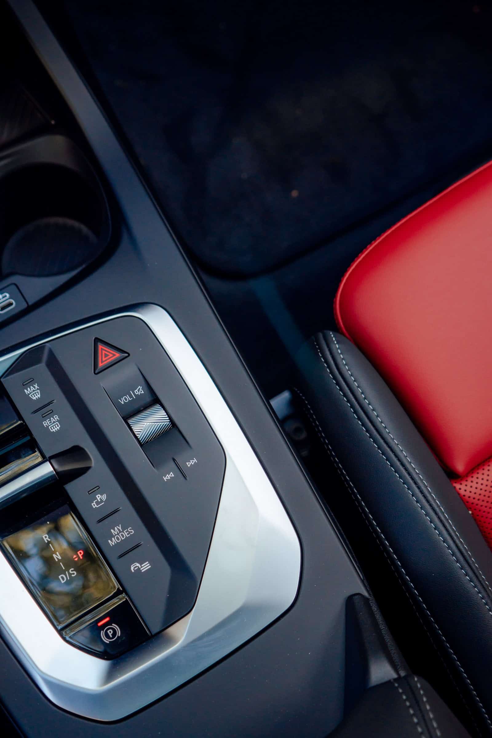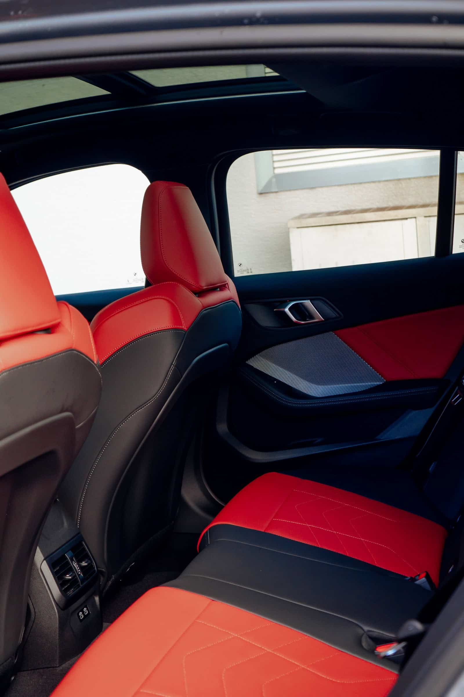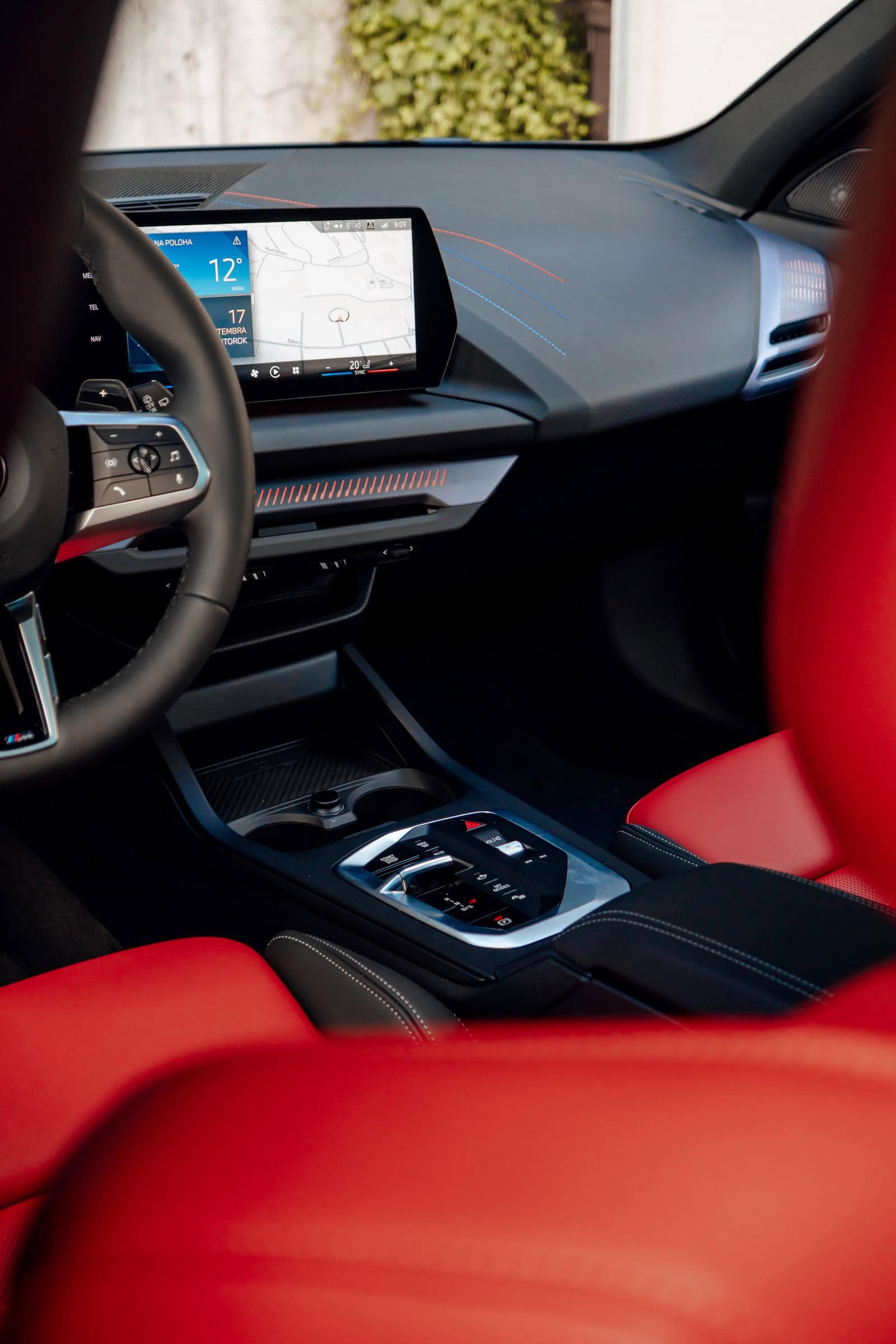 You can’t have the new 1 Series with real leather. Instead, Veganza (vegan leather) is used, as seen here with perforated Coral Red/Black upholstery. This is a more expensive F70 since it has the optional panoramic glass roof, among other goodies. Overall, the 1er has drastically changed inside, in keeping with BMW’s minimalist approach of recent years.