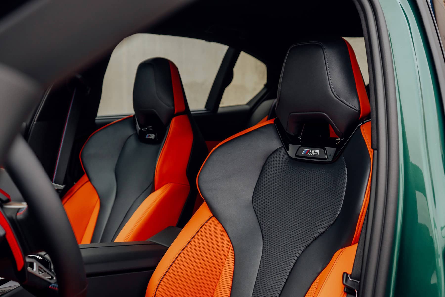 The BMW M5 doesn’t need a flashy paint job or a striking interior to draw a crowd. That said, it can be an even more attention-grabbing super sedan in a wild configuration such as this. The G90 is dressed to impress in Isle of Man Green with a Kyalami Orange interior. Dare we say, it’s a combination that somehow works. The carbon fiber roof and mirror caps add to the four-door rocket’s appeal.