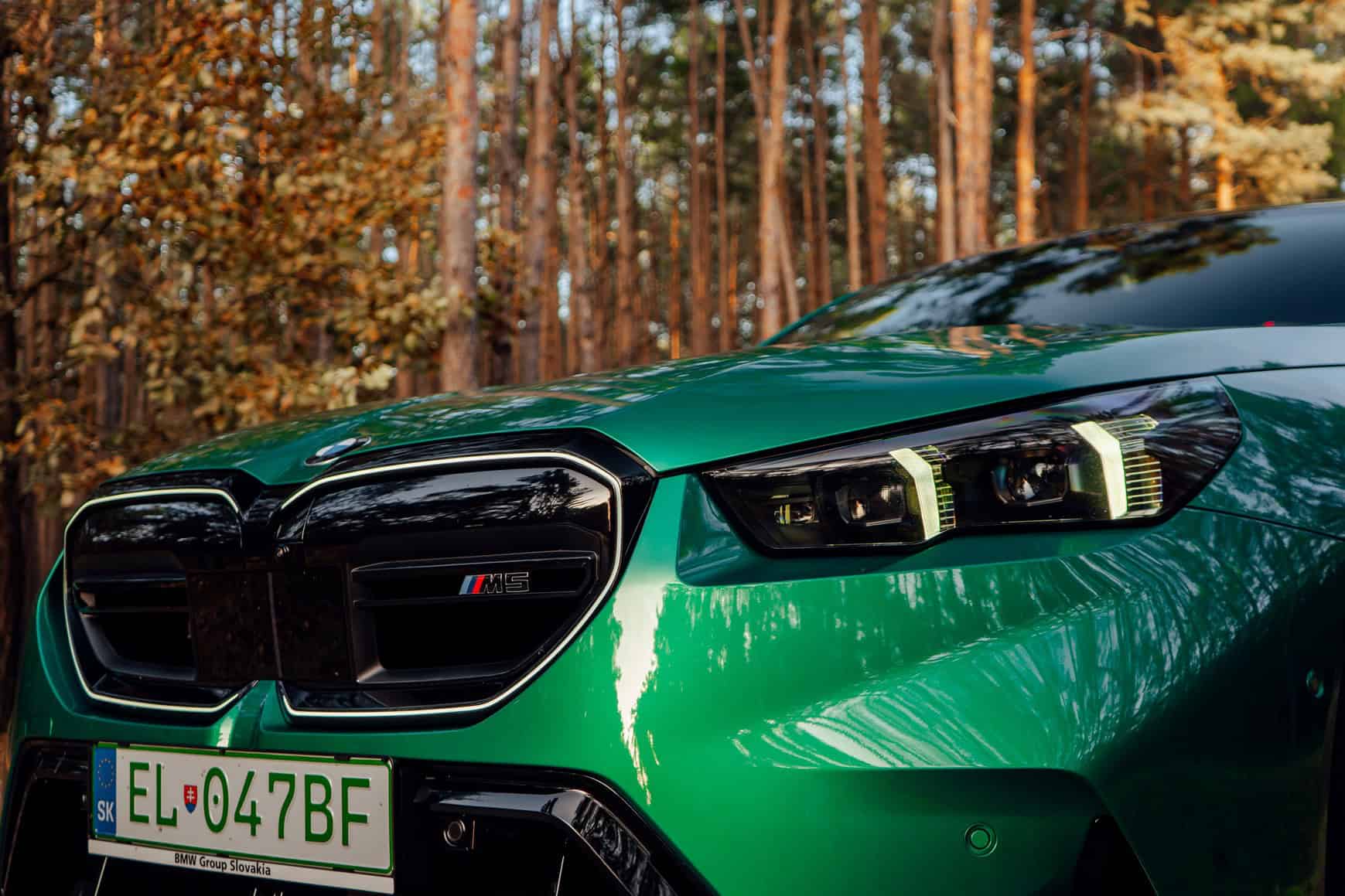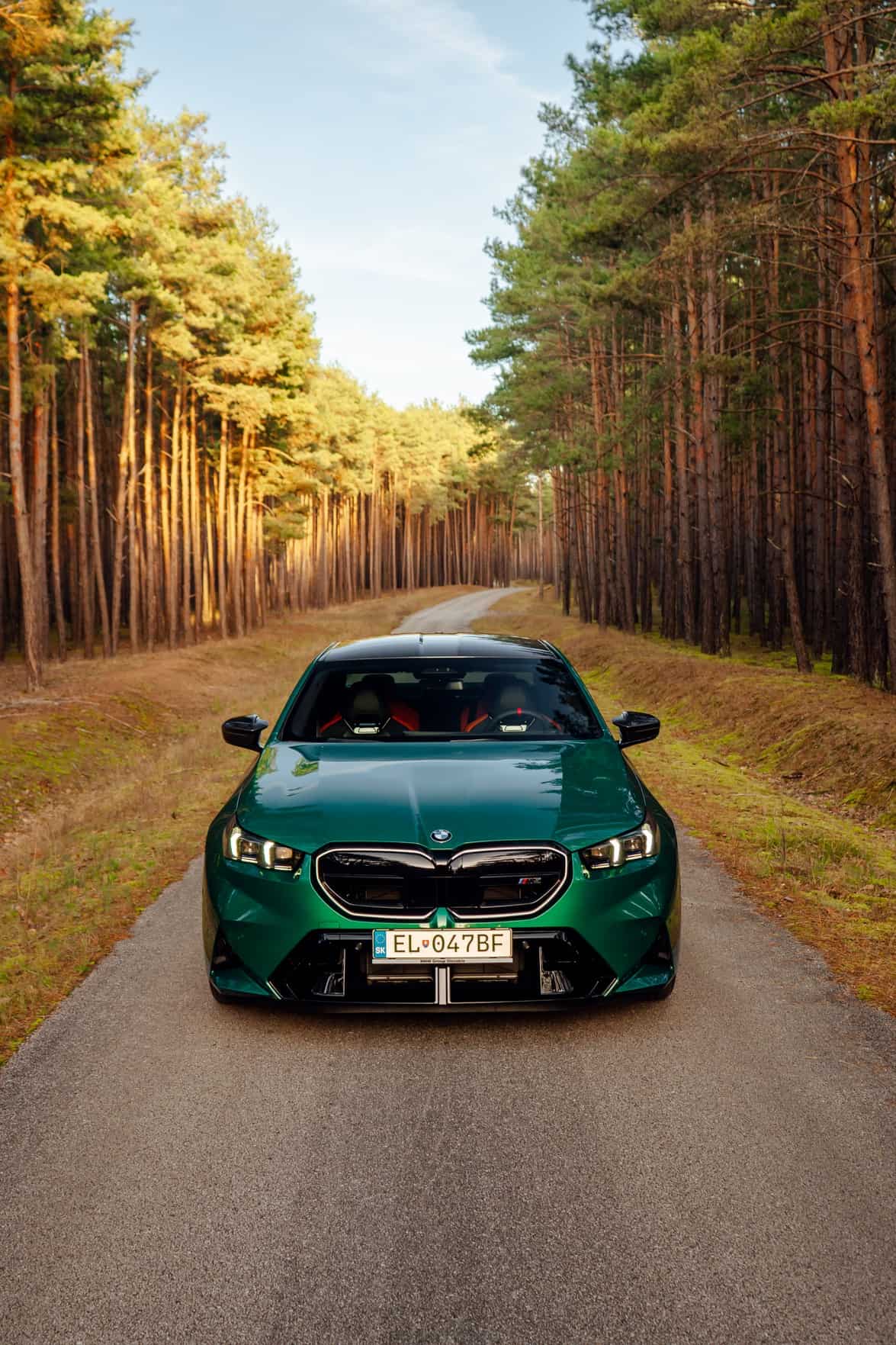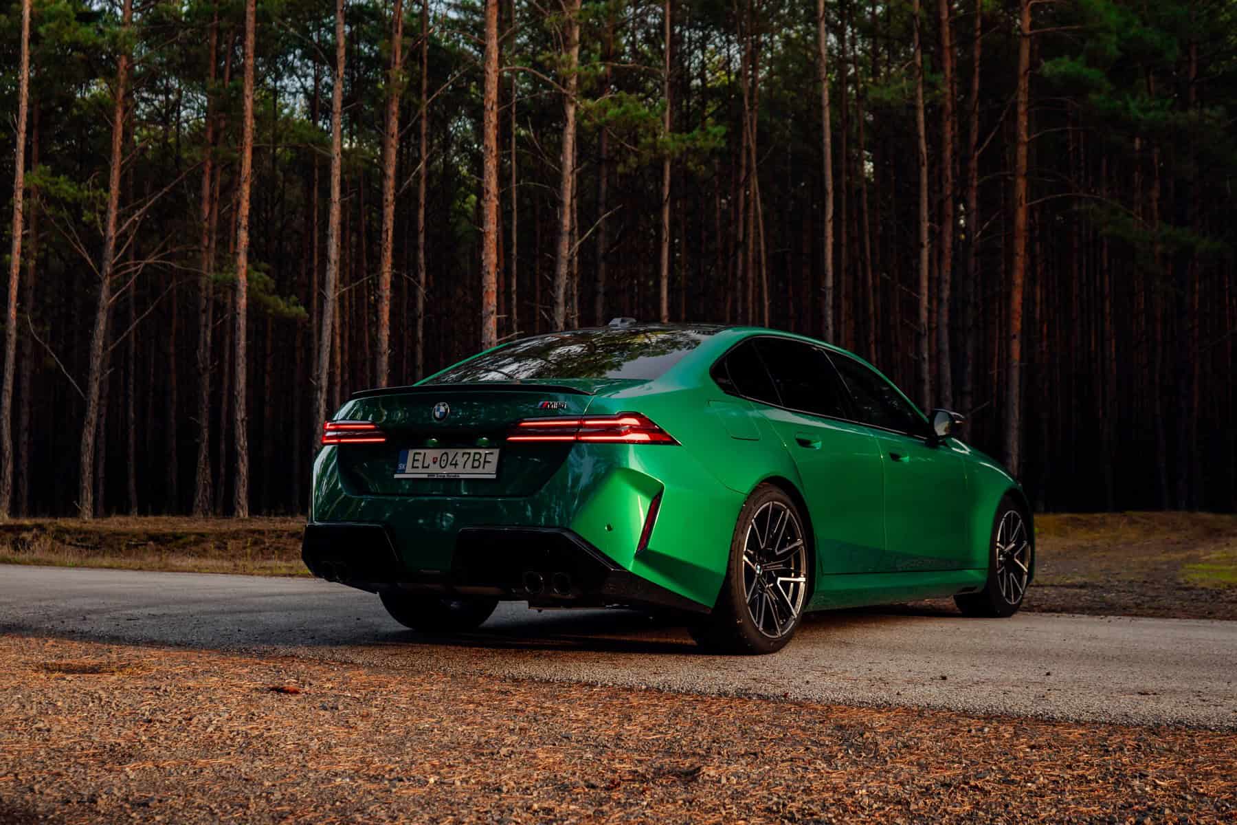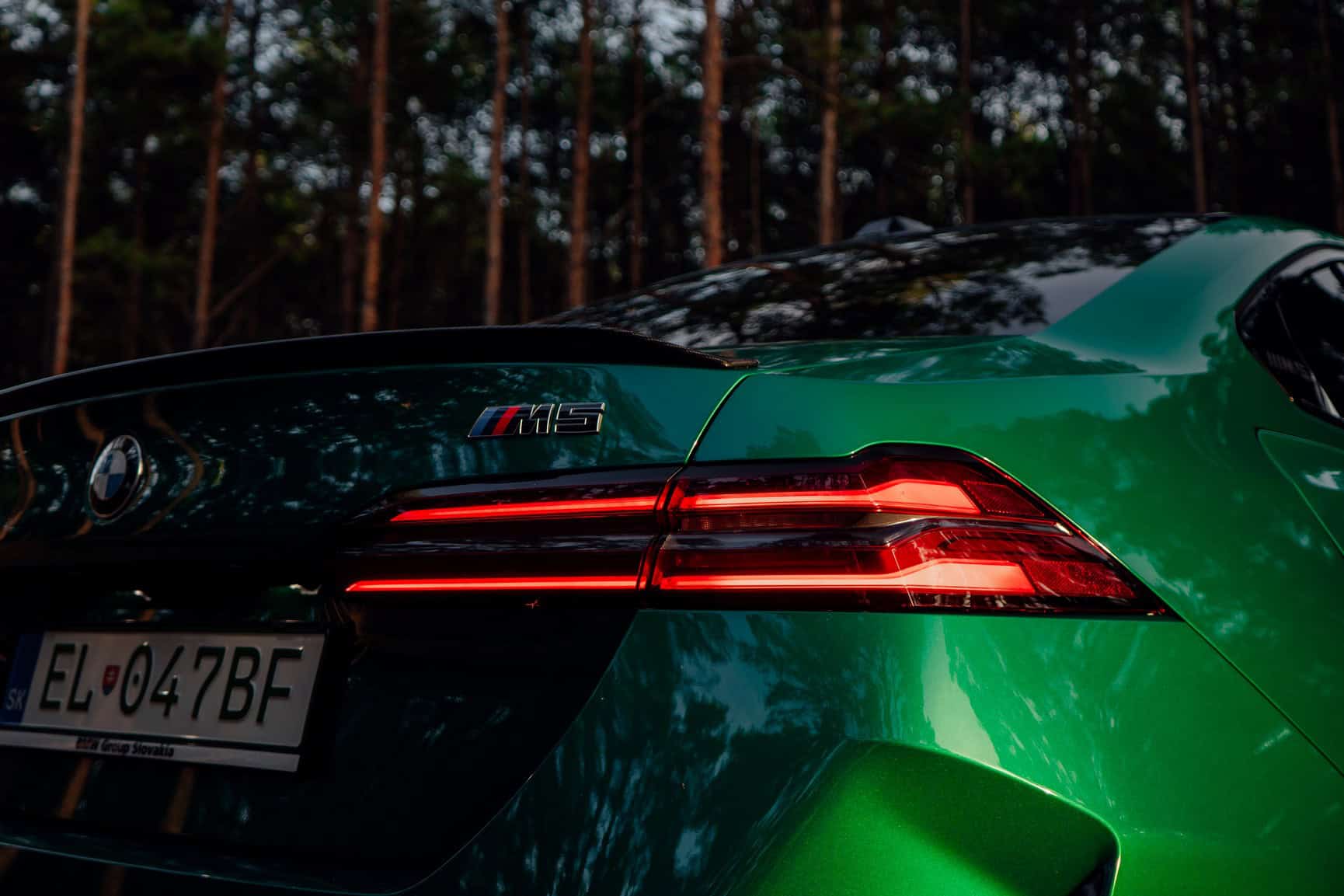The lightweight roof and mirrors we mentioned earlier are part of the Carbon Package which also includes a trunk lid spoiler. Without the pack, all those parts are finished in glossy black – yet another design element BMW prefers these days. A panoramic glass sunroof is included as standard equipment in all markets. It has a view-through area that has increased by nearly 90% compared to the old M5 F90’s tilt/slide sunroof.