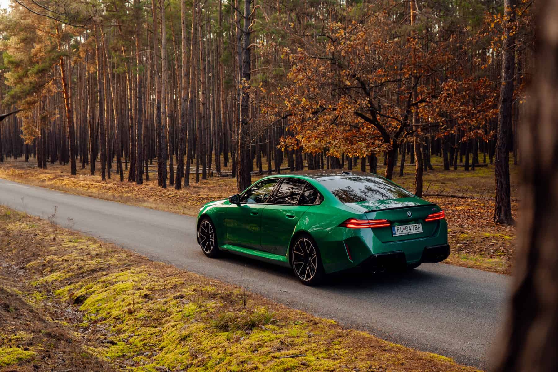 The seventh-generation M5 has been photographed in a lovely fall scenery upon its arrival in Slovakia. If you’re not a fan of those two-tone wheels, BMW also offers the same 951 M set with an all-black finish. Alternatively, there’s a different 952 M set with a bi-color look that seems to be all the rage in Munich. You can tell from the brake calipers this car had the standard M Compound brakes, which are also offered with red or blue calipers. Alternatively, the optional carbon-ceramic brakes have gold calipers.
