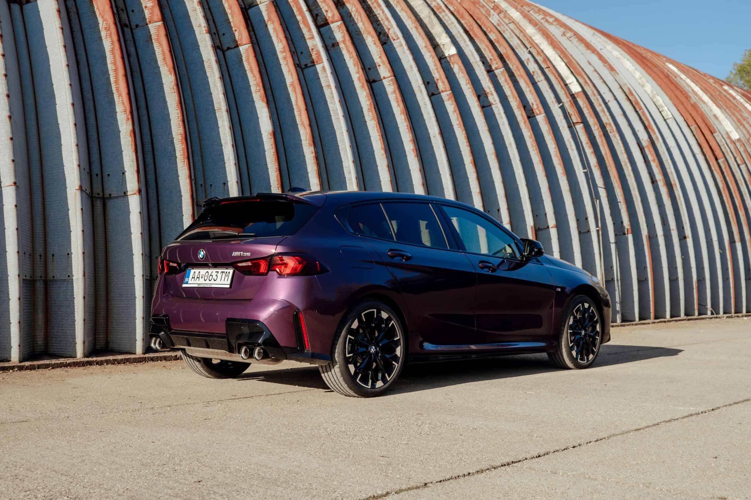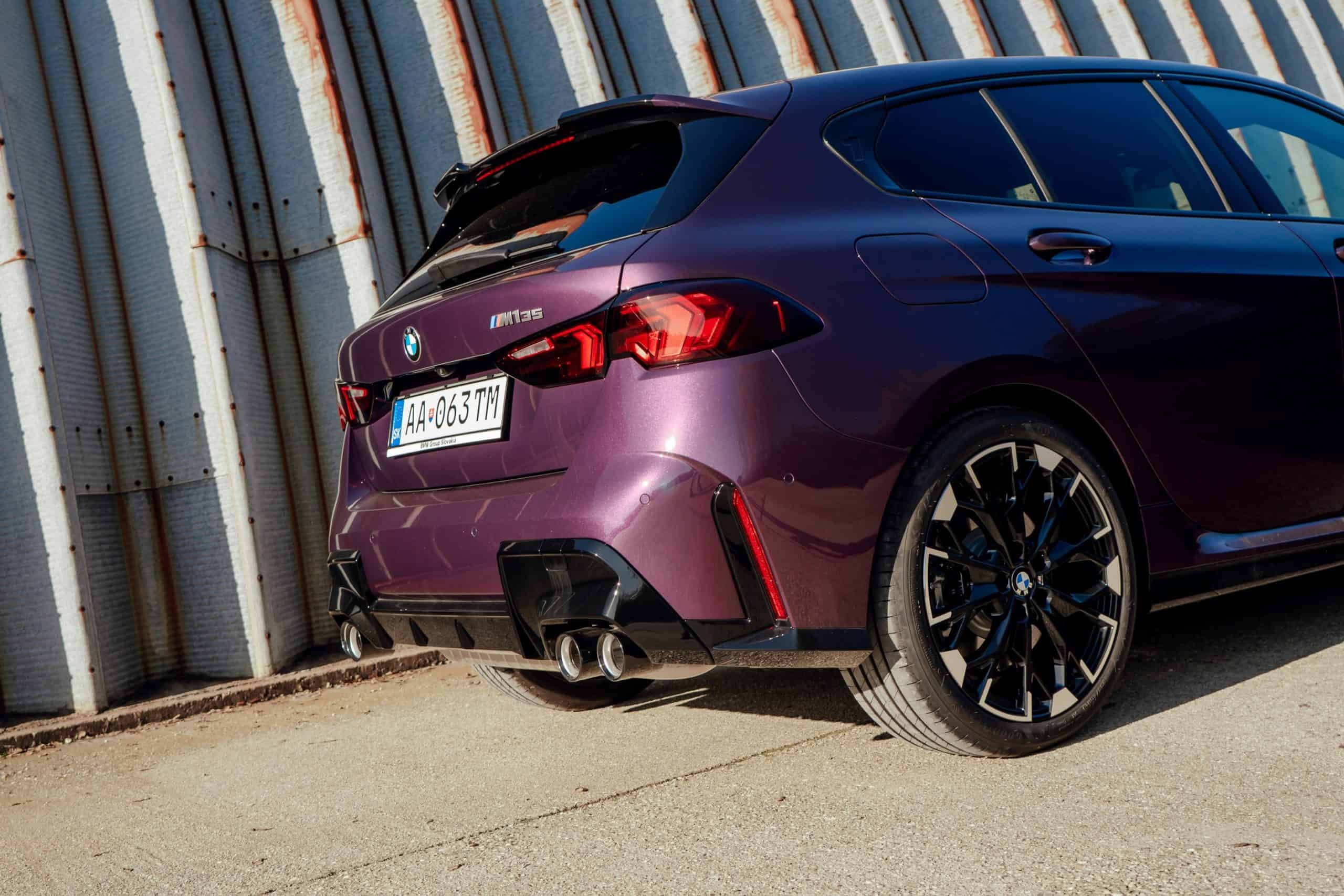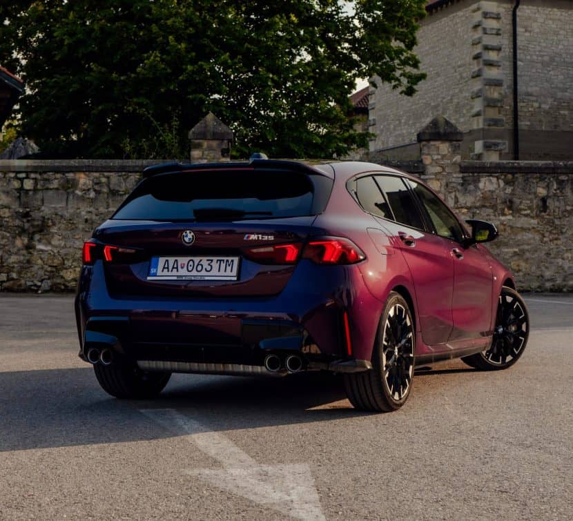Thundernight is one of several color-shifting BMW paints. It switches from purple to an almost black shade depending on how the light hits the car. This fresh gallery is a good opportunity to see how it spices up Bavaria’s Volkswagen Golf R rival. This M135 also happens to have one of the larger 19-inch wheel sets available. You can tell it has the optional compound brakes by the M-branded gray calipers.