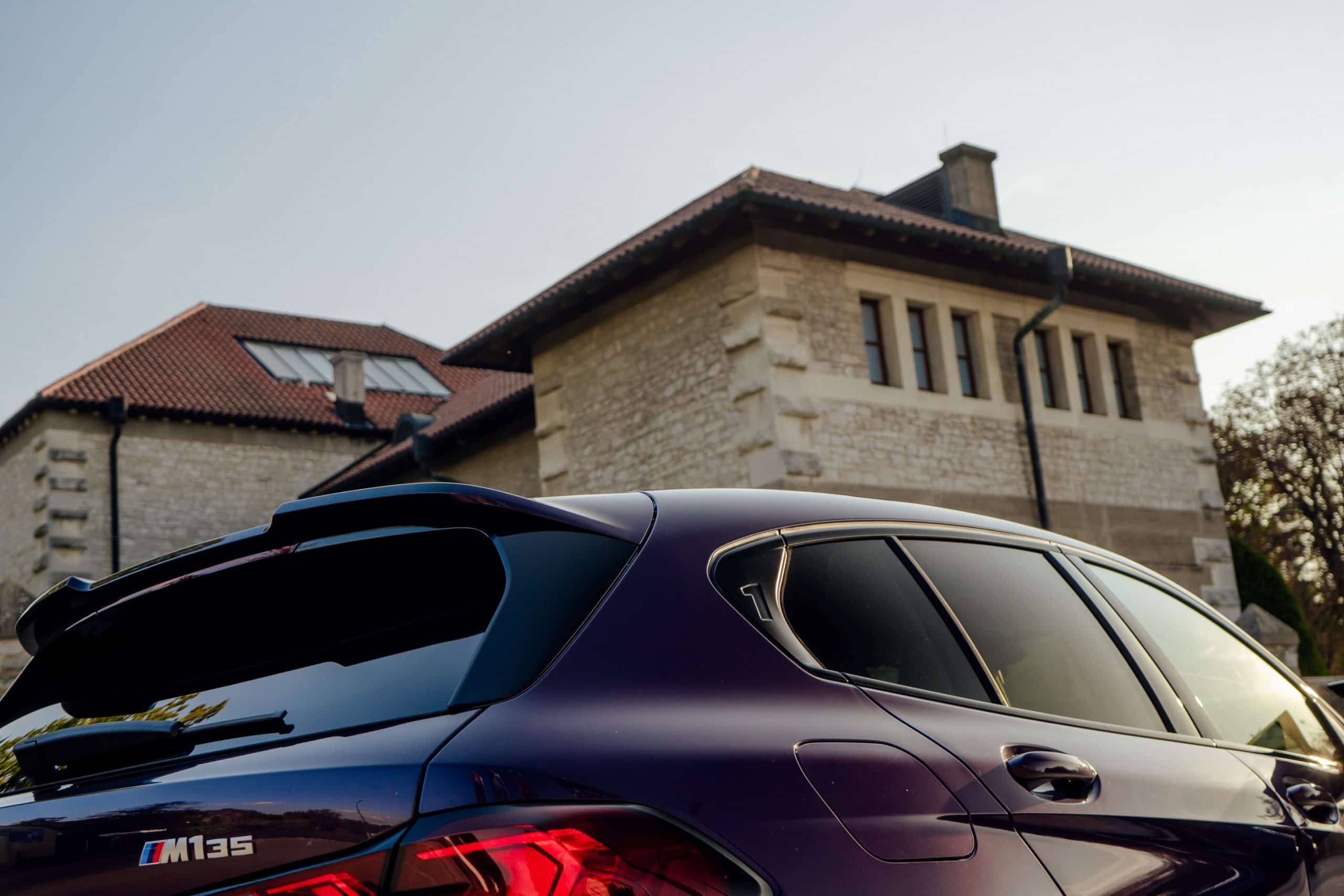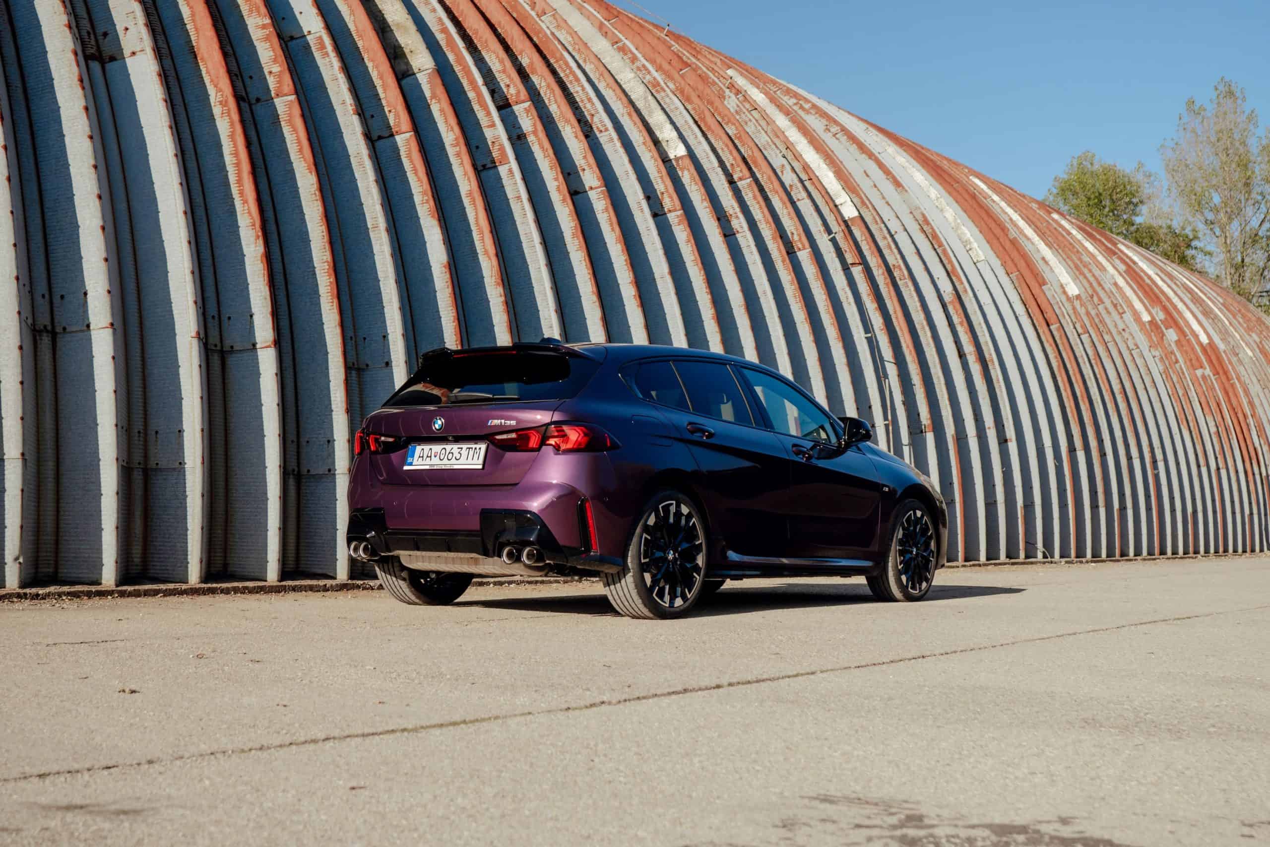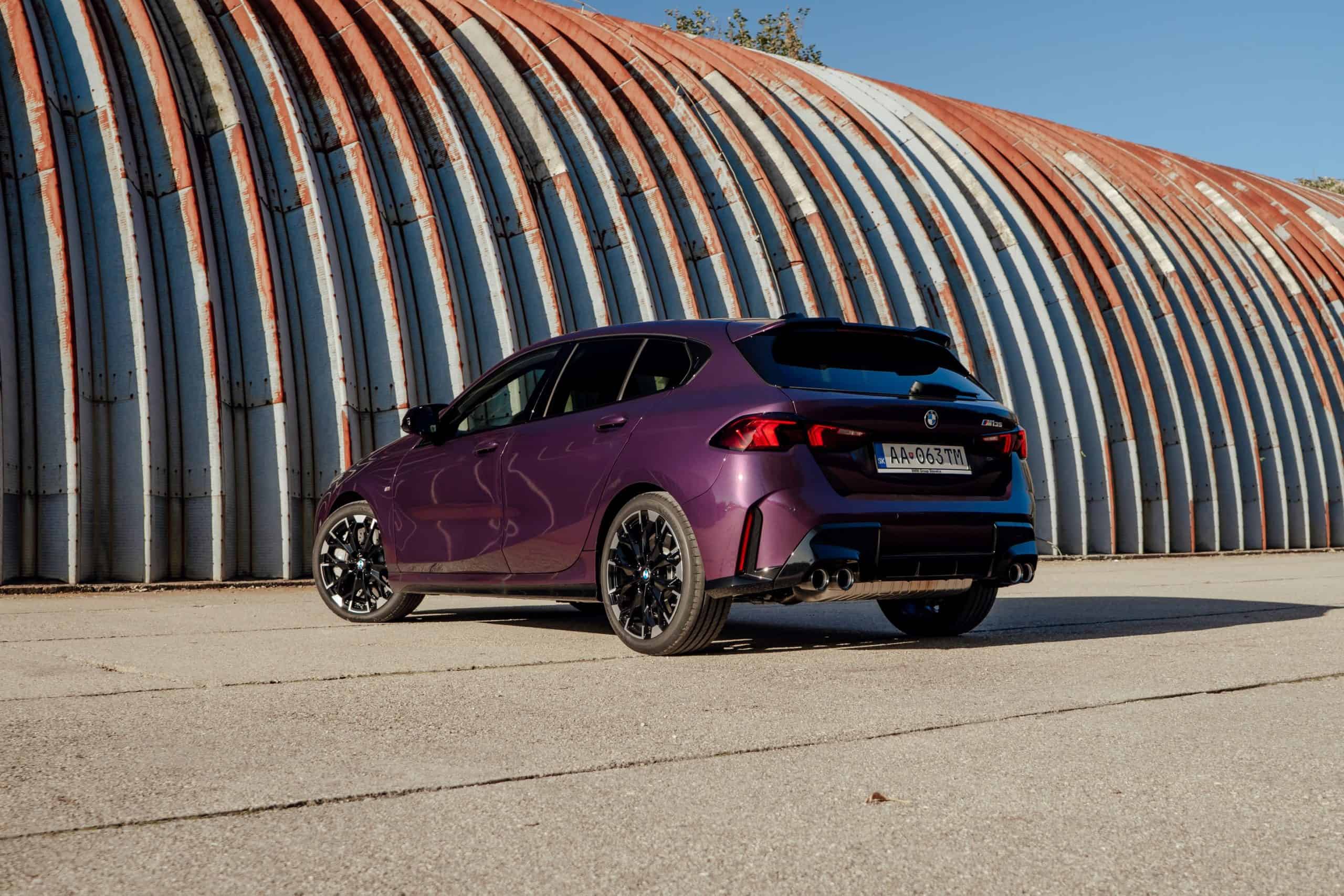Thundernight is one of several color-shifting BMW paints. It switches from purple to an almost black shade depending on how the light hits the car. This fresh gallery is a good opportunity to see how it spices up Bavaria’s Volkswagen Golf R rival. This M135 also happens to have one of the larger 19-inch wheel sets available. You can tell it has the optional compound brakes by the M-branded gray calipers.