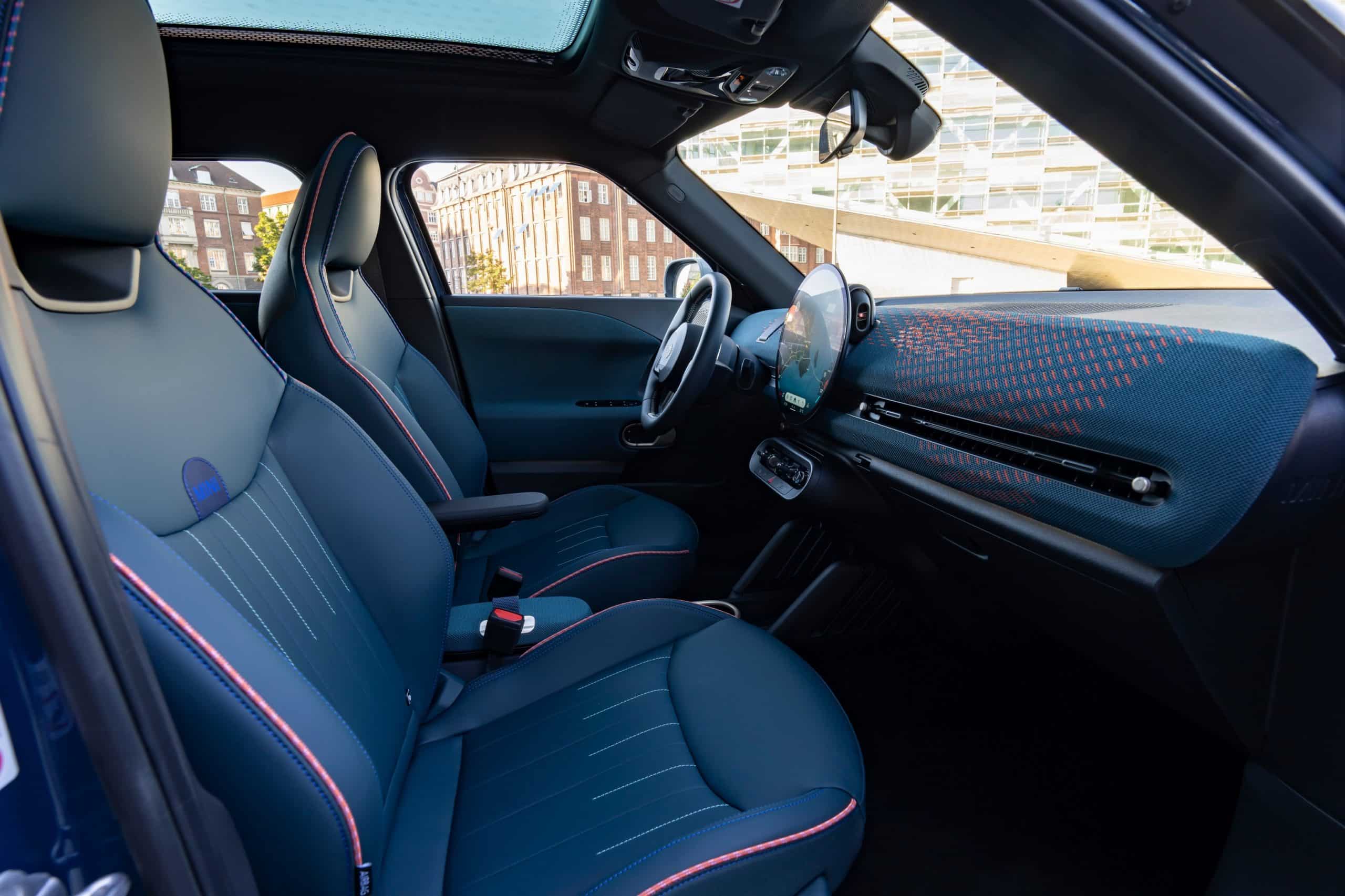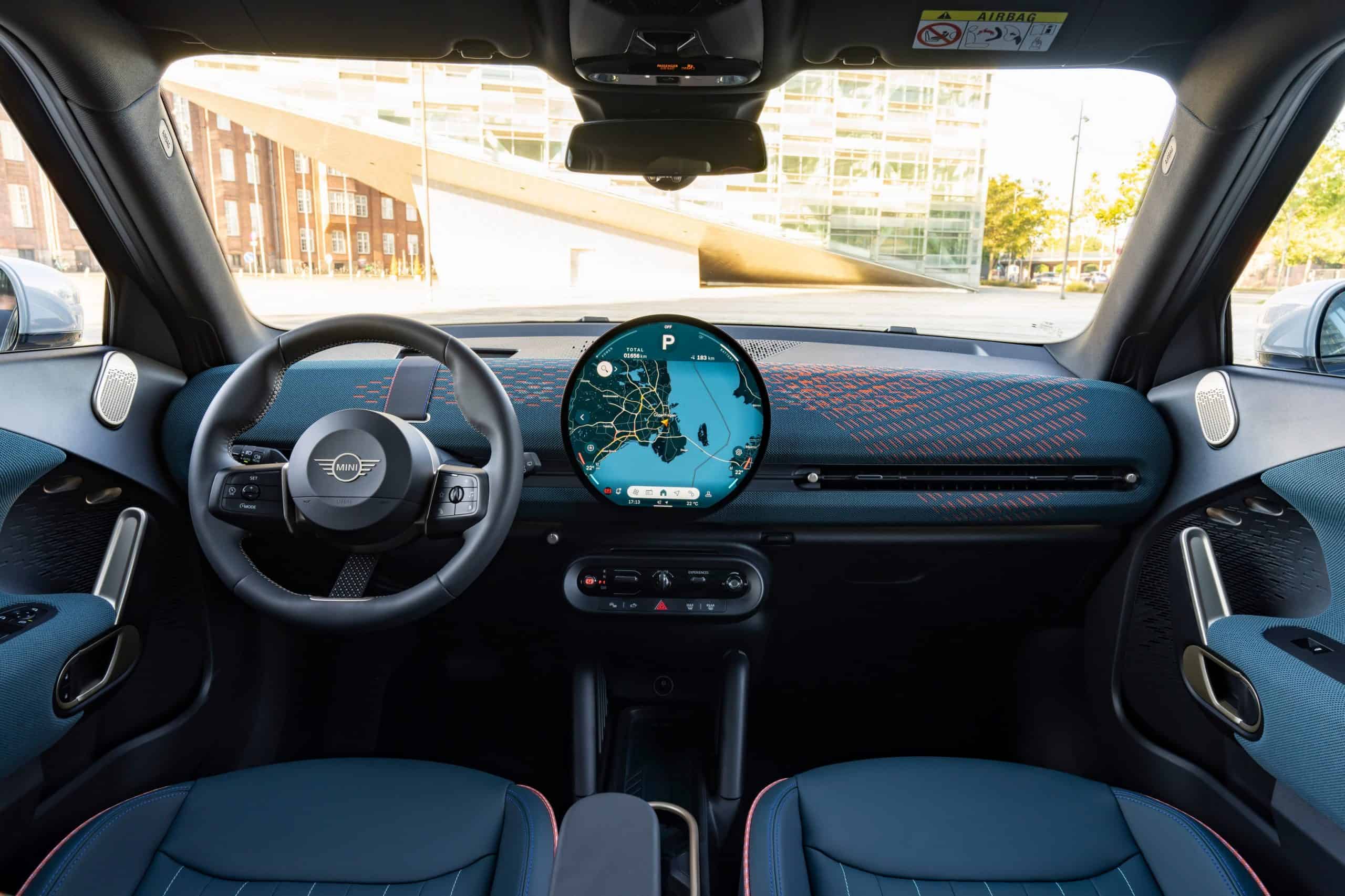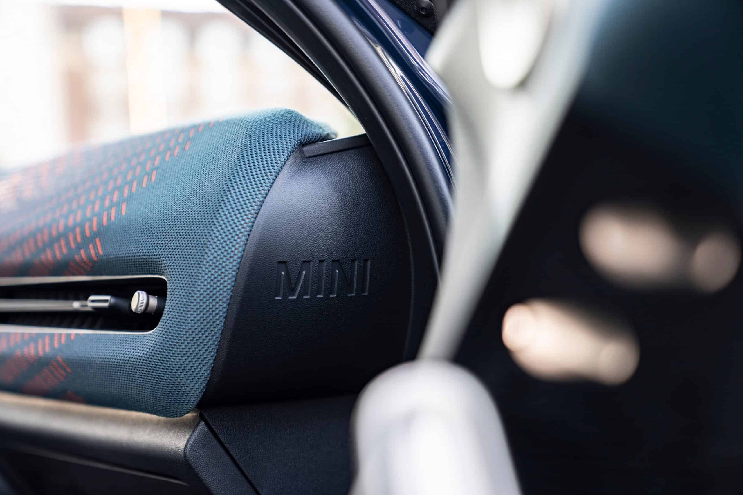 This Aceman SE roams the streets of Copenhagen in Denmark, flaunting its Indigo Sunset Blue paint job. It’s built in the Favoured Trim with the optional multitone roof that has a color gradient. The top panel shifts from blue to white as you move to the front. MINI also opted for the larger 19-inch wheels. Inside, the Vescin Dark Petrol upholstery continues the exterior theme.