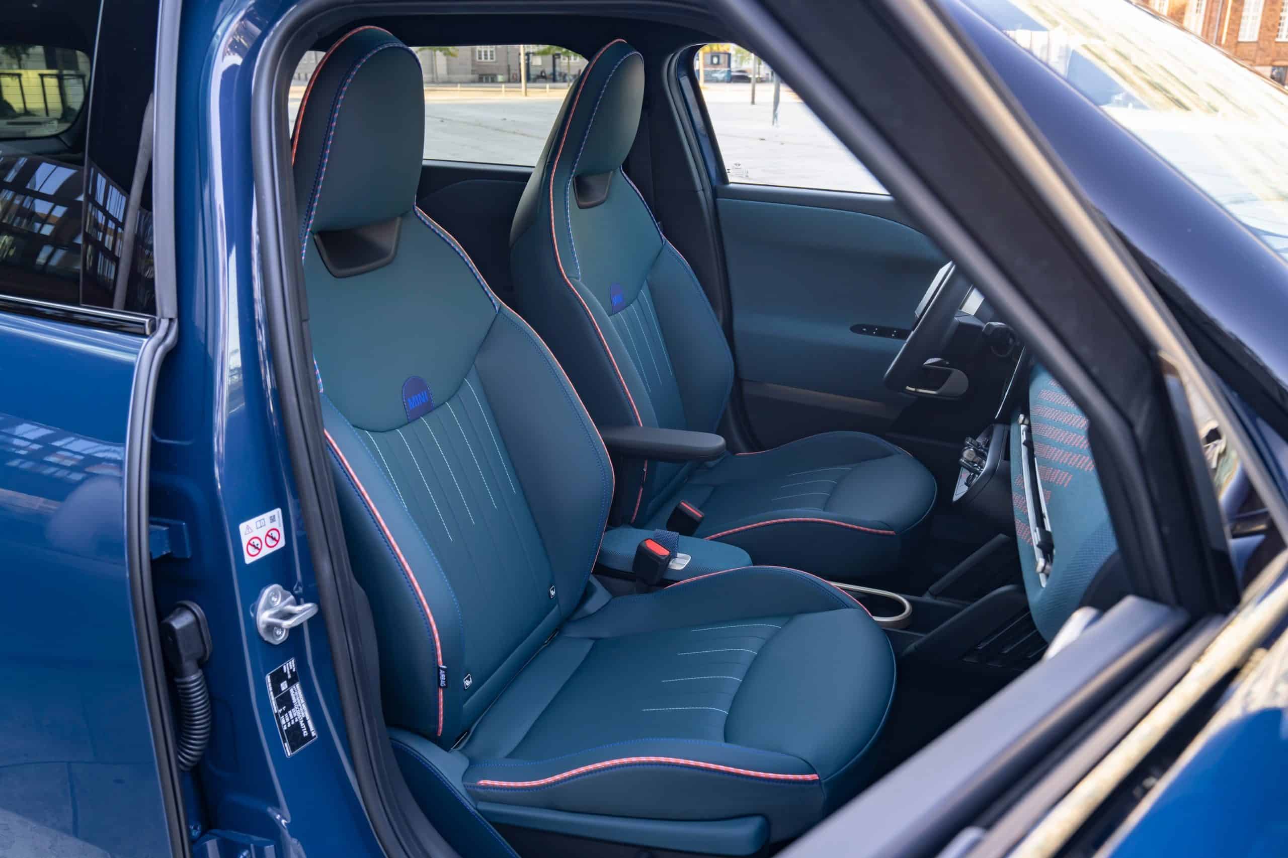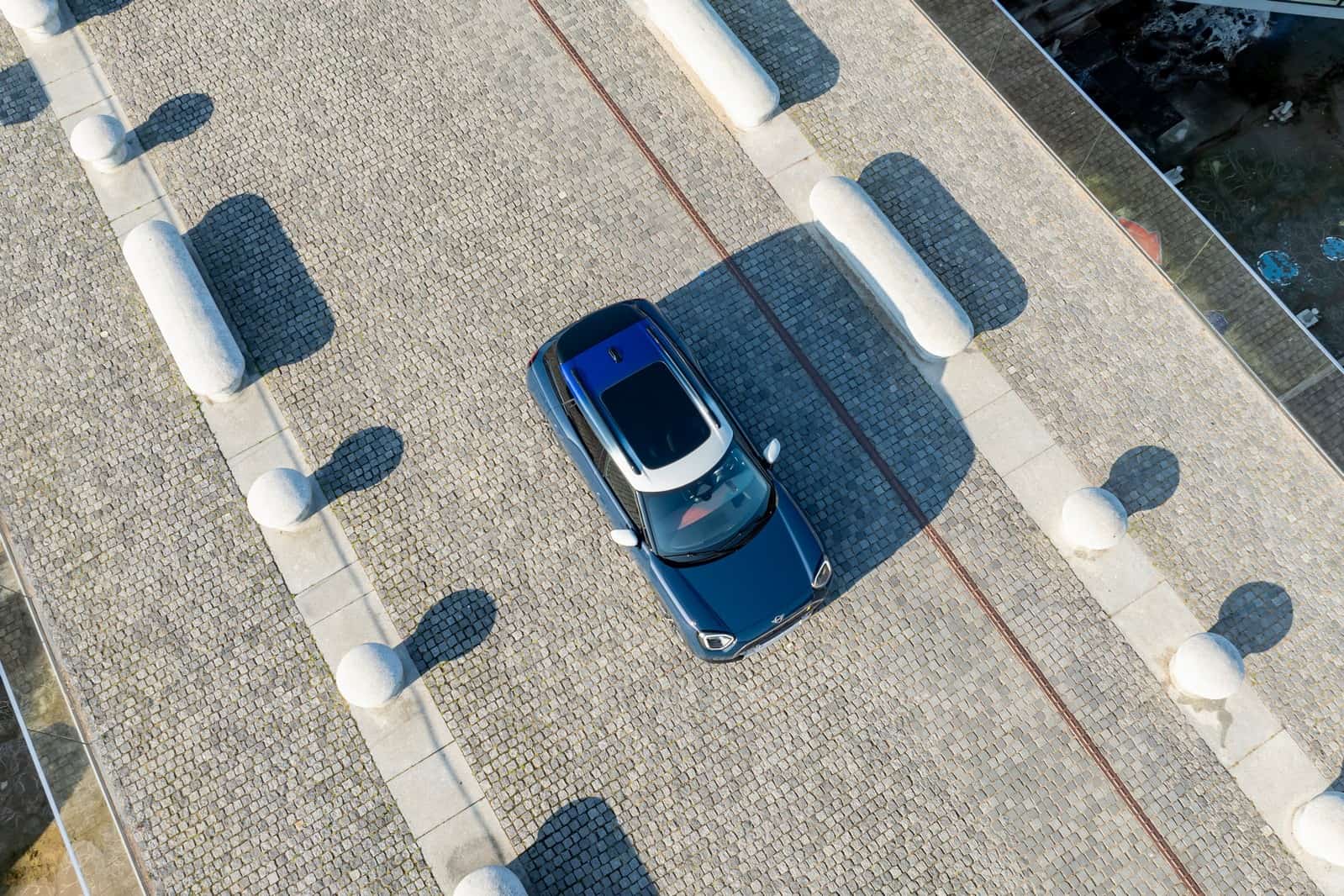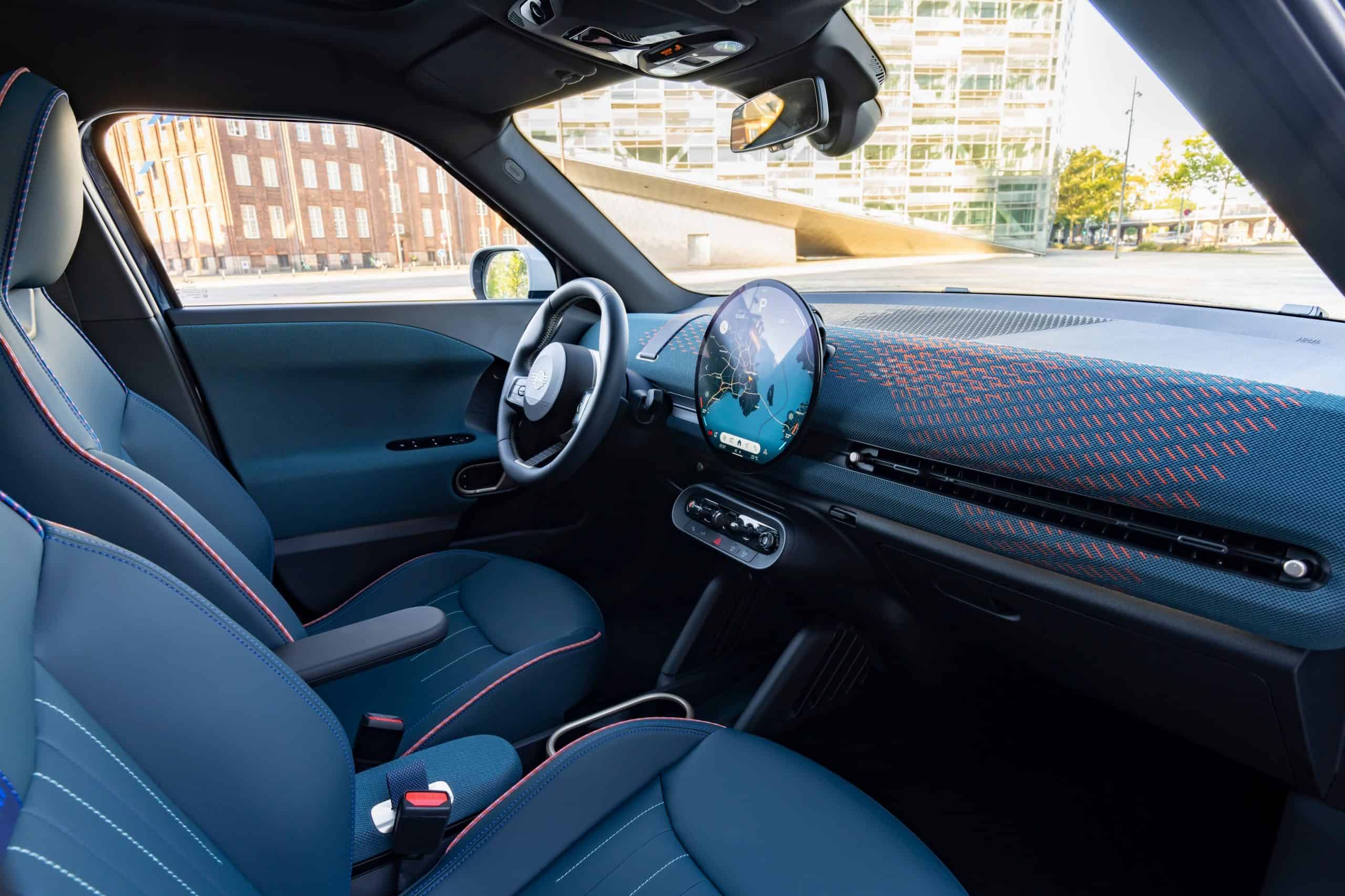 This Aceman SE roams the streets of Copenhagen in Denmark, flaunting its Indigo Sunset Blue paint job. It’s built in the Favoured Trim with the optional multitone roof that has a color gradient. The top panel shifts from blue to white as you move to the front. MINI also opted for the larger 19-inch wheels. Inside, the Vescin Dark Petrol upholstery continues the exterior theme.